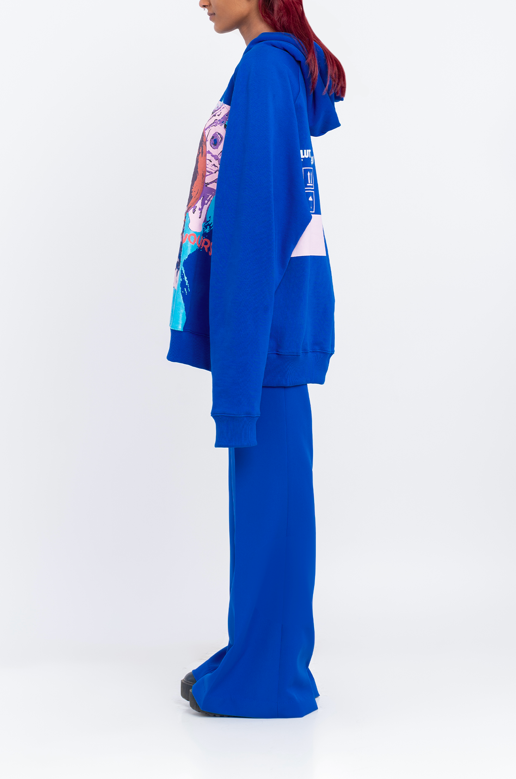 100% cotton-terry ABSOLUT X HUEMN Classic oversized hoodie in Huemn Blue. Product features our '8 BILLION FLAVOURS' print on the front, extended to the back.