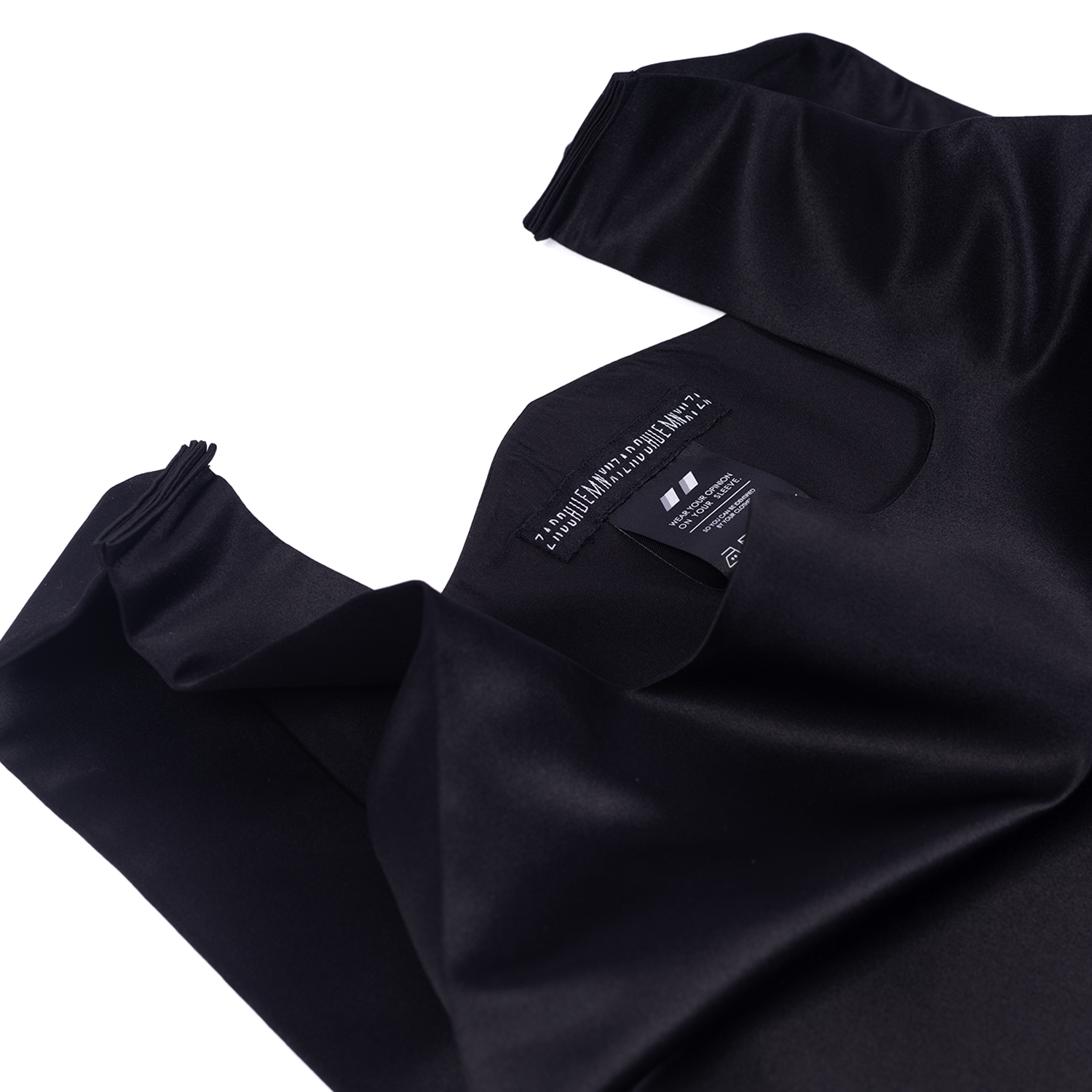 A-Line dress with an inverted pleat at the side and two side pockets. The dress draws inspiration form a classic polythene bag silhouette.