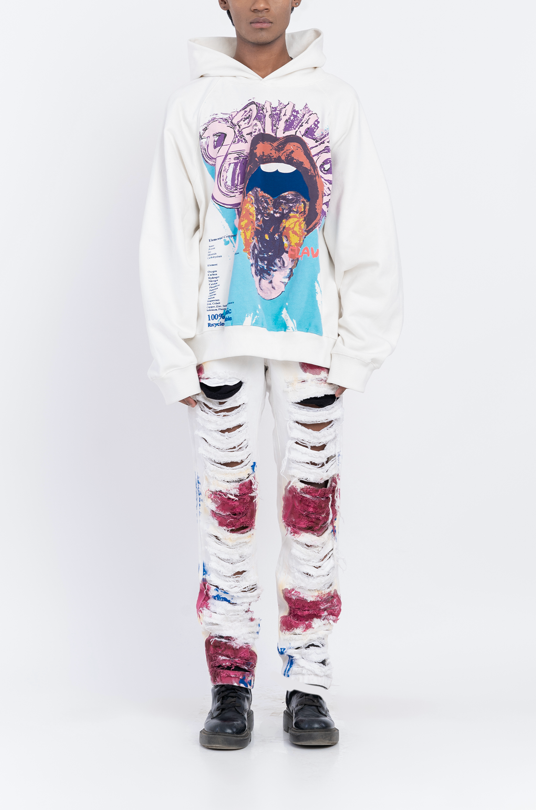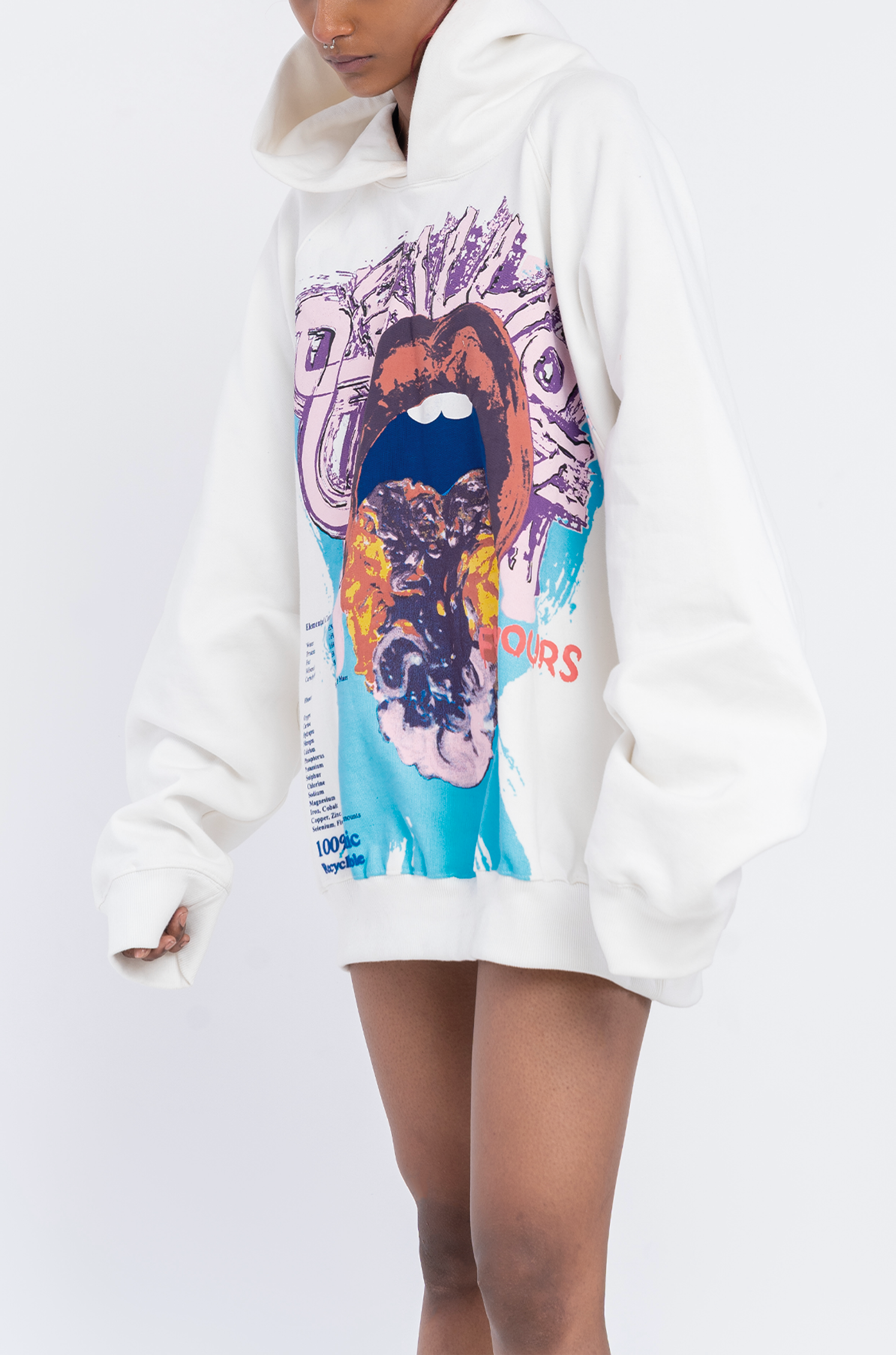 100% cotton-terry ABSOLUT X HUEMN Classic oversized hoodie in white. Product features our '8 BILLION FLAVOURS' print on the front, extended to the back.