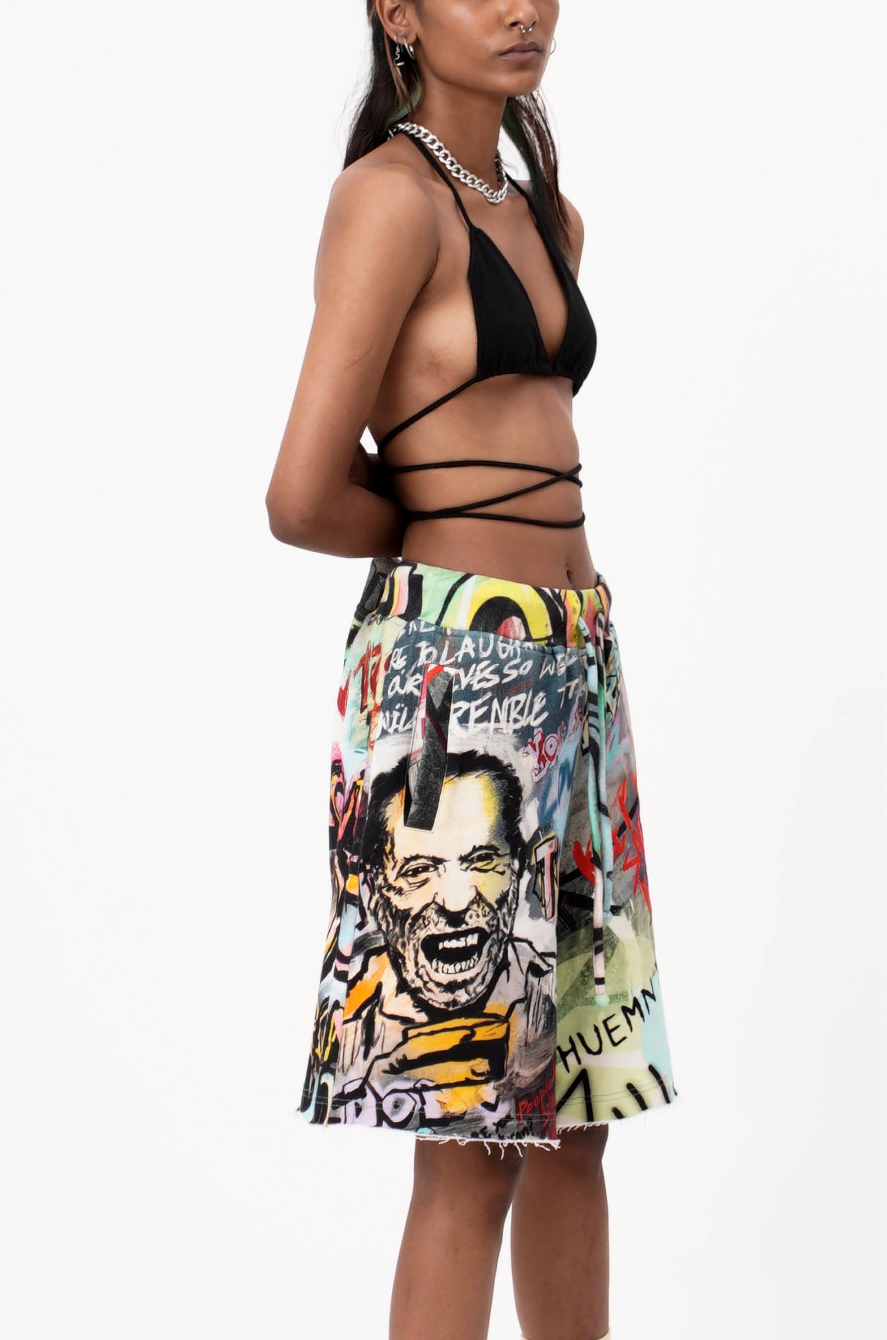 Featuring an asymmetric pattern and an extended string detail as a comfort tie fastening.