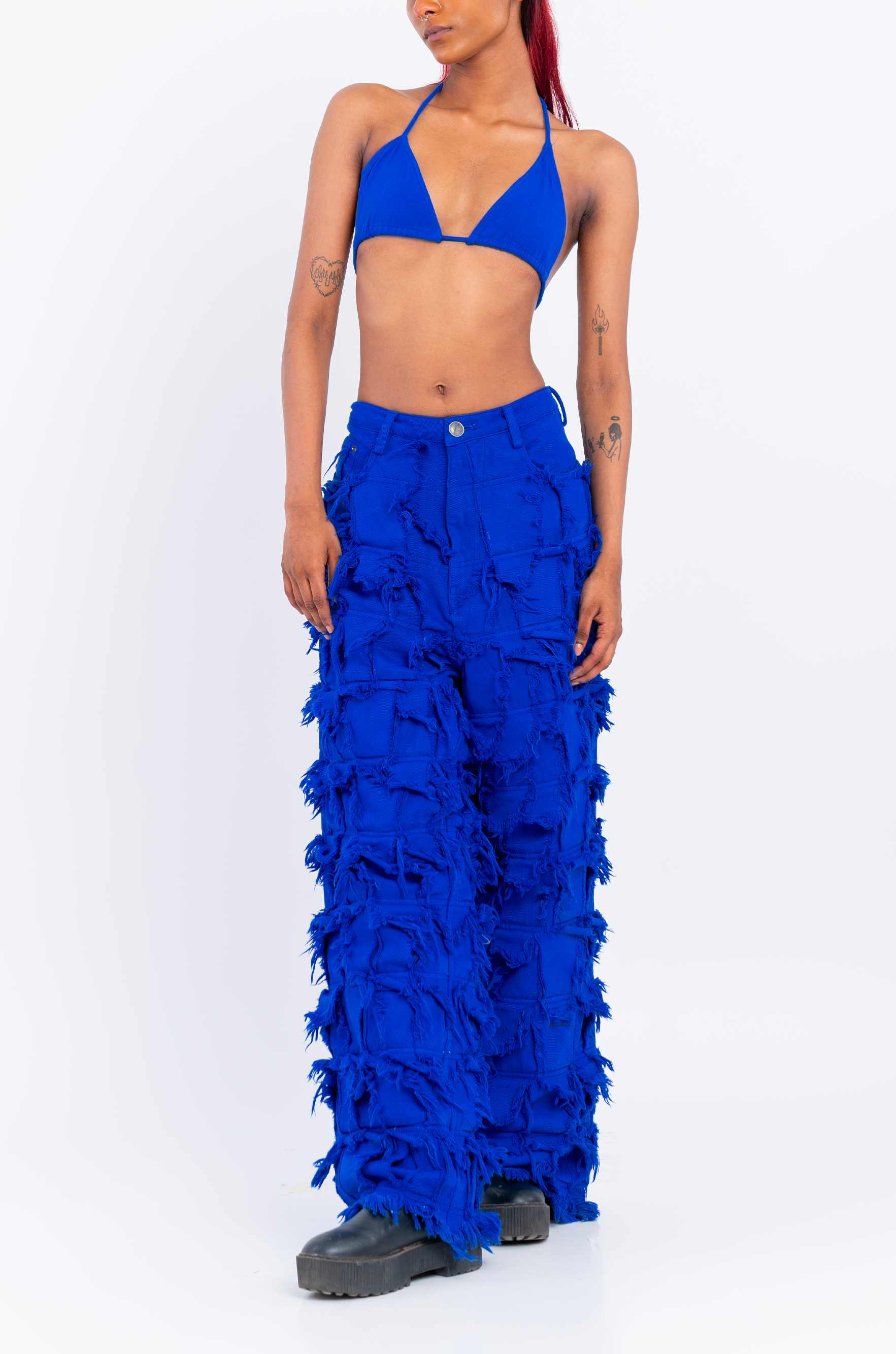 Featuring an asymmetric pattern and an extended string detail as a comfort tie fastening.