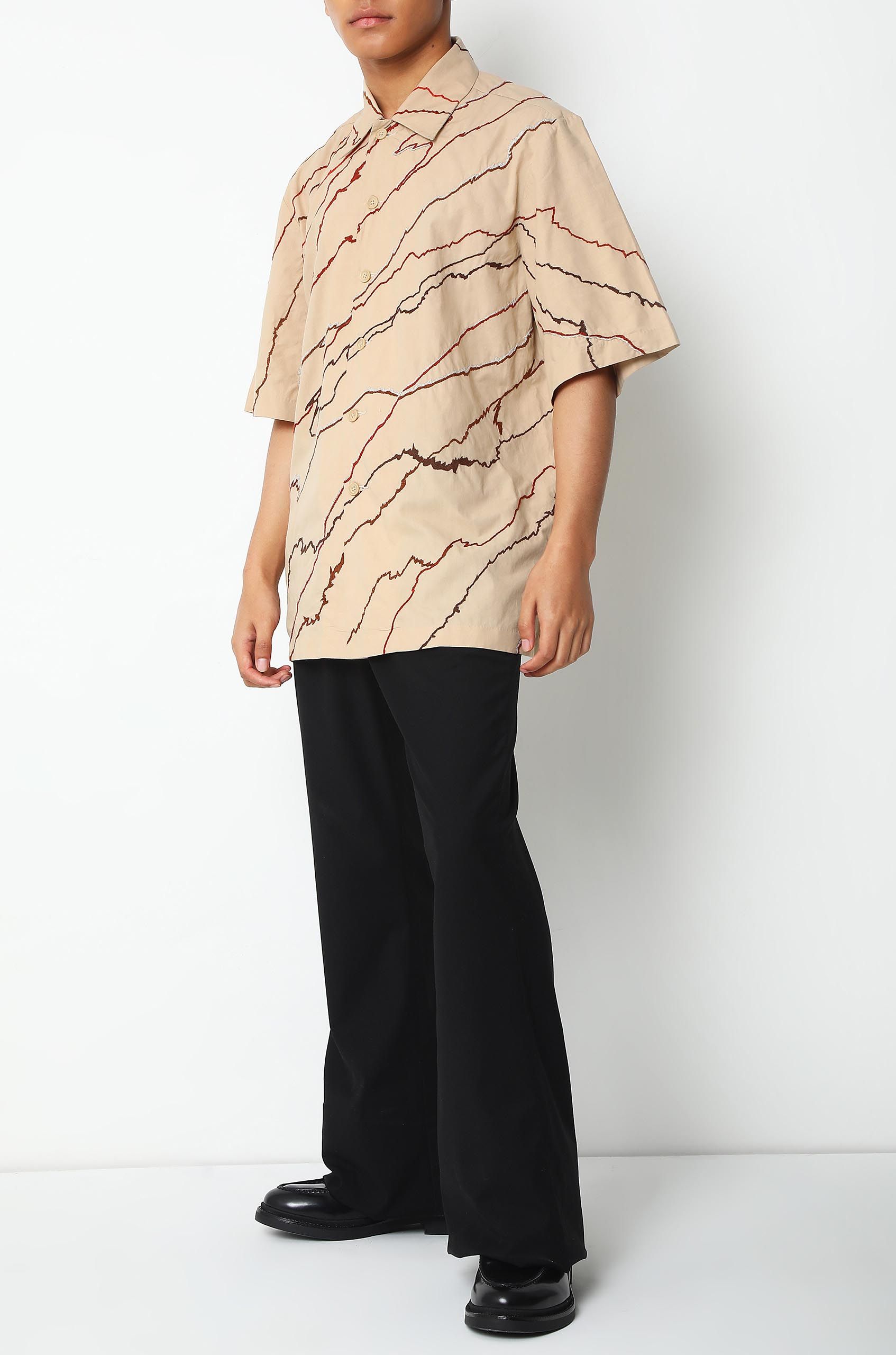 100% cotton poplin shirt with handcrafted, embroidered 'electric' lines- motif.