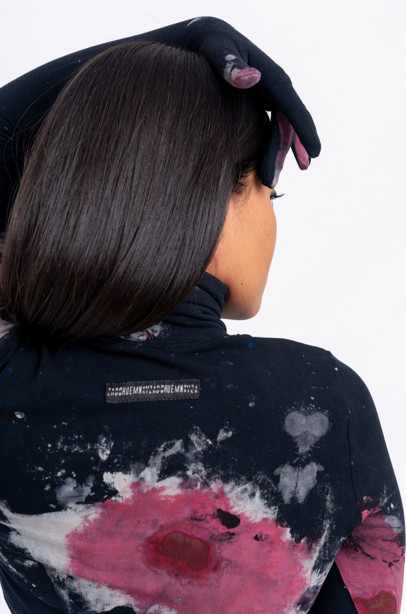 Cut to a cropped silhouette this HUEMN crop top features a turtleneck finish and gloved sleeves.