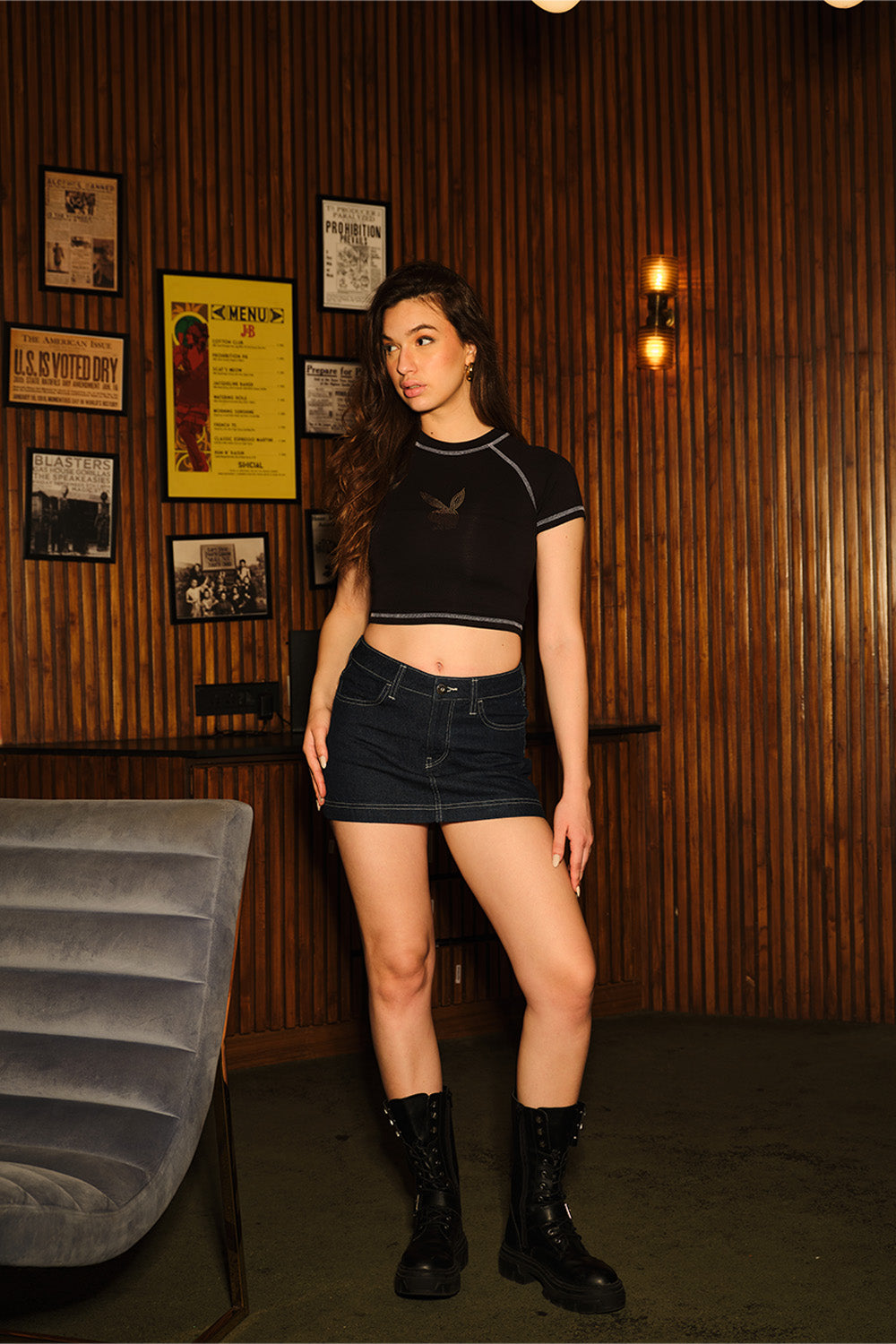 Sparkle with attitude in the Bunny Girl Rhinestone Baby Tee, a head-turning 95% cotton/5% spandex crop top that blends playful charm with streetwise edge. This 210 GSM black baby tee hugs your frame with just the right amount of stretch, while dazzling rhinestone detailing across the chest adds luxe rebellion to your look. The cropped silhouette and soft fabric make it ideal for pairing with high-waisted jeans for downtown energy or layered under blazers for night-out drama. More than just a top—it's a statement piece for the bold, the flirty, and the unapologetically glam. Whether you're channeling retro pin-up vibes or modern street style, Bunny Girl Rhinestone Baby Tee delivers confidence with every shimmer. Shine on, rebel girl.