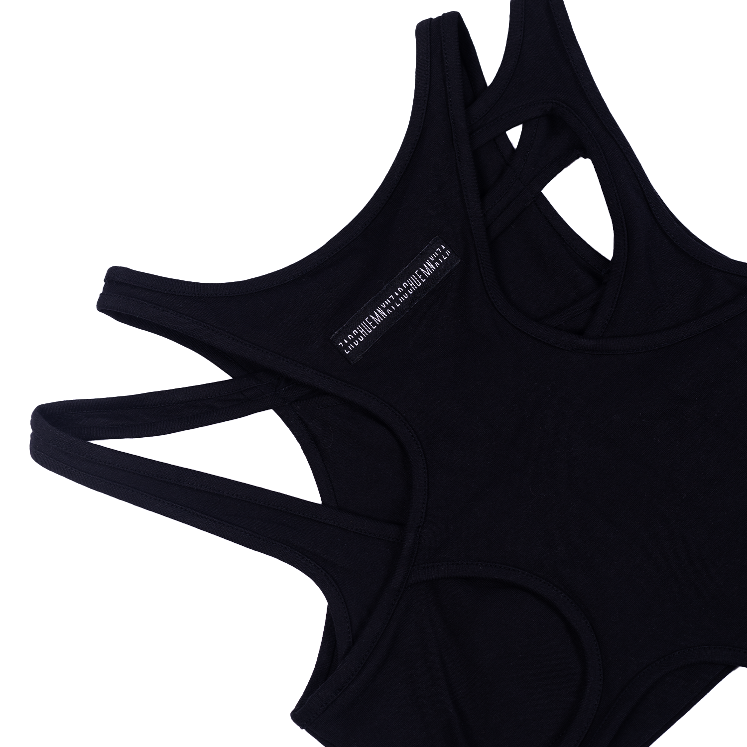 Cropped tank top made from 100% cotton, featuring a layered design with cut-out details, sleeveless style, and a straight hem.