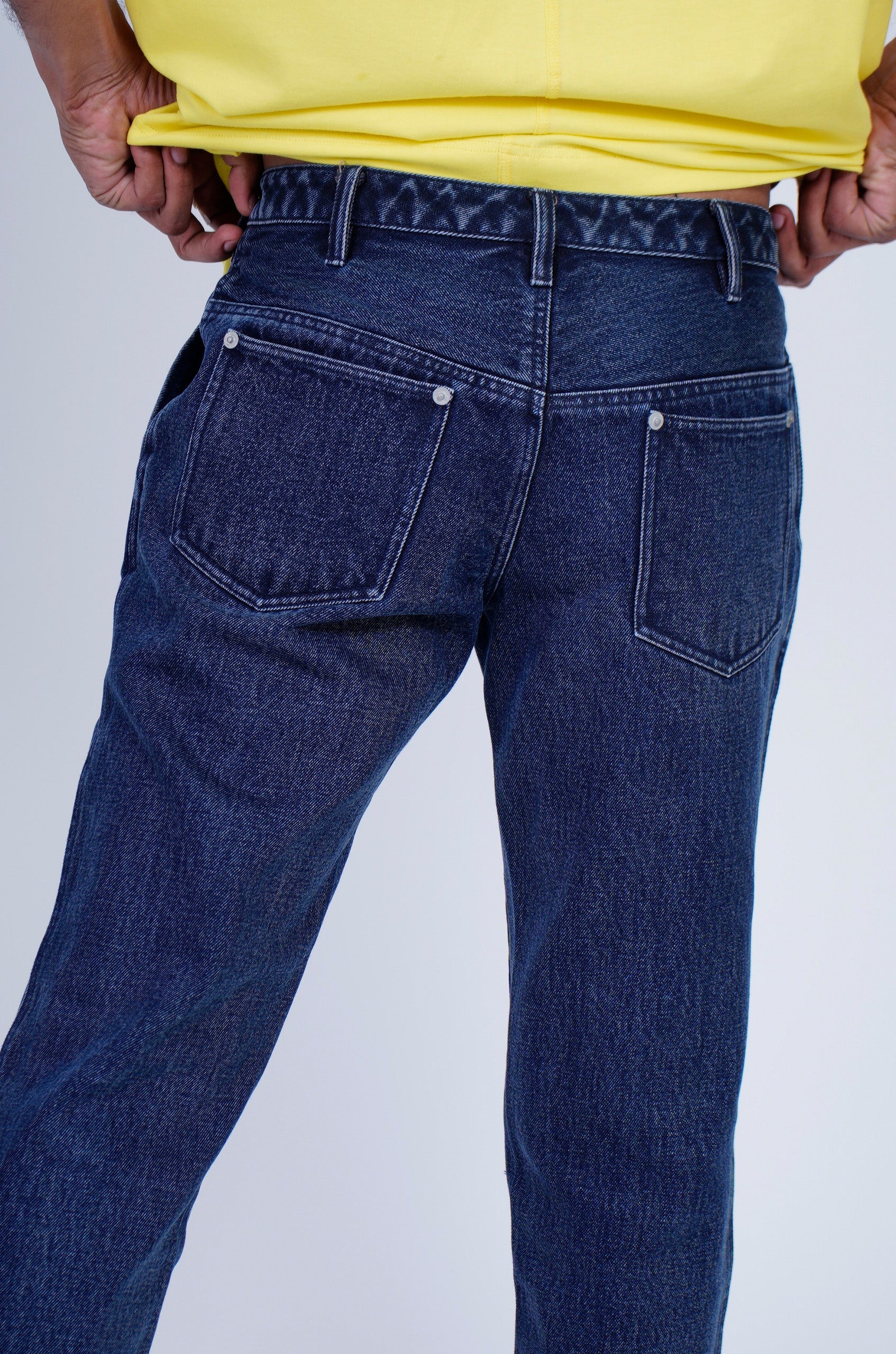 Dark Washed and tinted denim in signature HUEMN comfort-fit, unisex silhouette.
