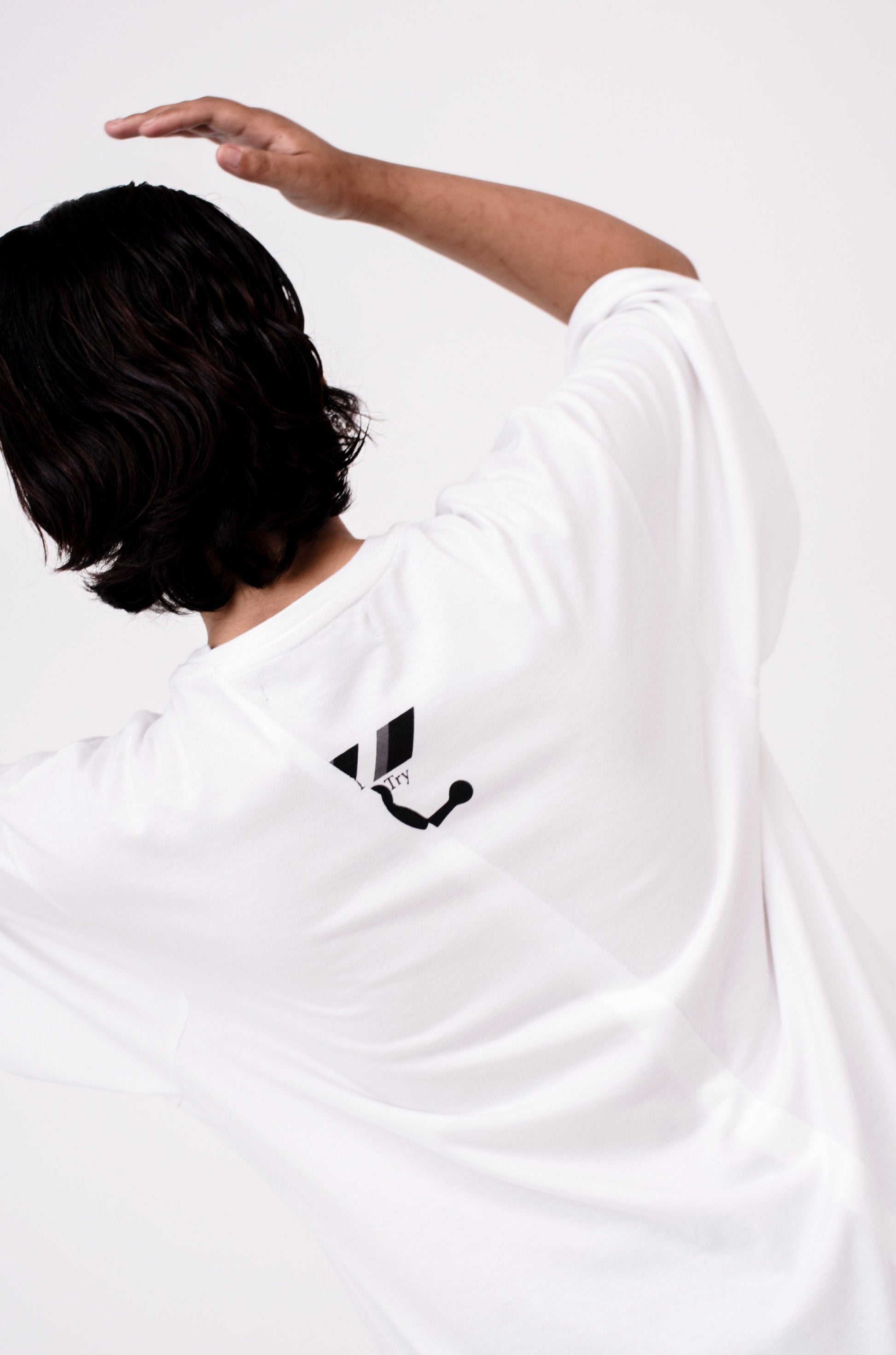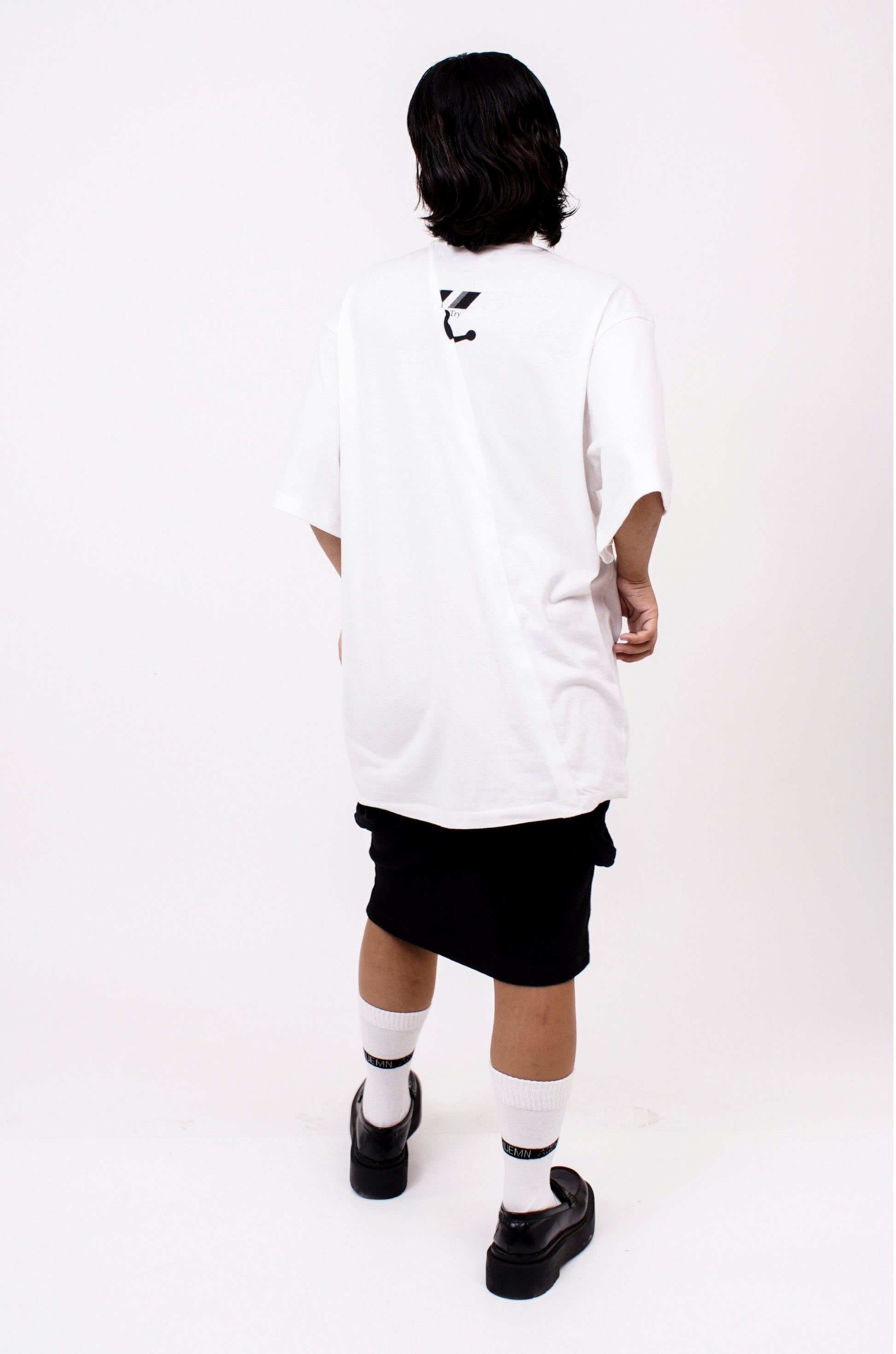 Distorted and seamed version of HUEMN's famed sold-out Bukowski Chapter 1 T-shirt, as on runway.