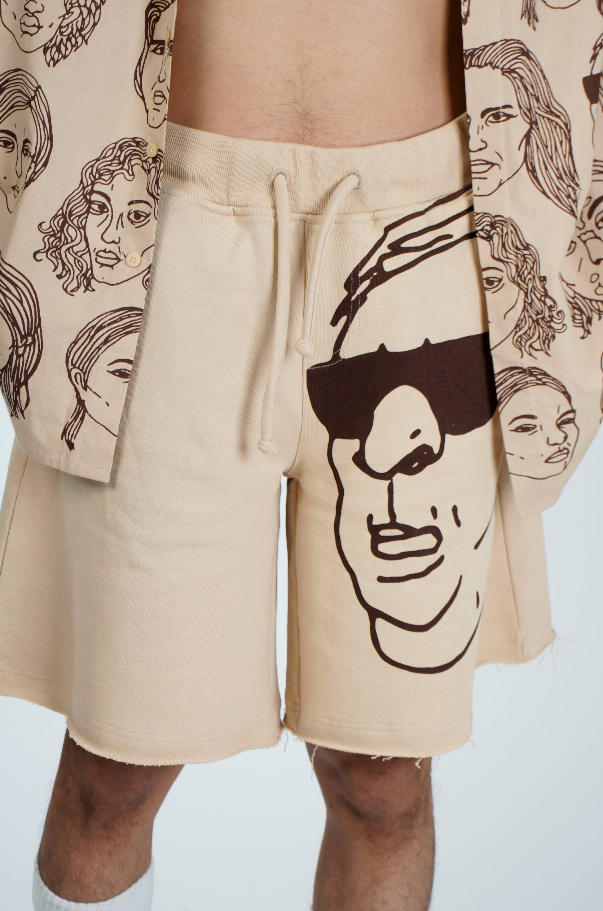 Unisex,Limited Edition,100% cotton fleece shorts featuring single face diversity print. Model is wearing mens size M Refer size chart for measurements and womens sizing.