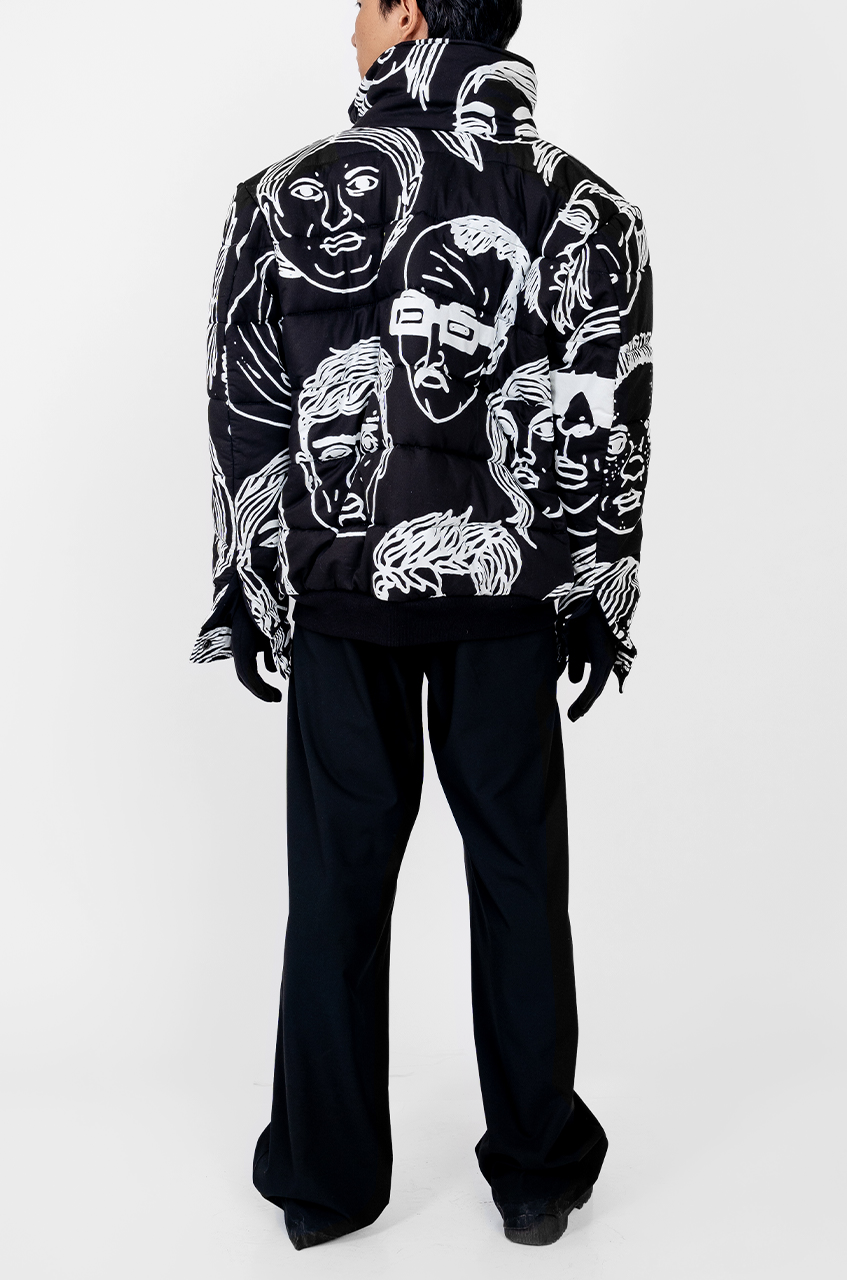 HUEMN updates a classic winter staple, with this Diversity GT 1.1 detailed black puffer jacket.