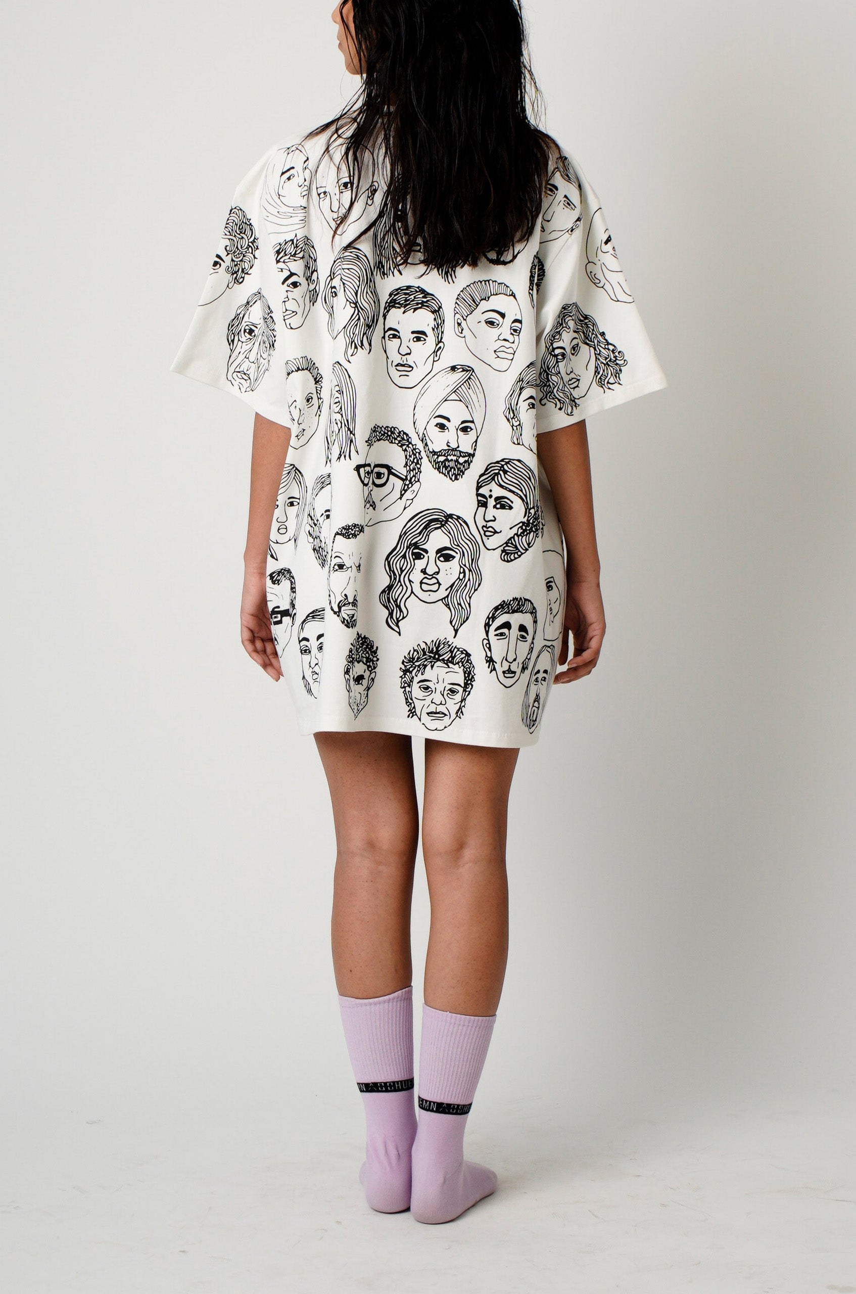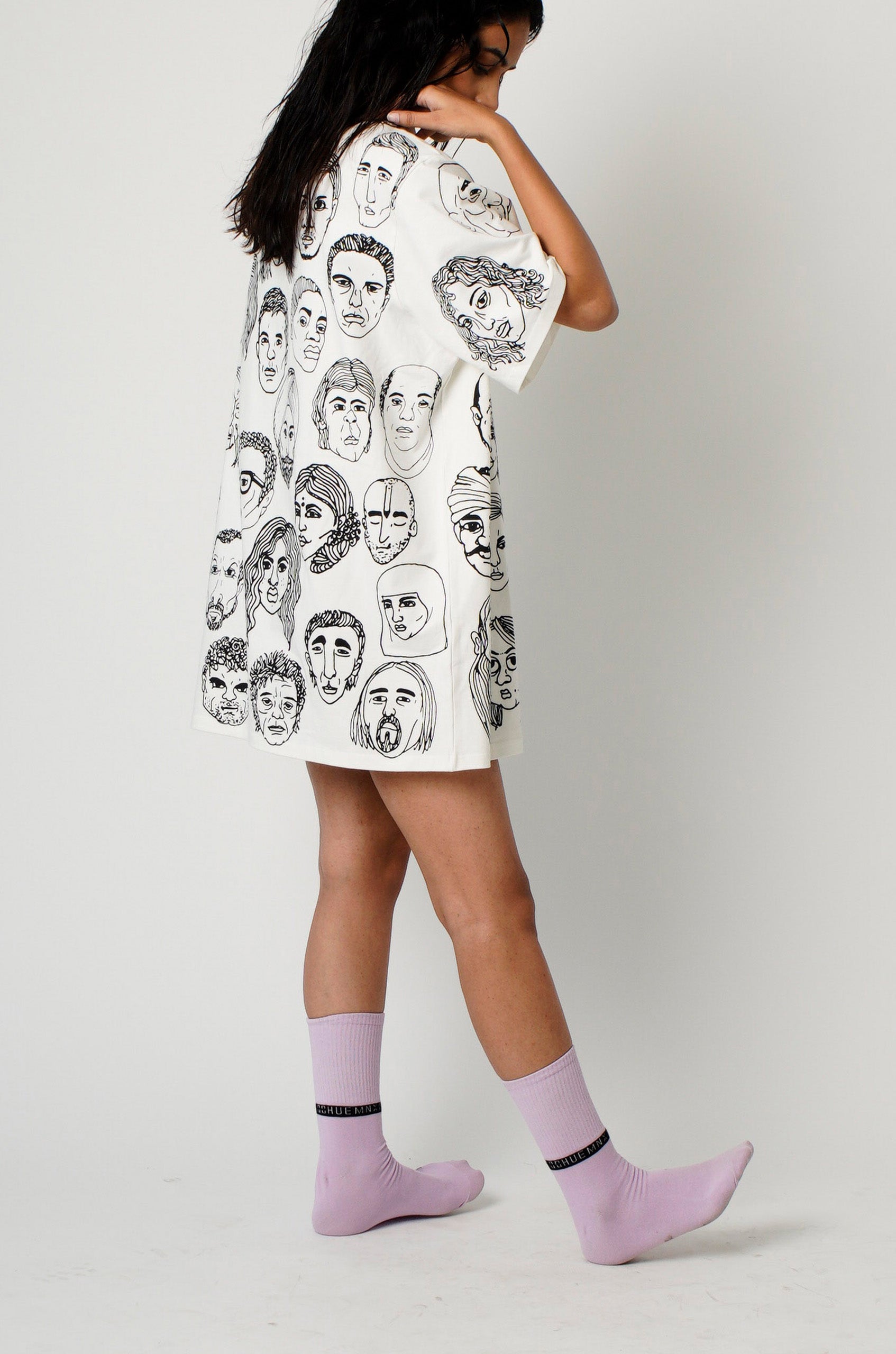 Product features water based screen-print of original 'Diversity' print, featuring hand-drawn portraits and HUEMN Limited Edition logo with 5 diverse skin tones. Unisex, oversized comfort fit.