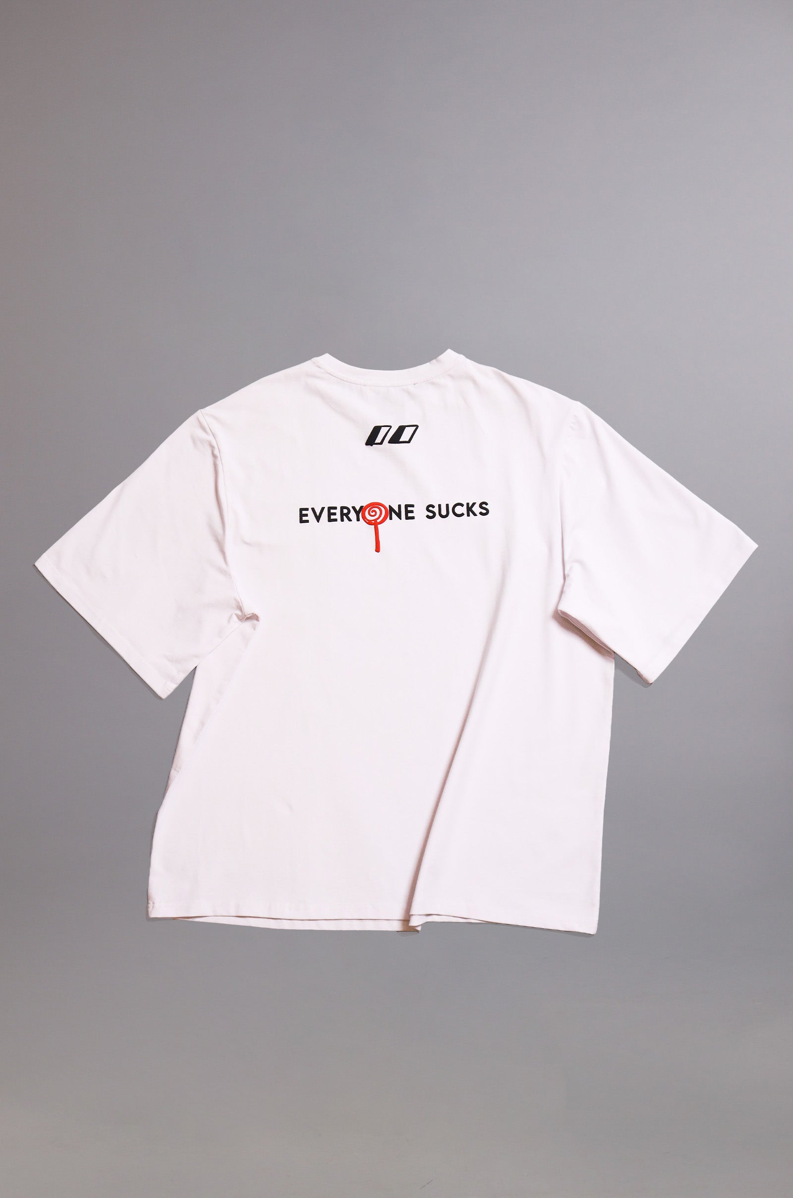 The product features a rubberized 'Everyone sucks' graphic print with distinct HUEMN graphic details on both front and back.