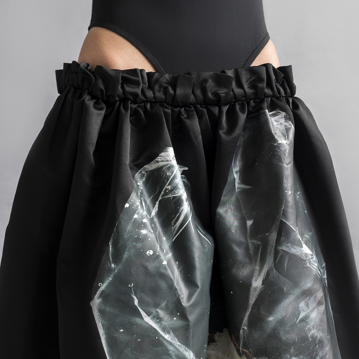 The product features a rubberized digital print of a 'Garbage' artwork as featured on the HUEMN Summer '25 presentation.