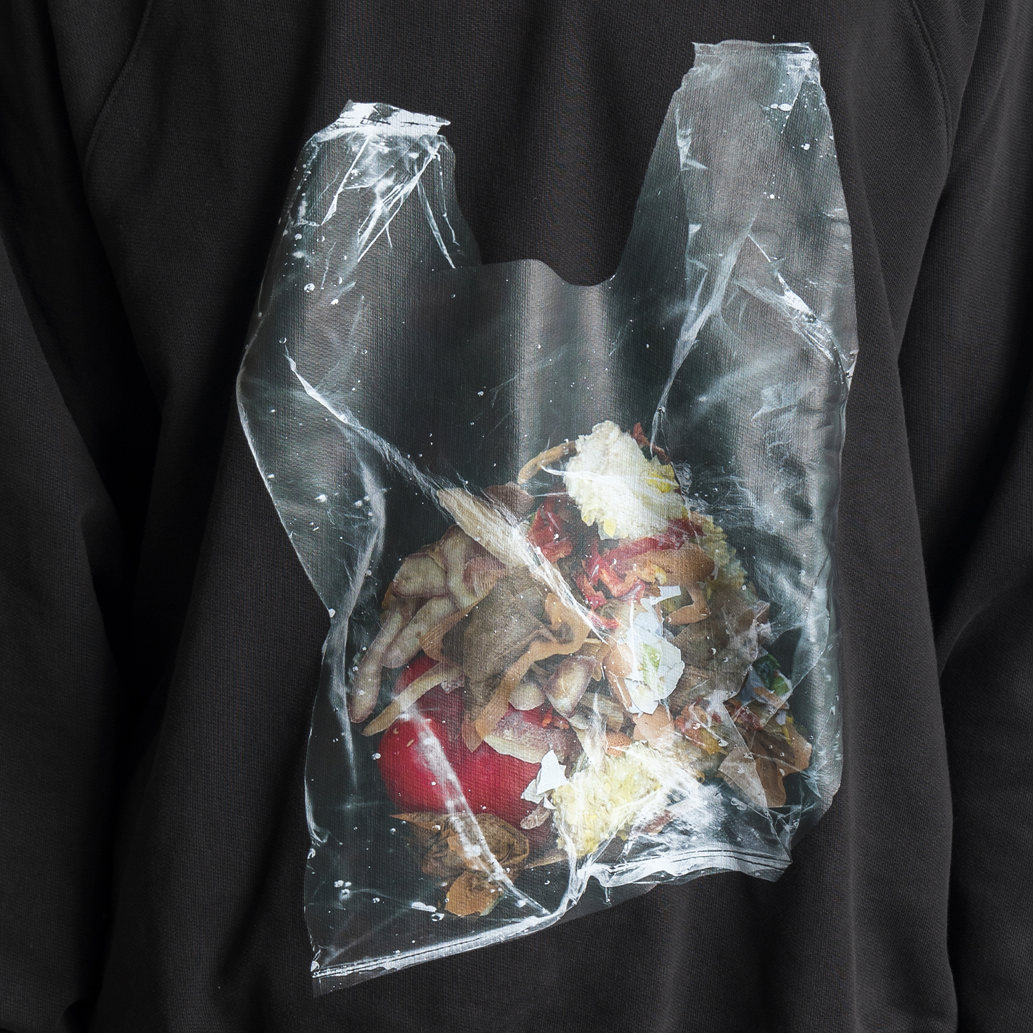 The product features a rubberized digital print of a 'Garbage' artwork as featured on the HUEMN Summer '25 presentation.