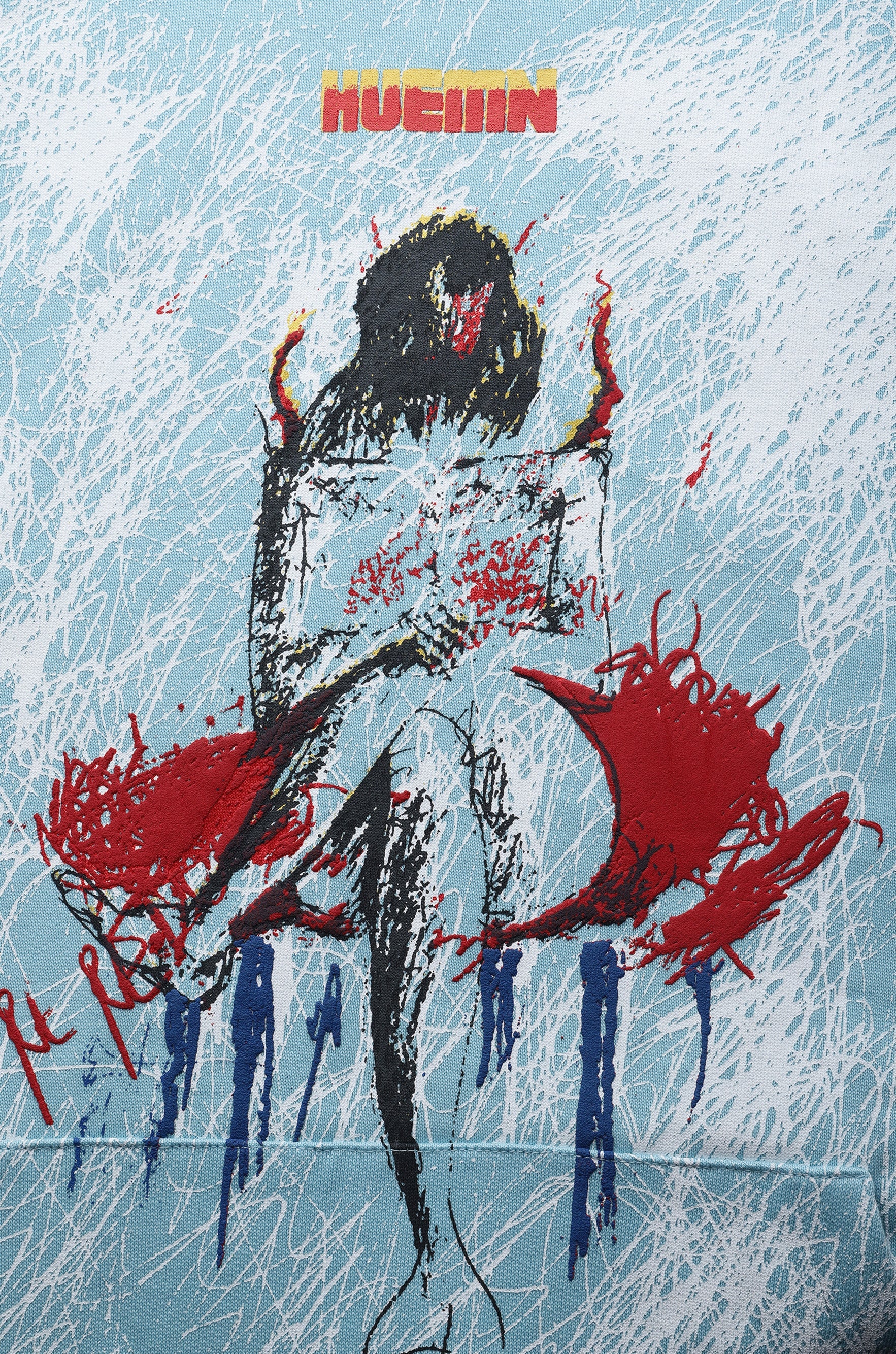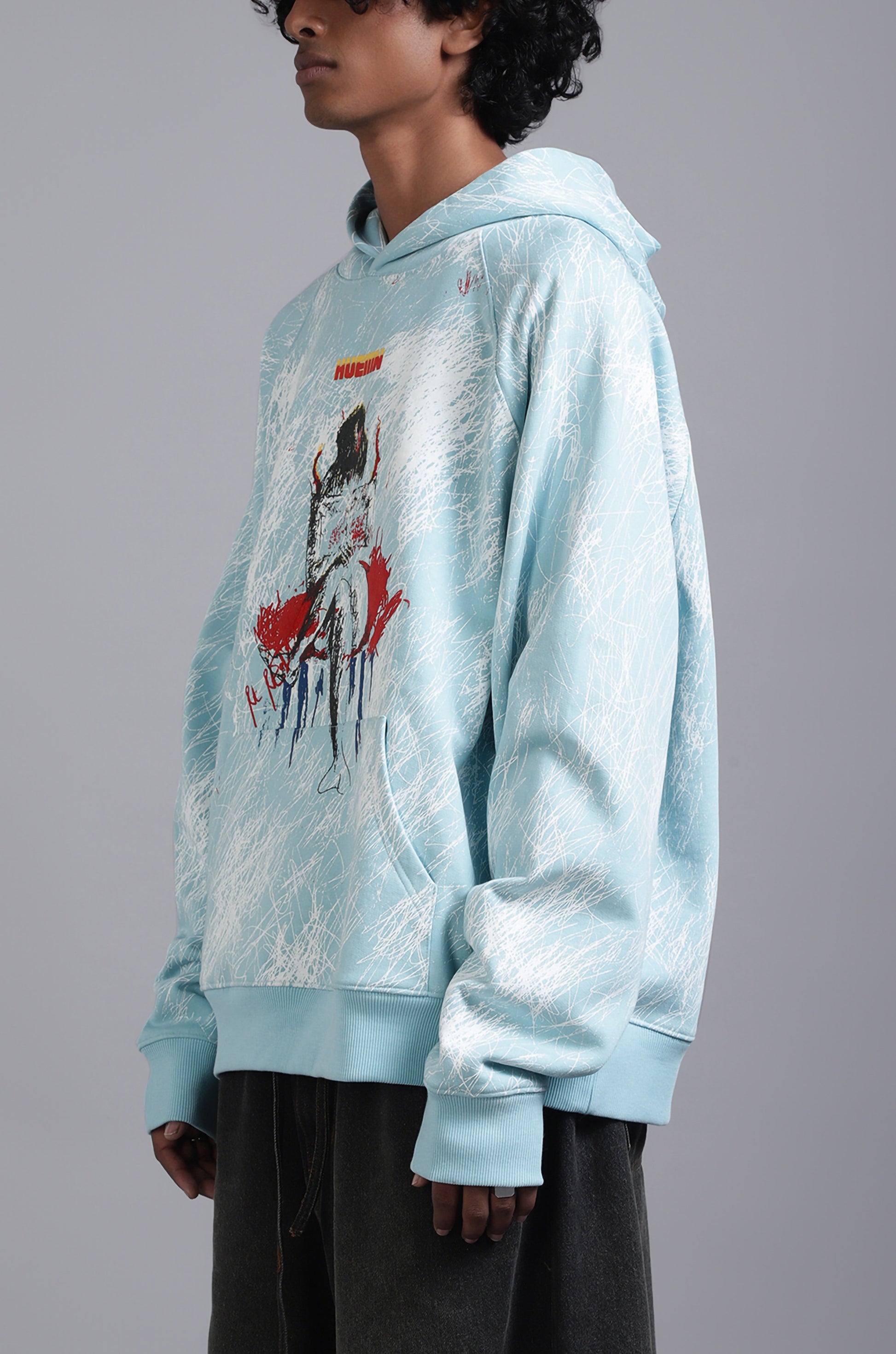 100% cotton, Huemn Hoodie in unisex comfort fit, with Hand drawn water based screen print with rubberised elements.