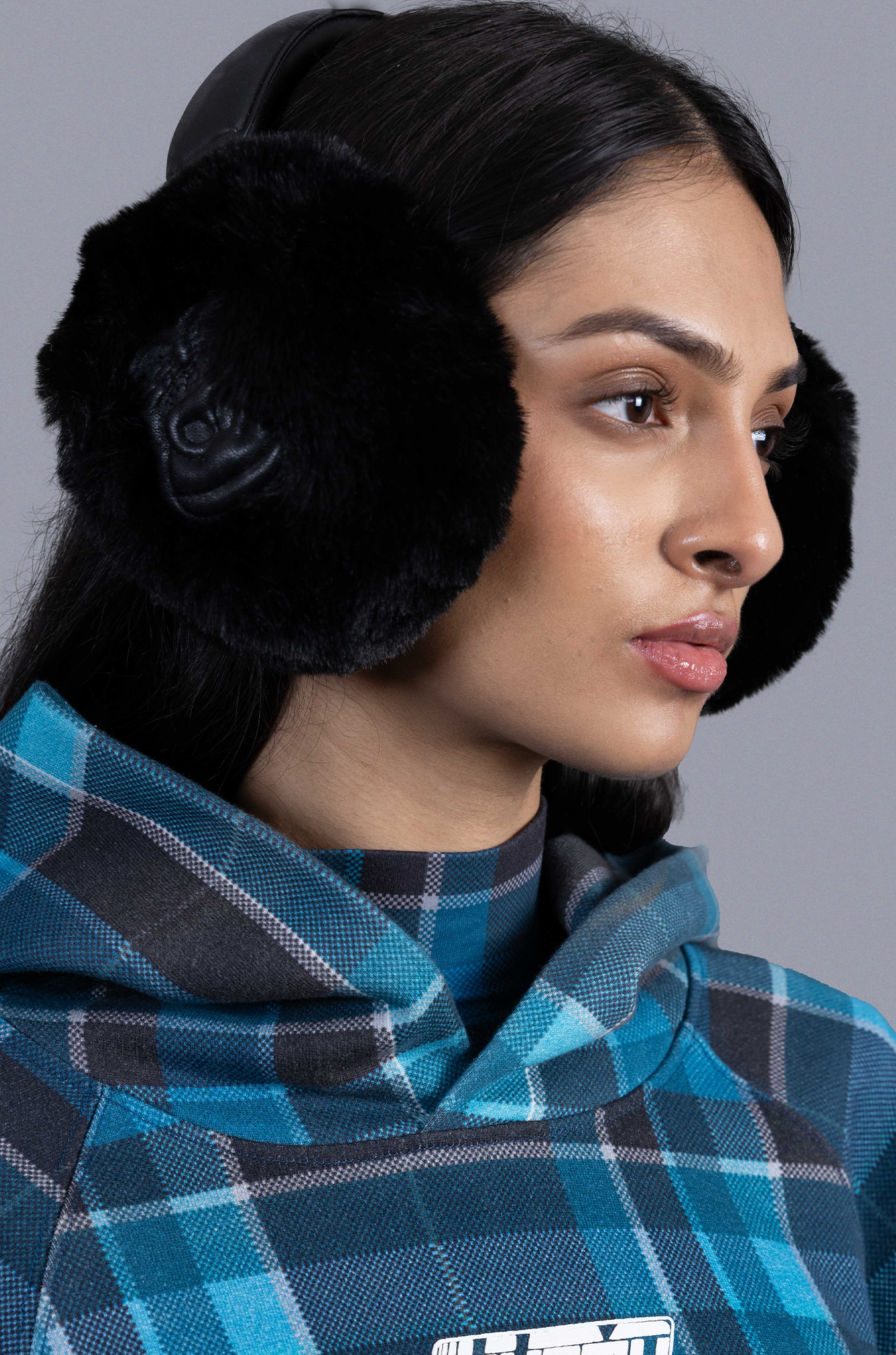 HUEMN Classic 'Gorilla' headset covers, featuring a meticulously handcrafted leather gorilla face, set against plush faux-fur detailing.