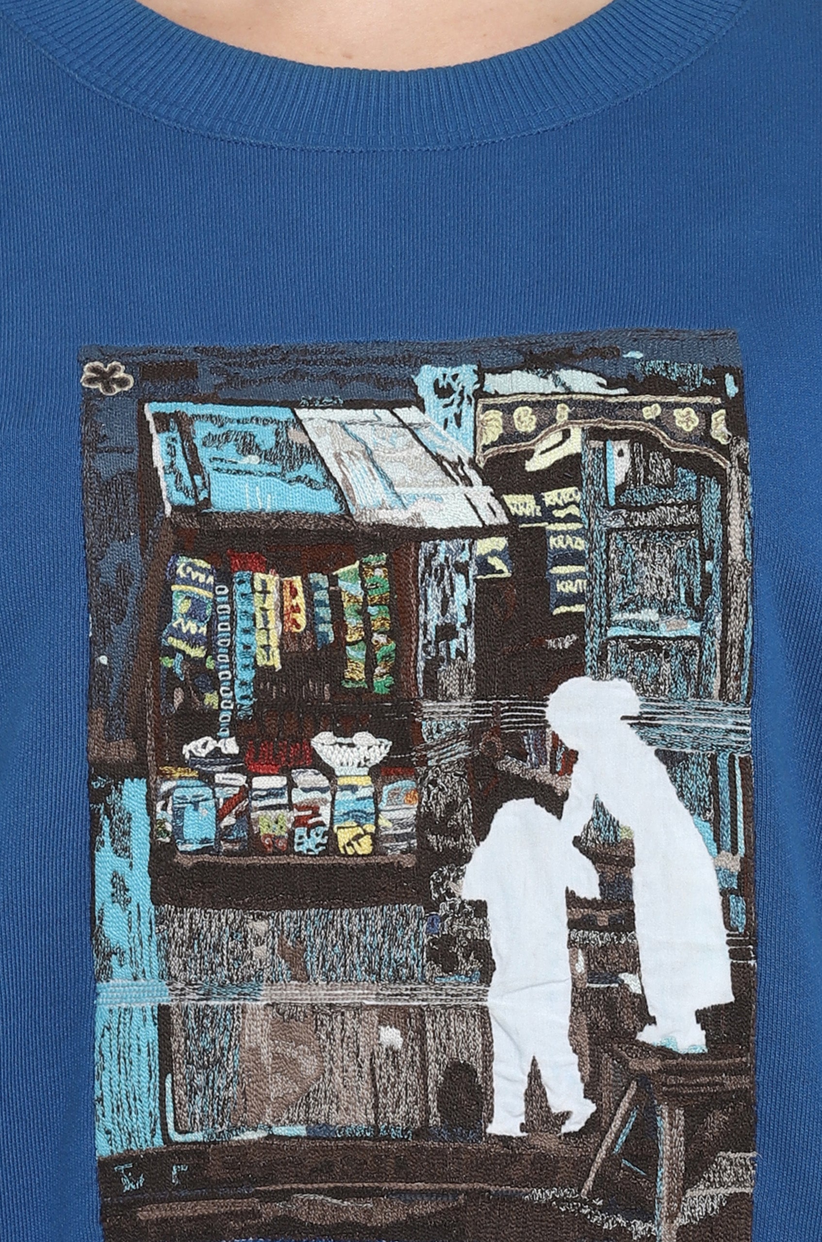 100% cotton-terry, oversized, unisex sweatshirt featuring an intricately hand-embroidered re-creation of a shop front/ kirana dukaan