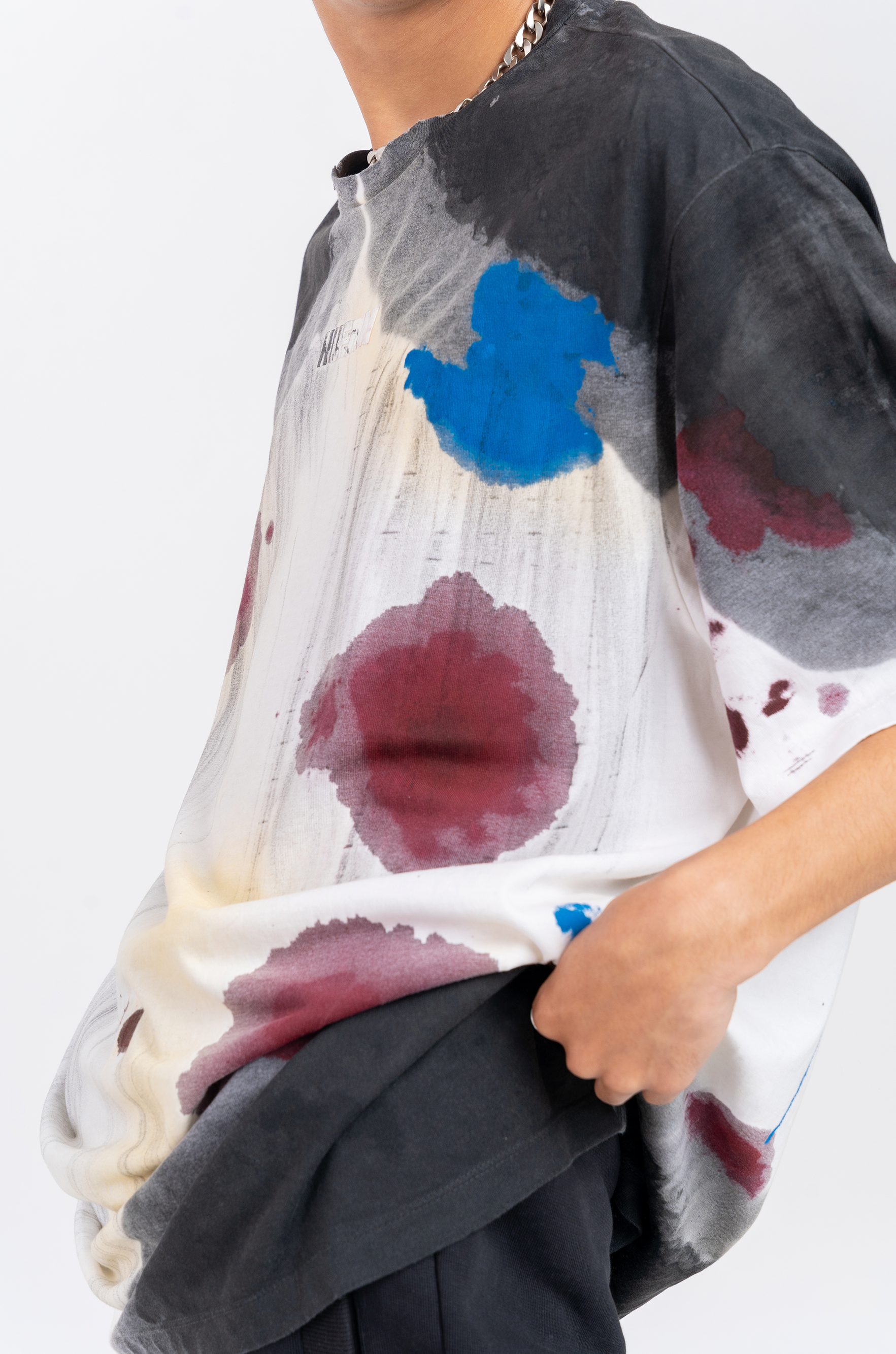 - Note : This is a one-of-one handmade product. Each surface is treated manually. Hence, while the treatment, dye, and washes for the T-shirt will remain the same, the surface pattern may vary from the image shown on this product page.
