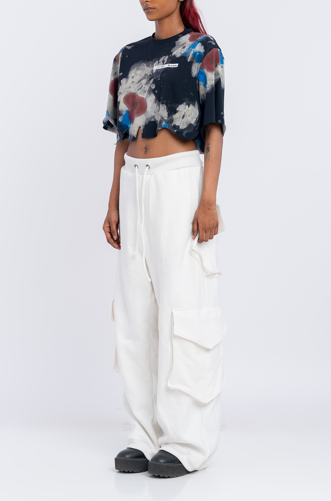 - Note : This is a one-of-one handmade product. Each surface is treated manually. Hence, while the treatment, dye, and washes for the crop top will remain the same, the surface pattern may vary from the image shown on this product page.