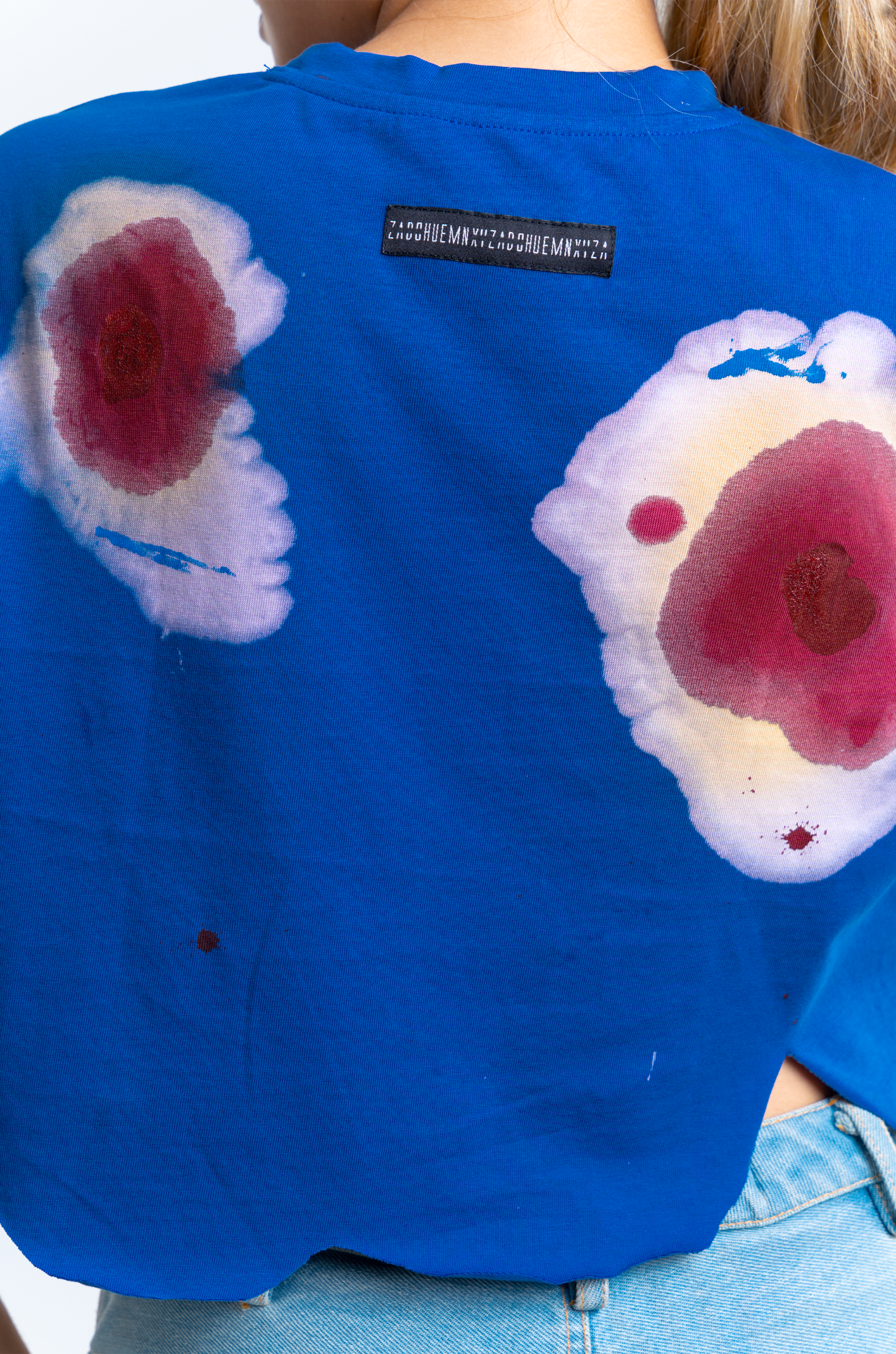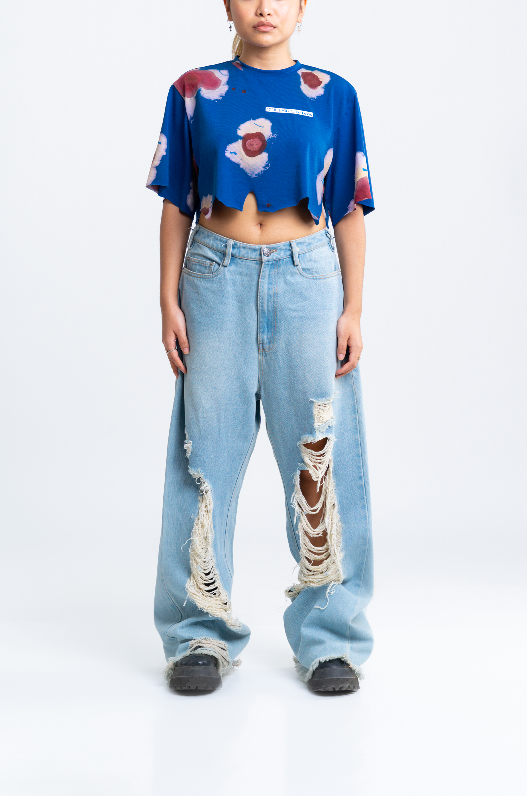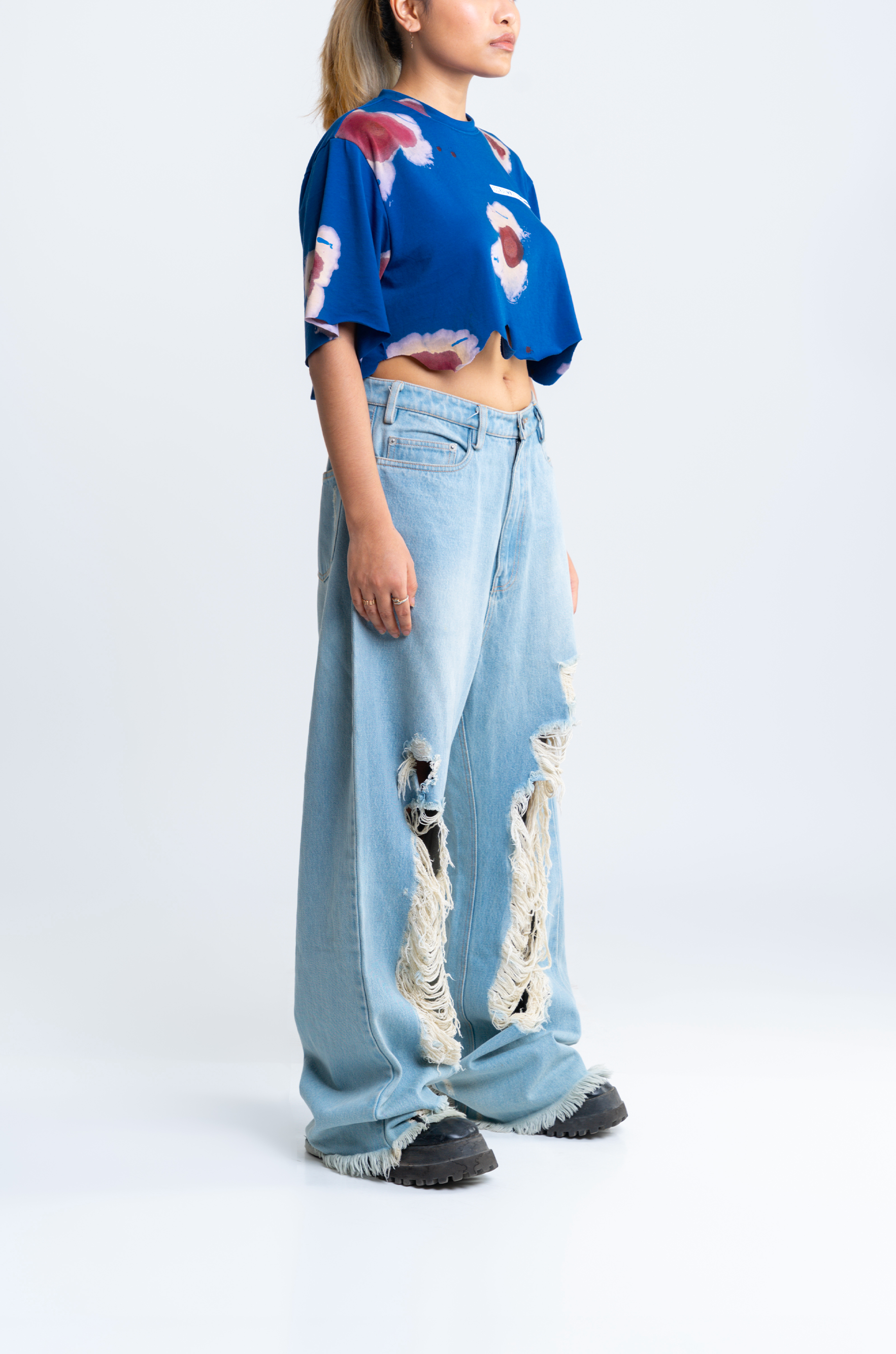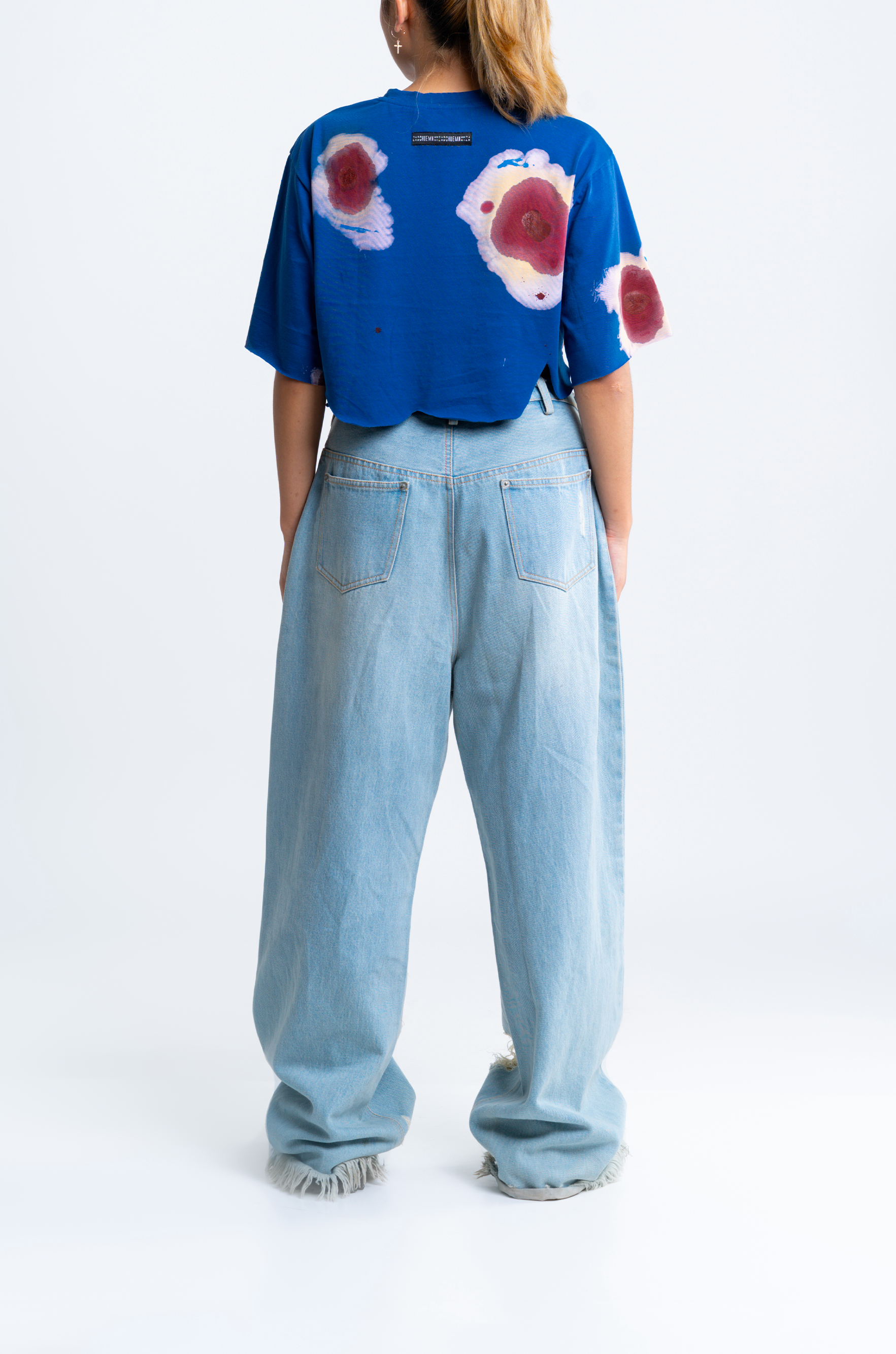 The surface is carefully finished with meticulously researched techniques. This crop top went through an intensive 7-step wash routine for achieving this surface finish.