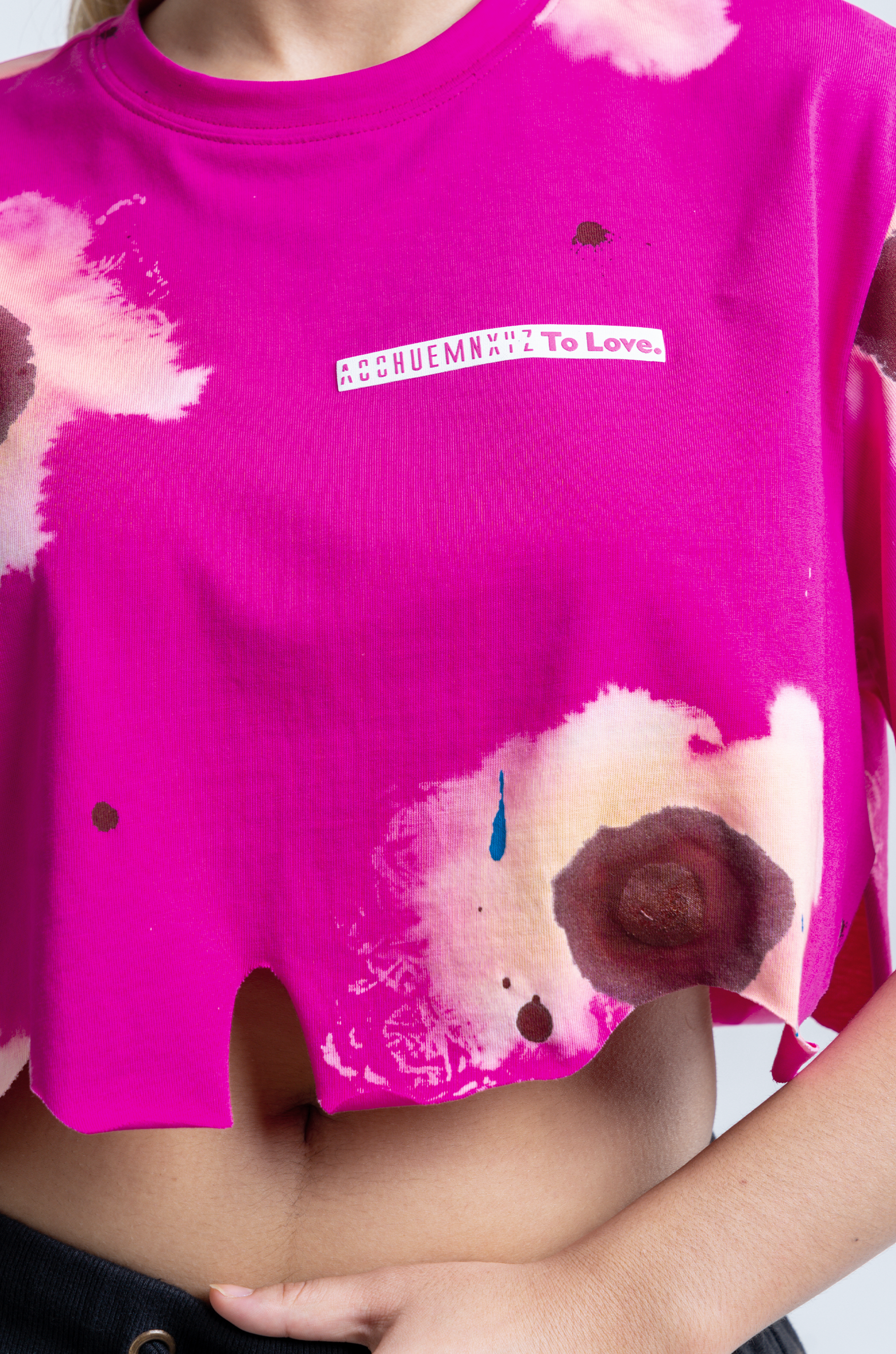 Huemn Blood Washed To Love Crop Top (Hot Pink)