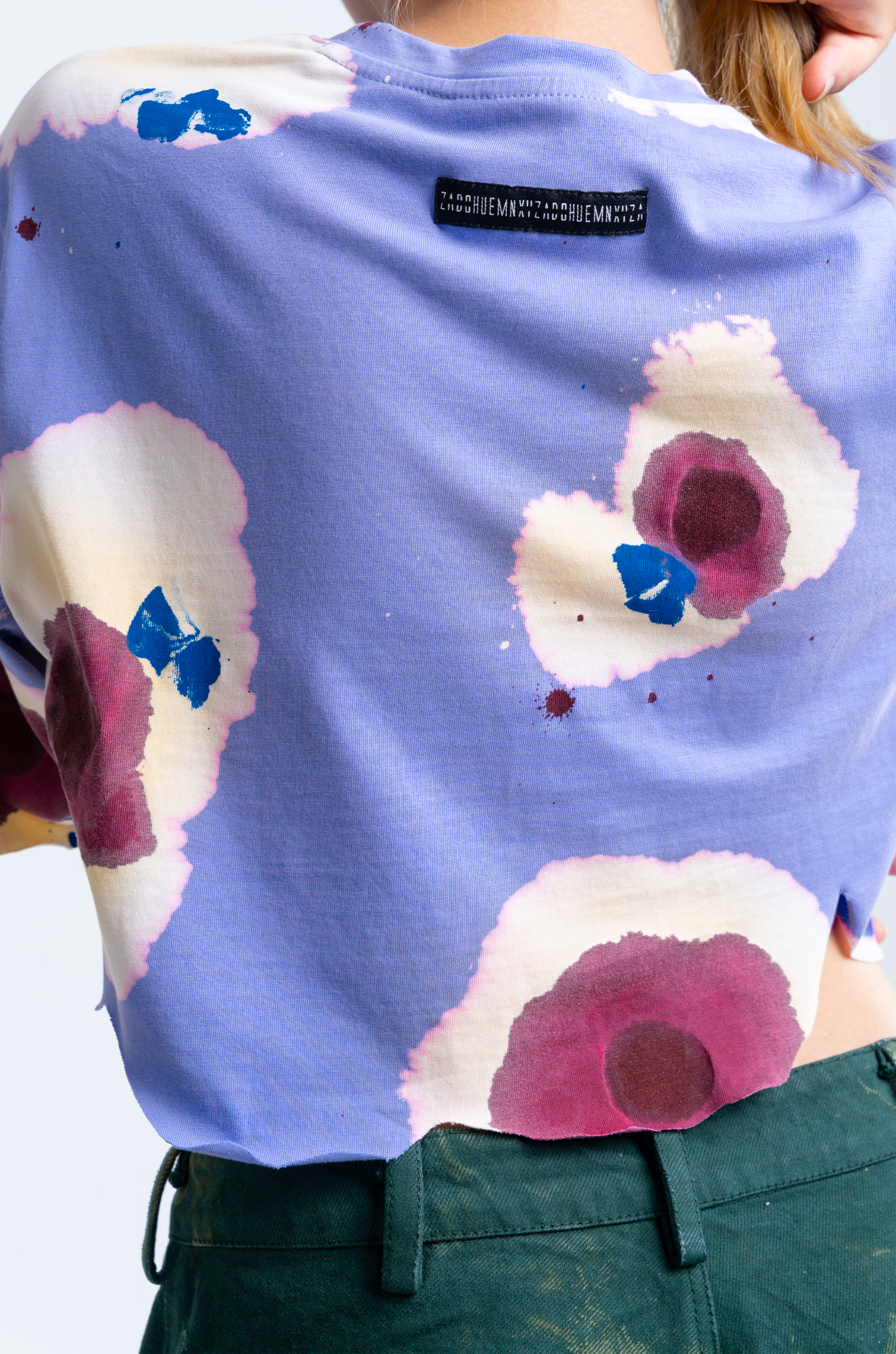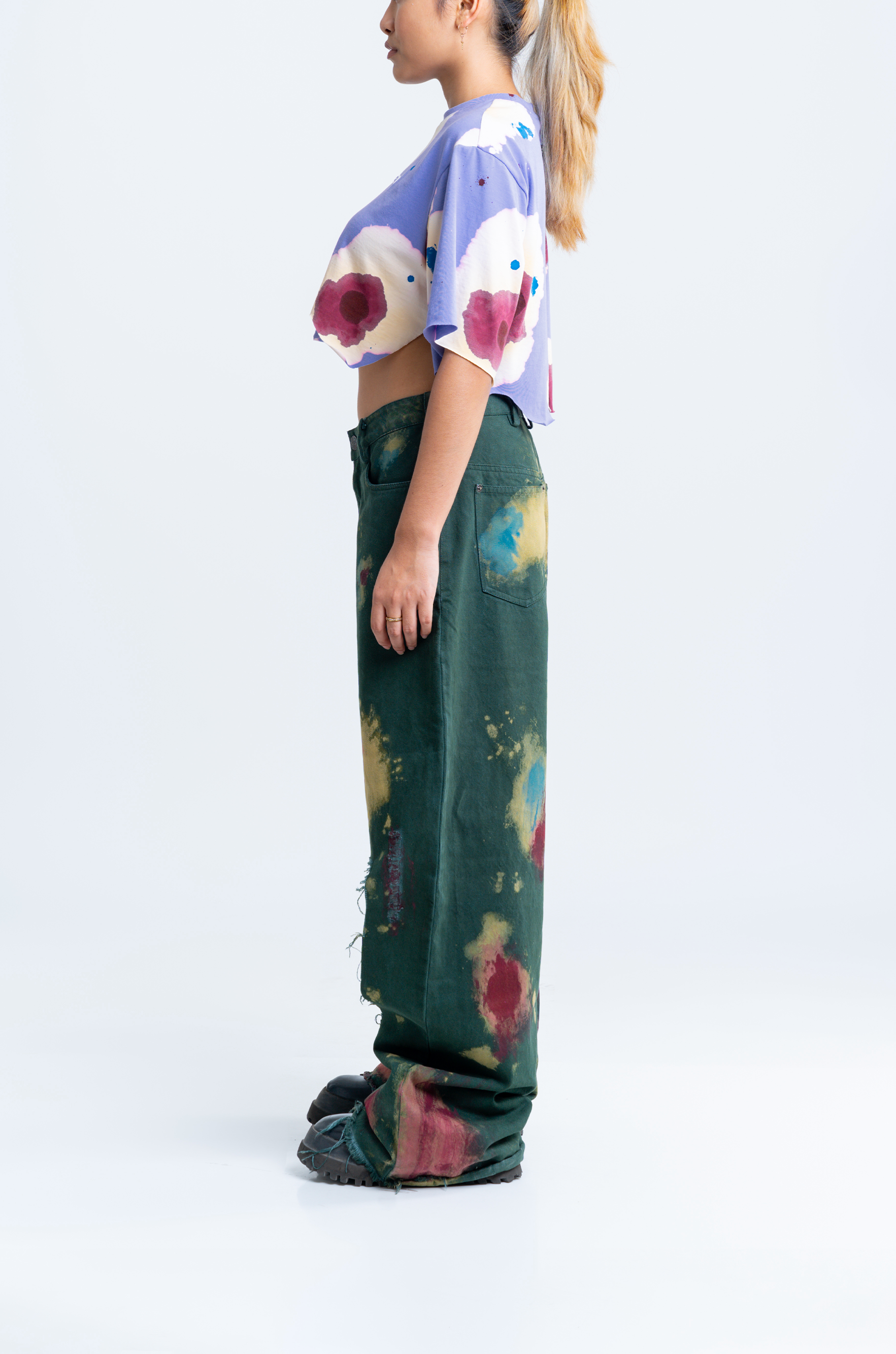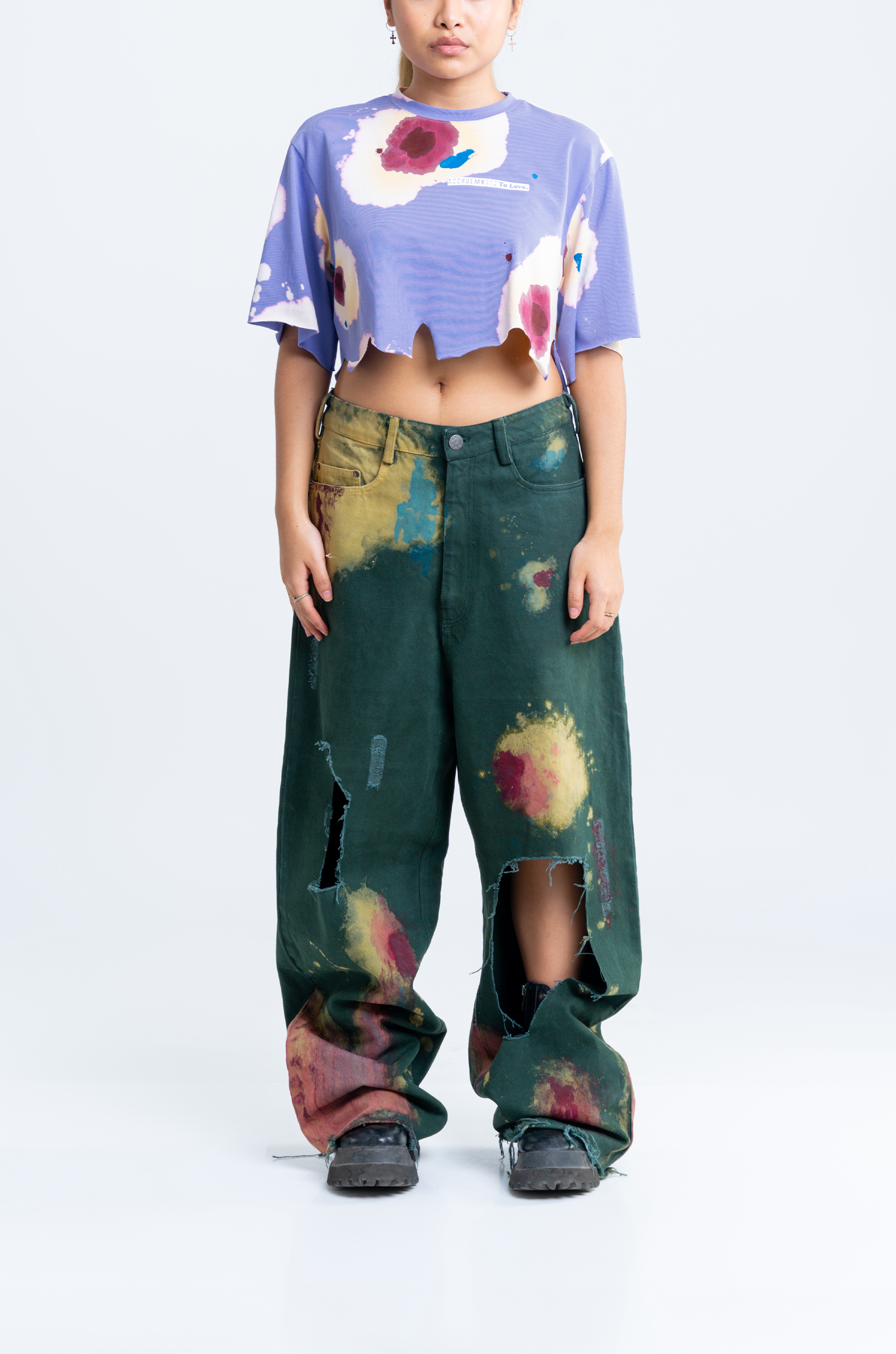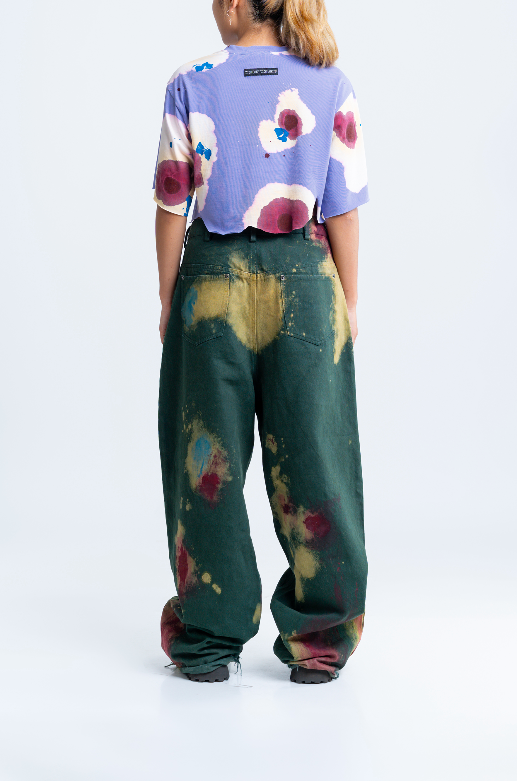 The surface is carefully finished with meticulously researched techniques. This crop top went through an intensive 7-step wash routine for achieving this surface finish.