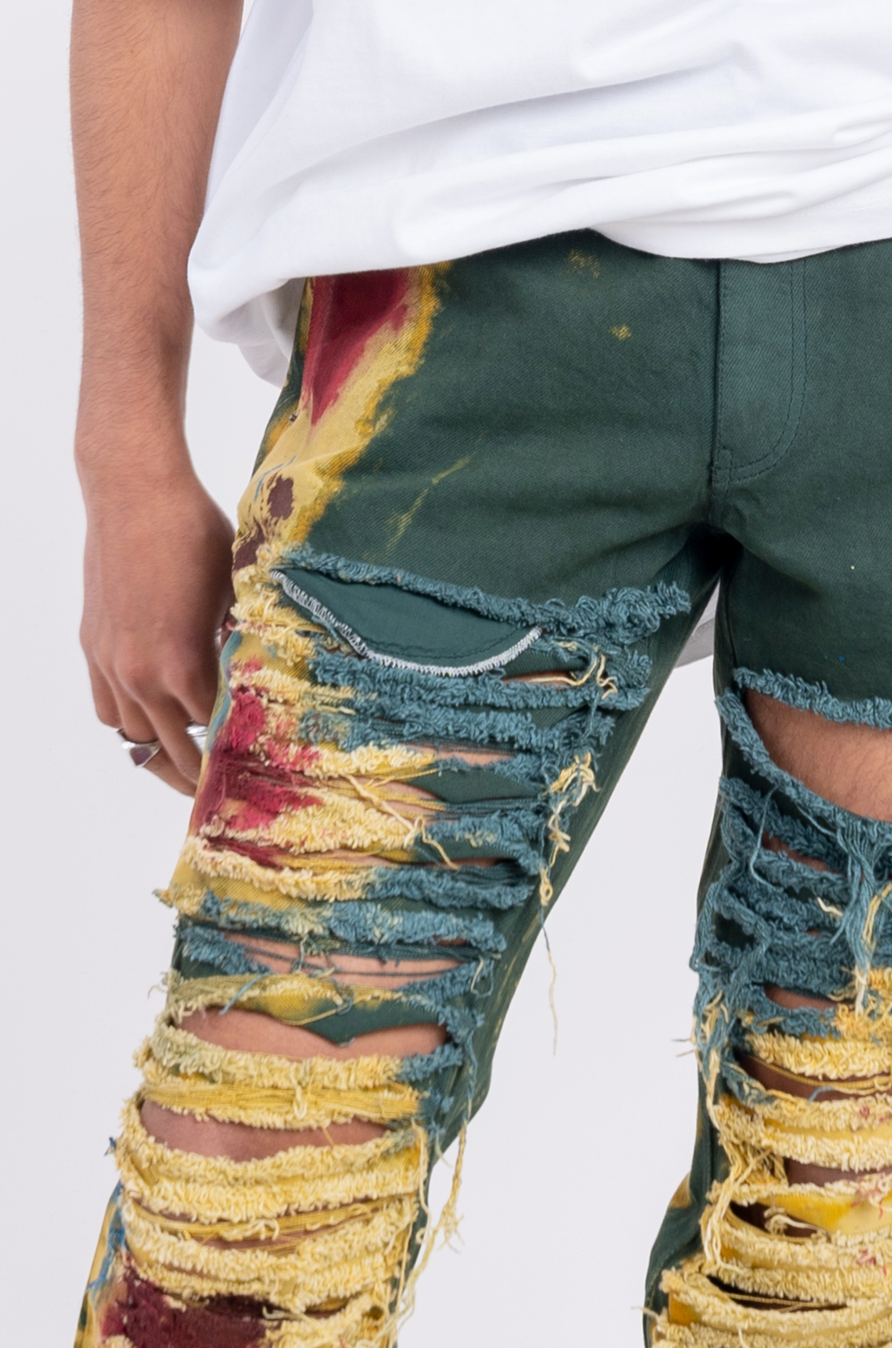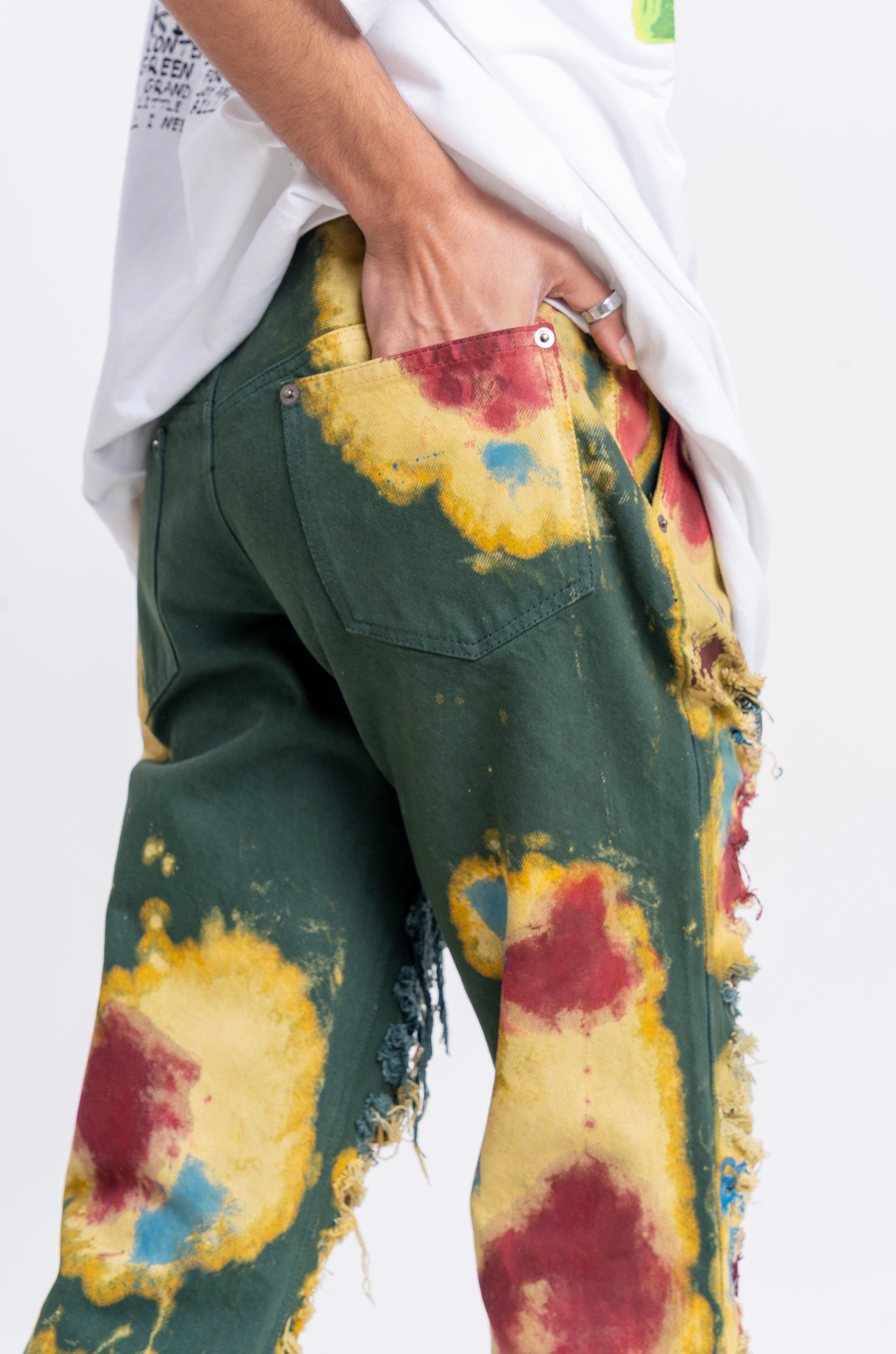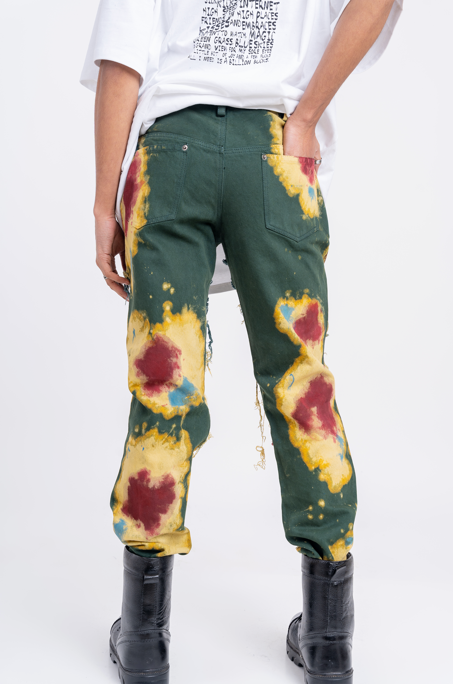 Huemn Blood Washed Slit And Frayed Denim (Green)