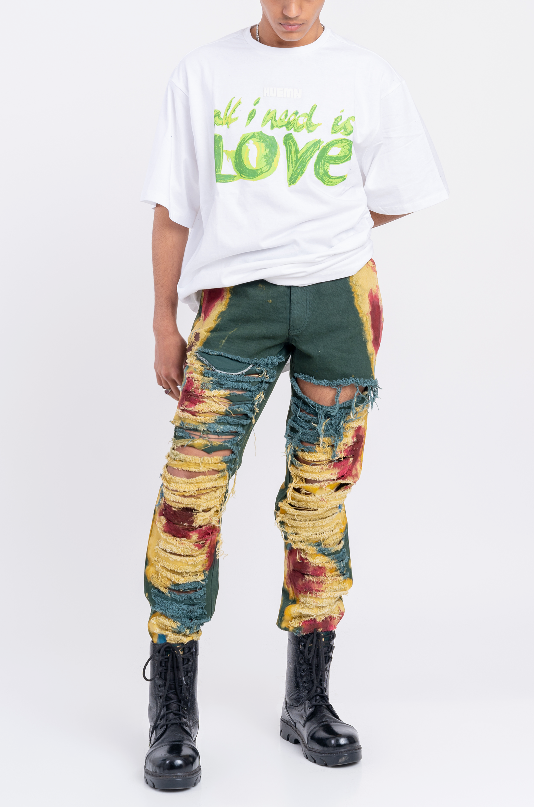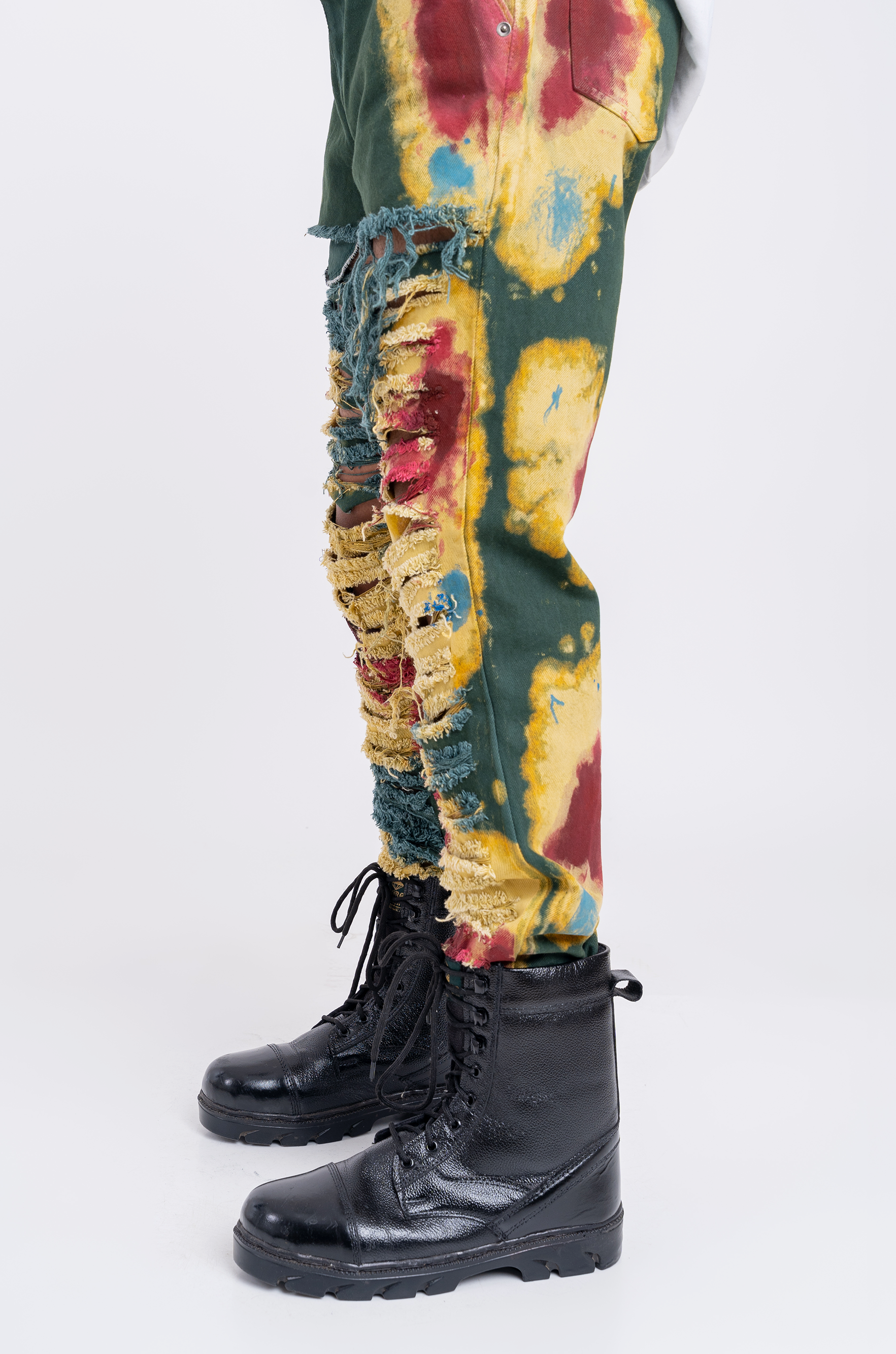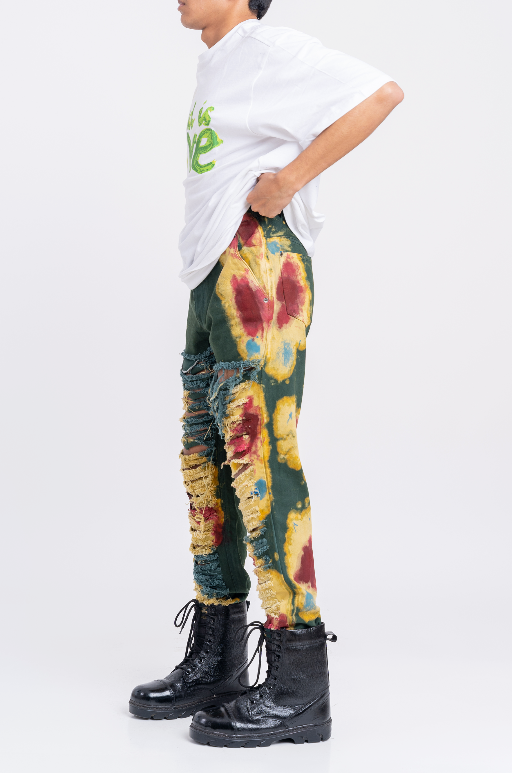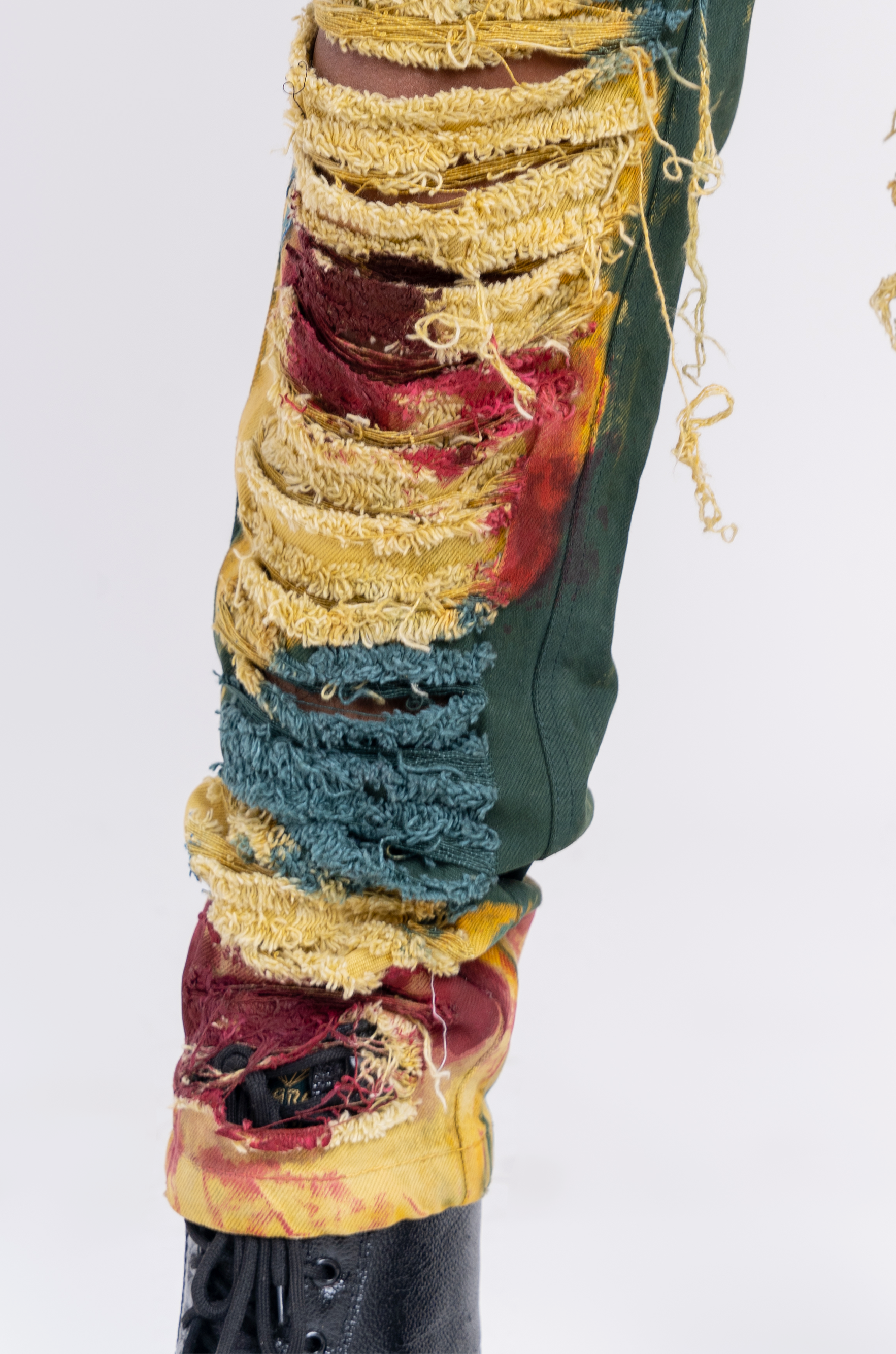 Huemn Blood Washed Slit And Frayed Denim (Green)