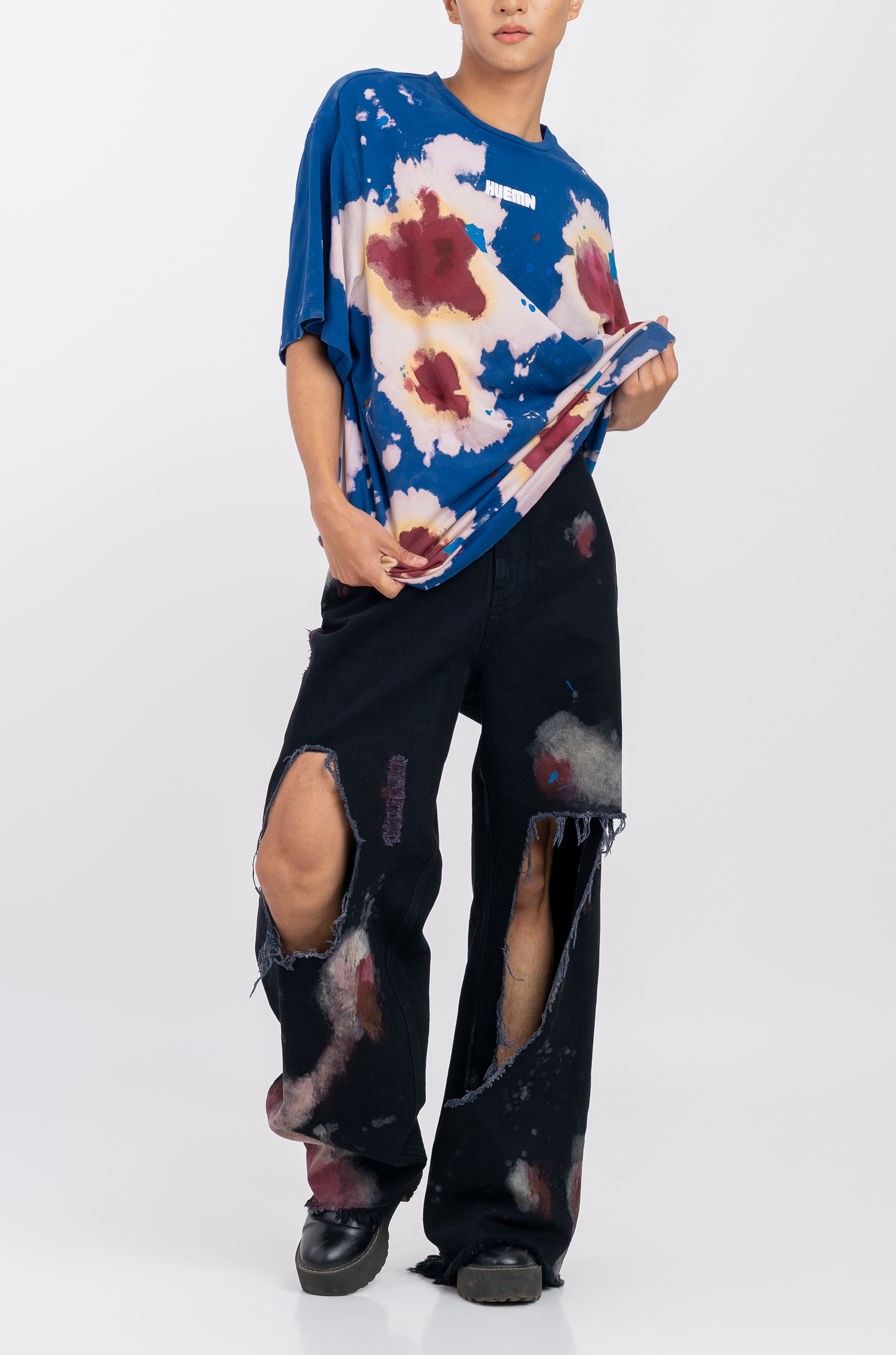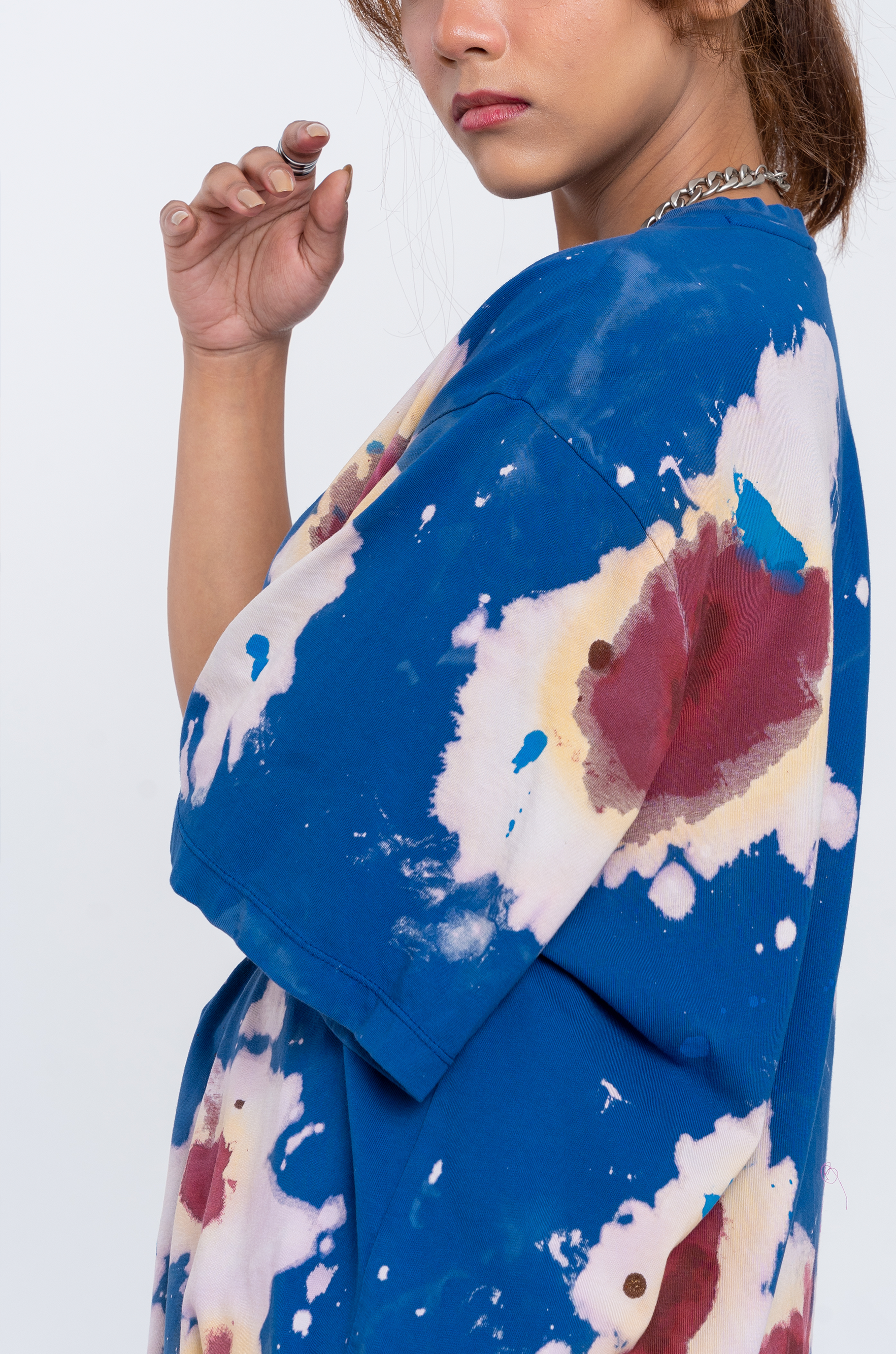 - Note : This is a one-of-one handmade product. Each surface is treated manually. Hence, while the treatment, dye, and washes for the T-shirt will remain the same, the surface pattern may vary from the image shown on this product page.