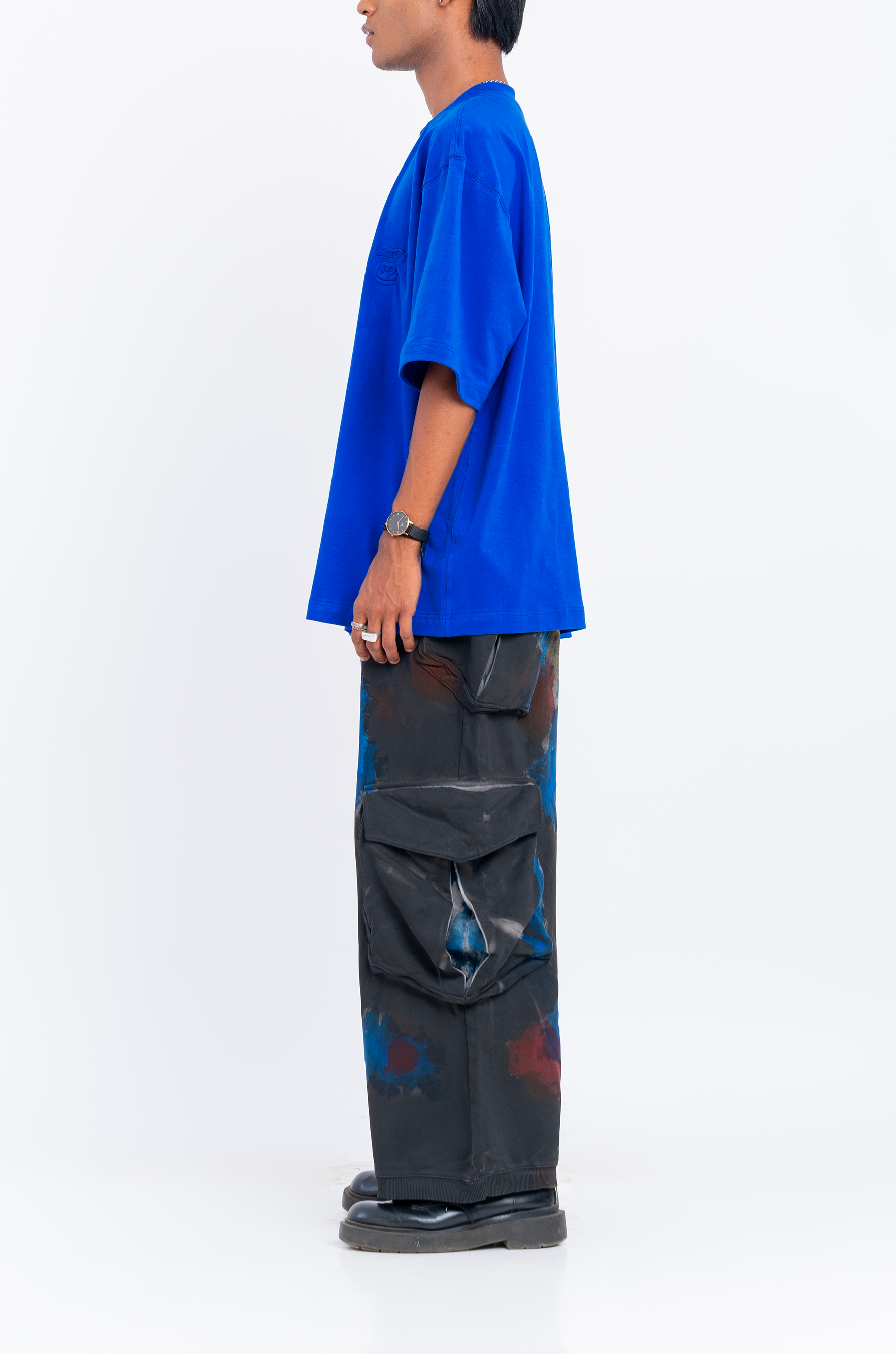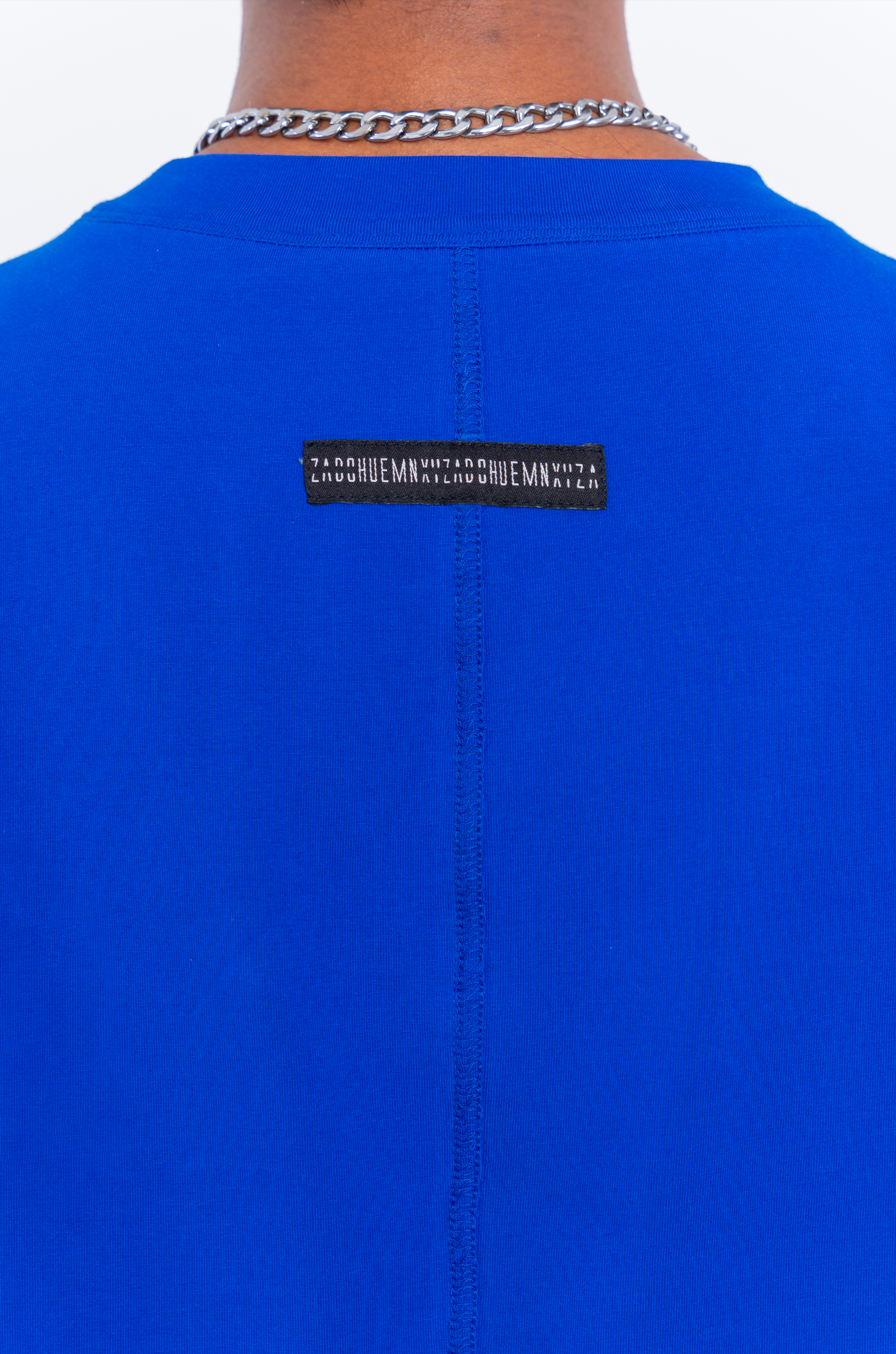 100% cotton HUEMN BlueT-shirt in signature HUEMN unisex, comfort fit silhouette.
