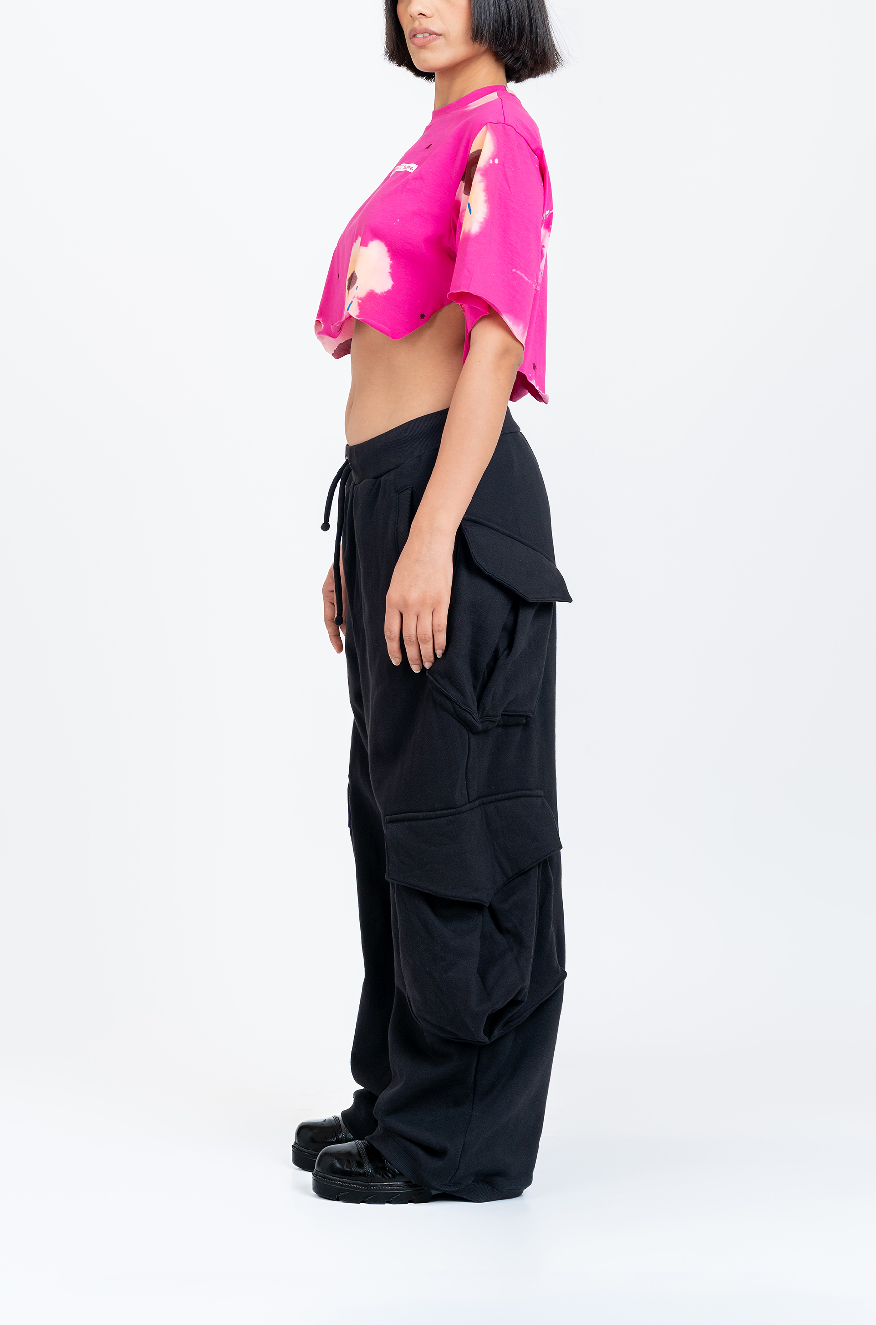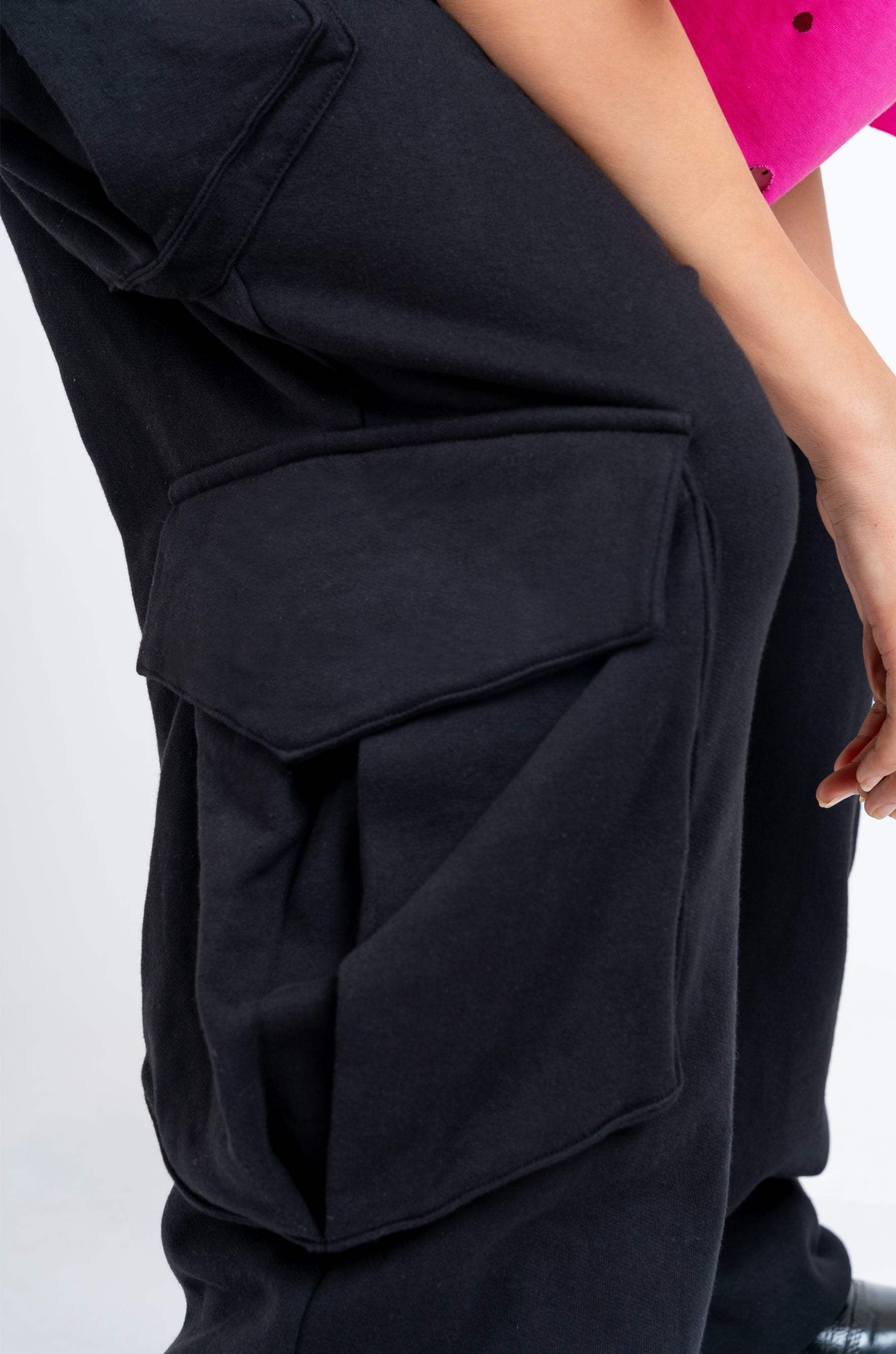 These sweatpants are presented as a wide-leg silhouette with a relaxed drawstring waist which is adorned with four oversized flap pockets that create a striking and contemporary design.