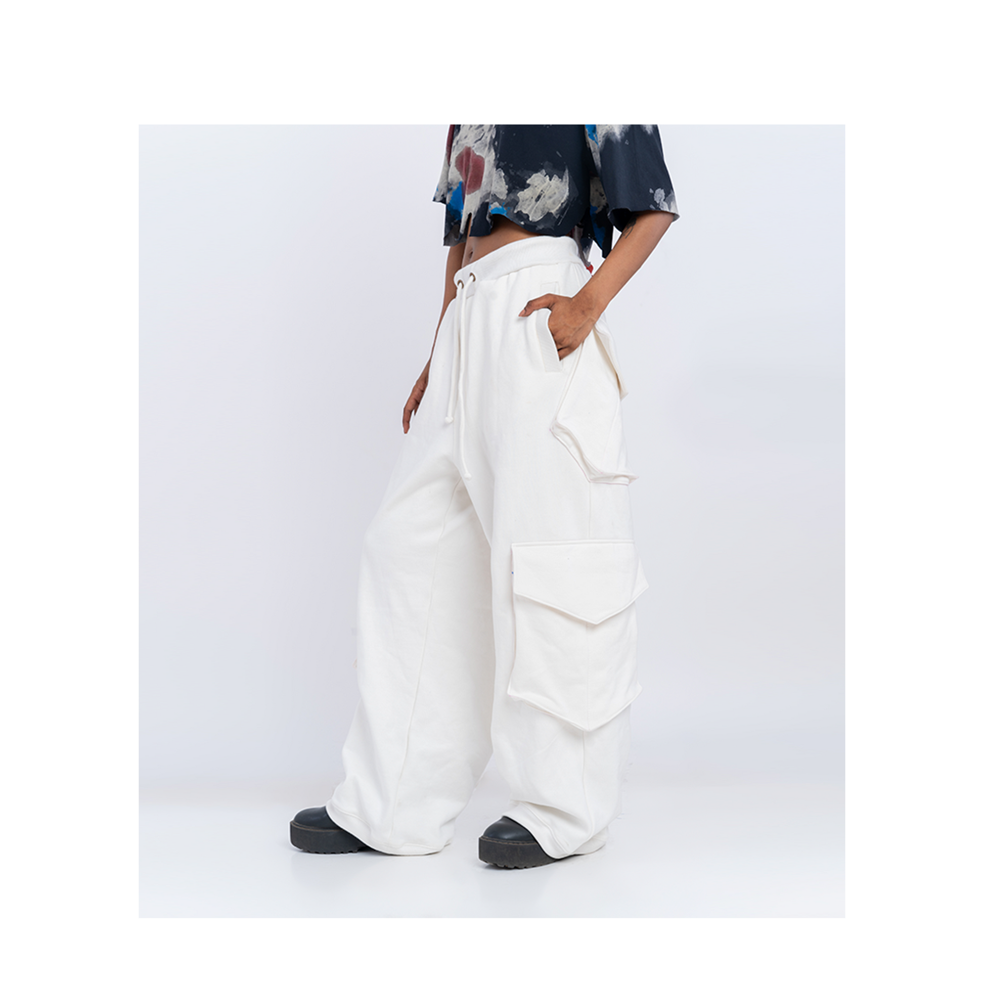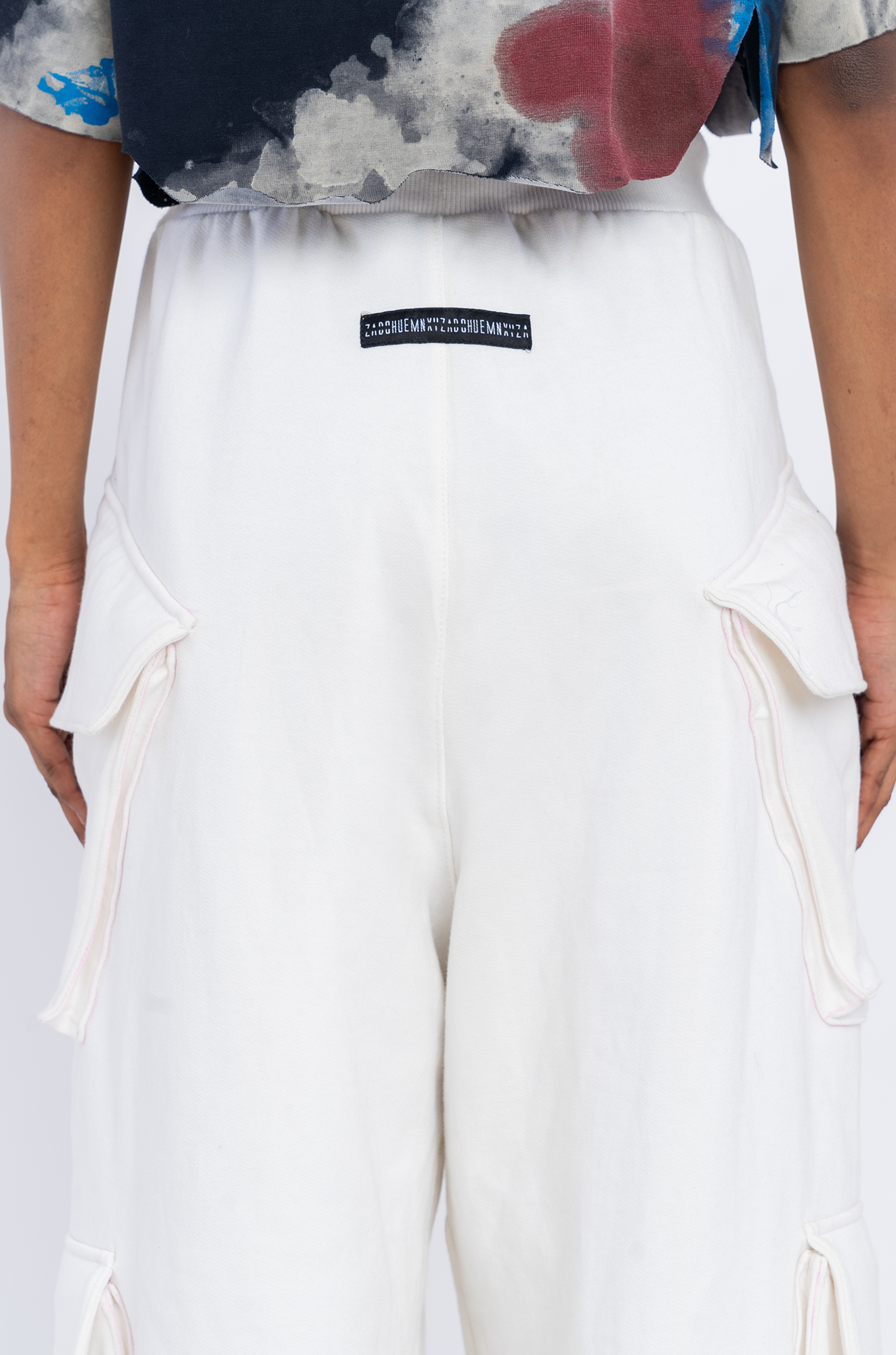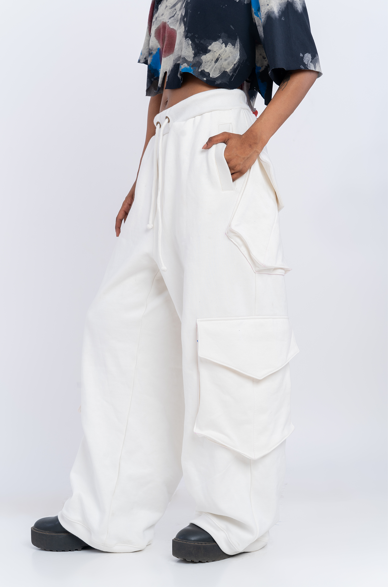 These sweatpants are presented as a wide-leg silhouette with a relaxed drawstring waist which is adorned with four oversized flap pockets.