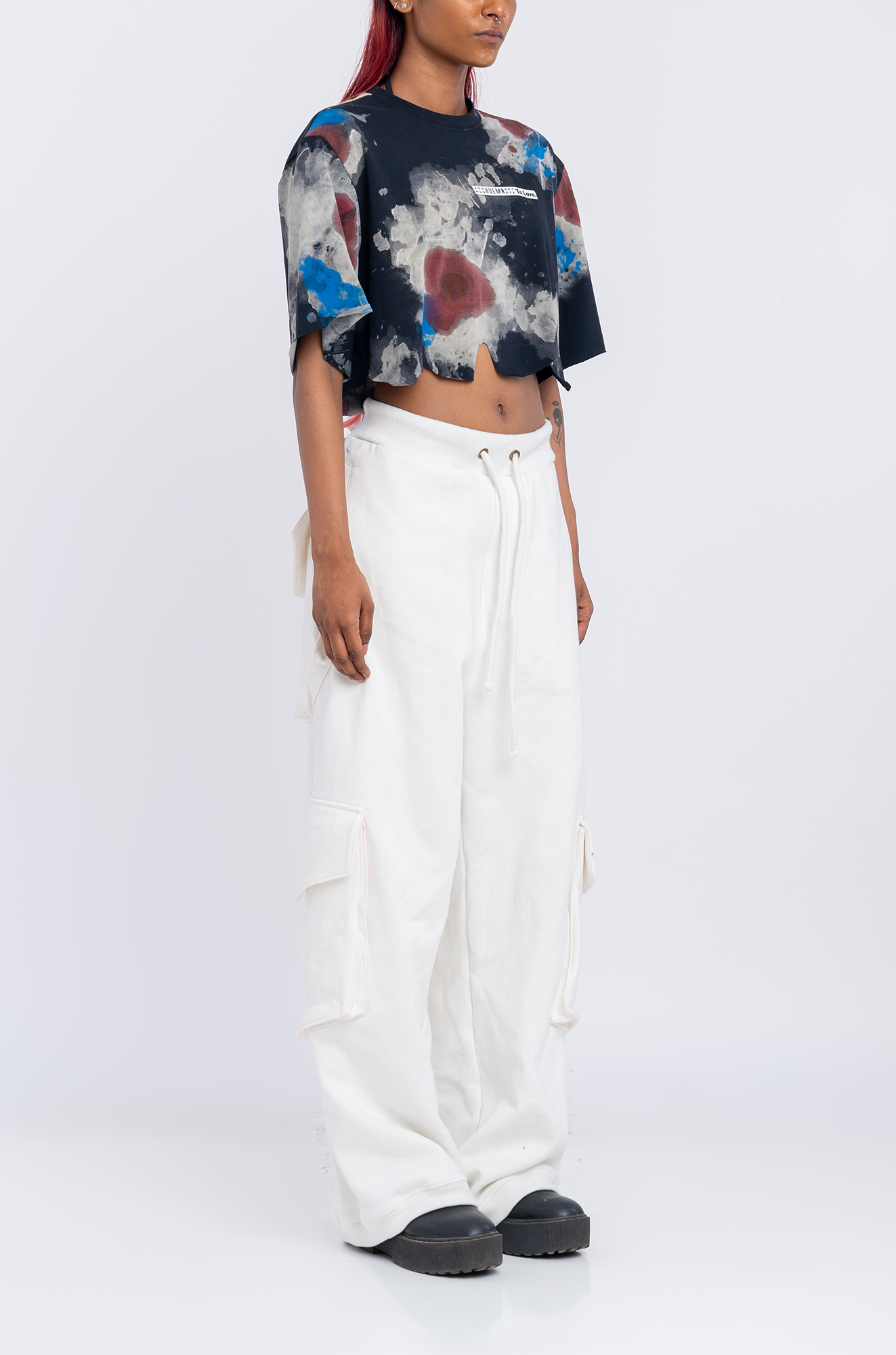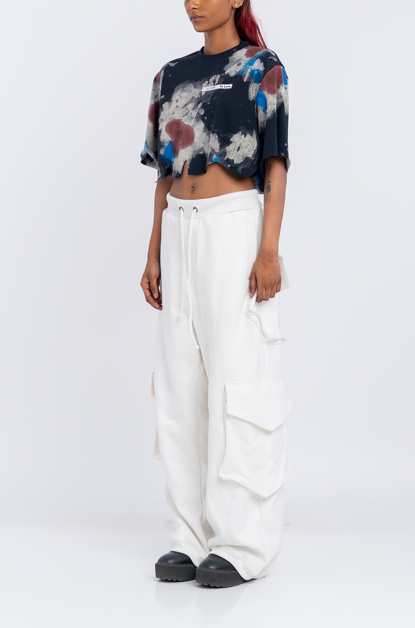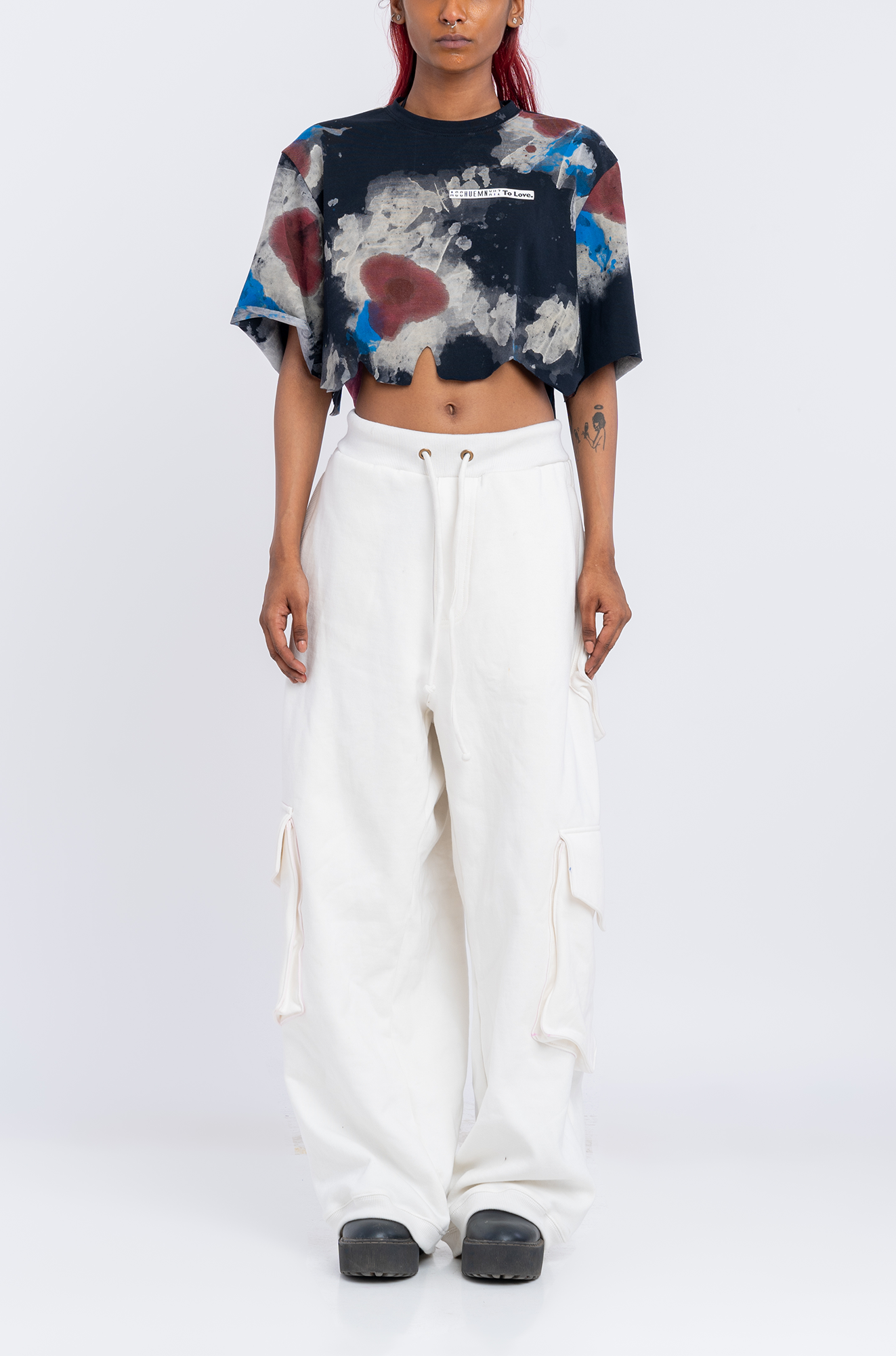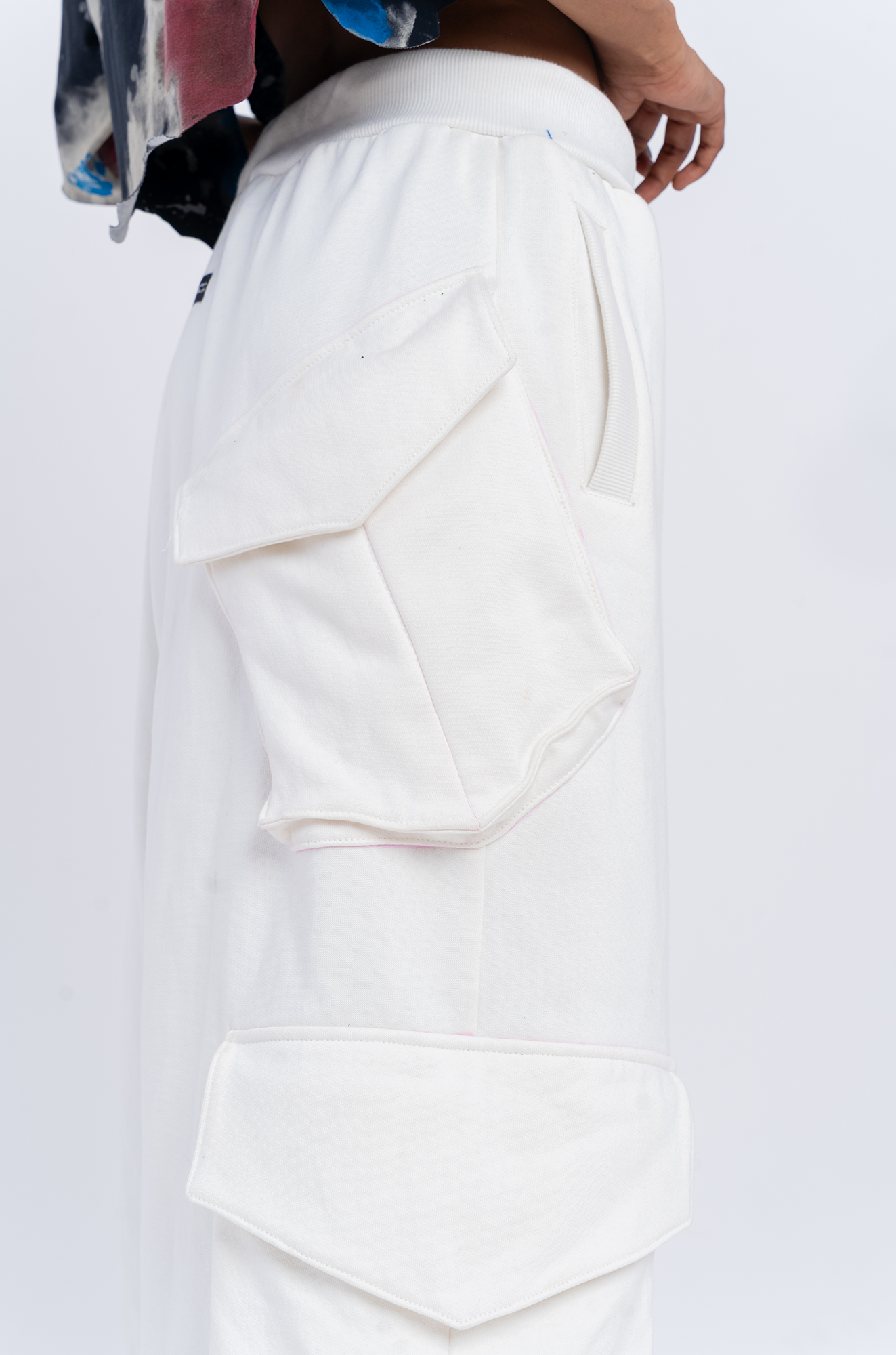 These sweatpants are presented as a wide-leg silhouette with a relaxed drawstring waist which is adorned with four oversized flap pockets.