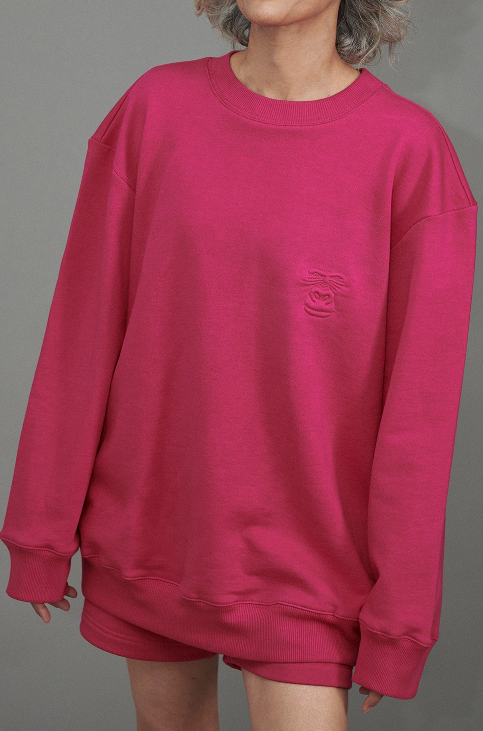 Sweatshirt features handcrafted 3D embossed effect HUEMN gorilla face.