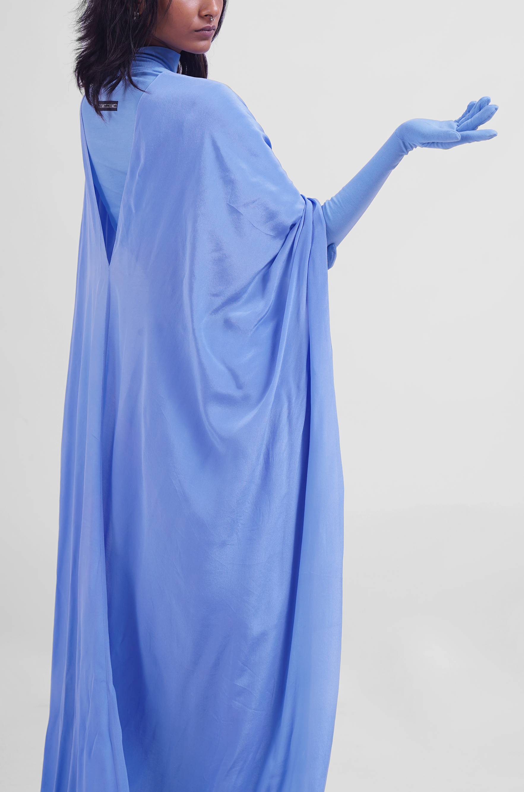 The world's first Dual-Pallu Sari-Pants. This is a one of a kind HUEMN's silhouette innovation in a blue palette.
