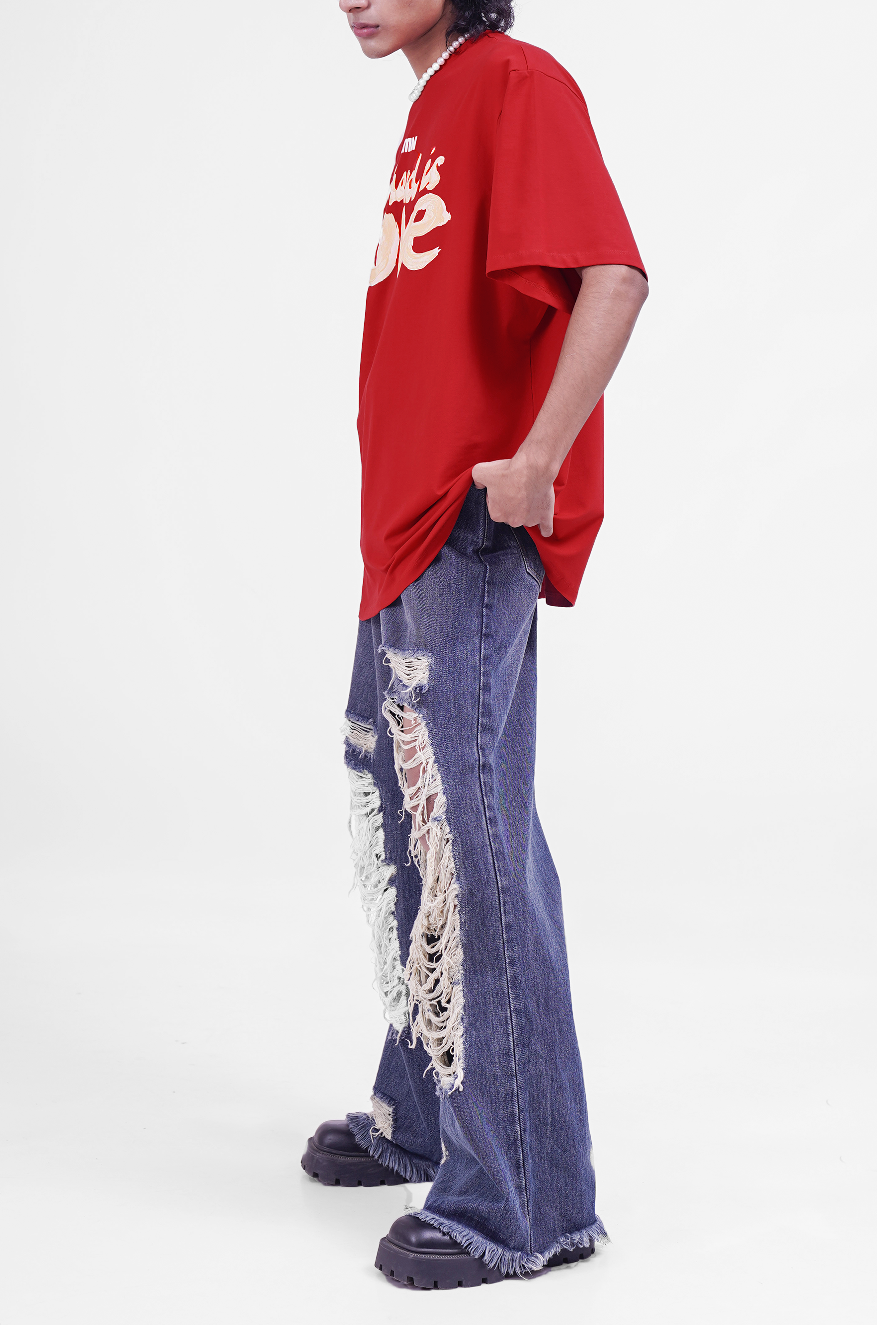 One-size, 100% cotton Red T-shirt in signature HUEMN oversized silhouette.