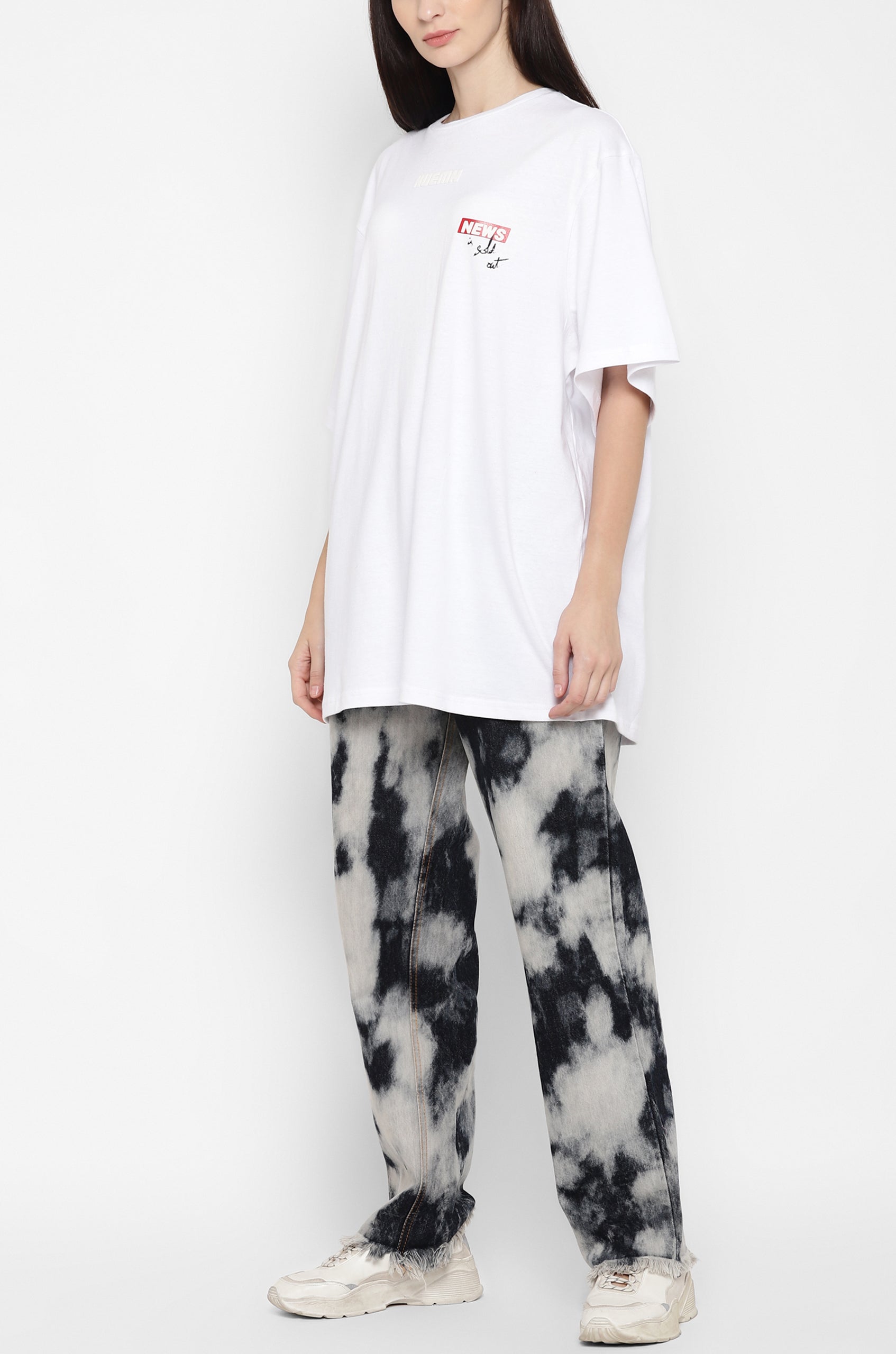 One-size, 100% cotton white T-shirt in signature HUEMN oversized silhouette.