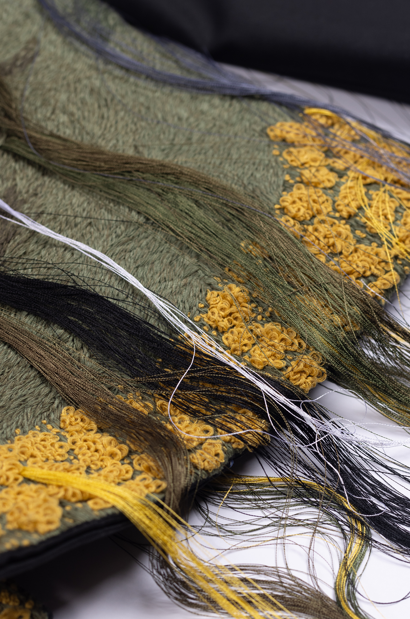 The embroidery work on the entire front panels is done with thousands of hand-embroidered stitches made with multi-colored threads made in over 180 man-hours.