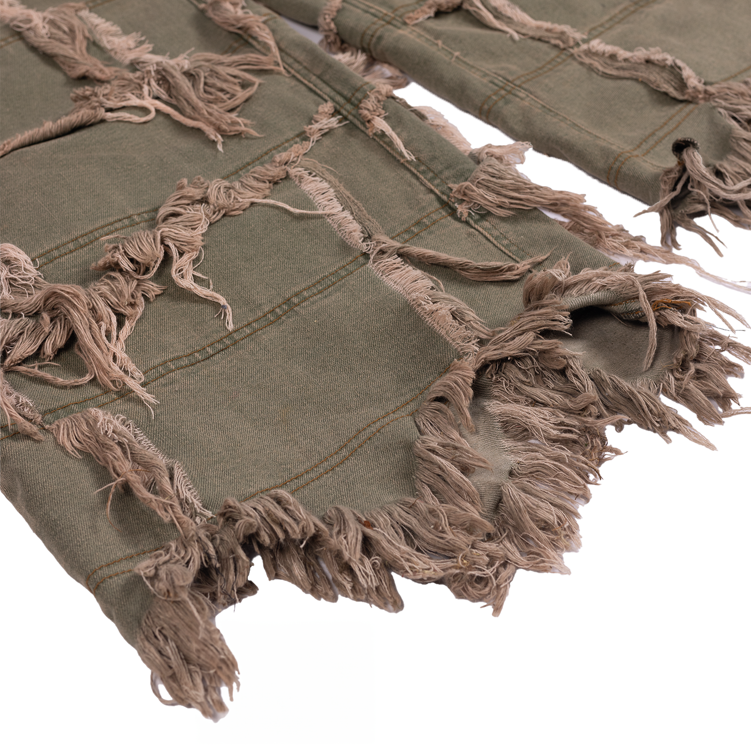 The soft-washed denim is crafted for a super baggy fit, made from over 100 denim panels patched together.