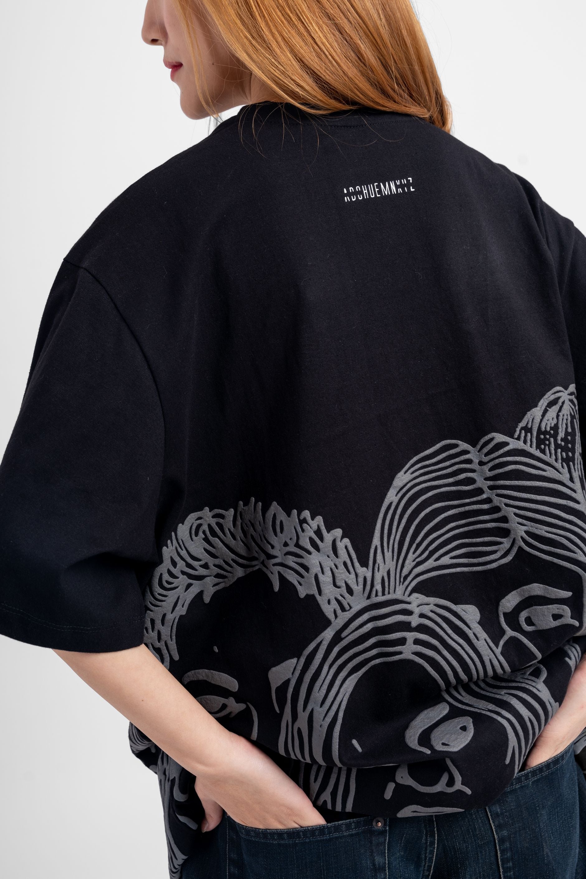 The Pepsi black T-shirt is made in HUEMN's signature oversized fit with a rubberized 3-D screen print featuring the diversity print.