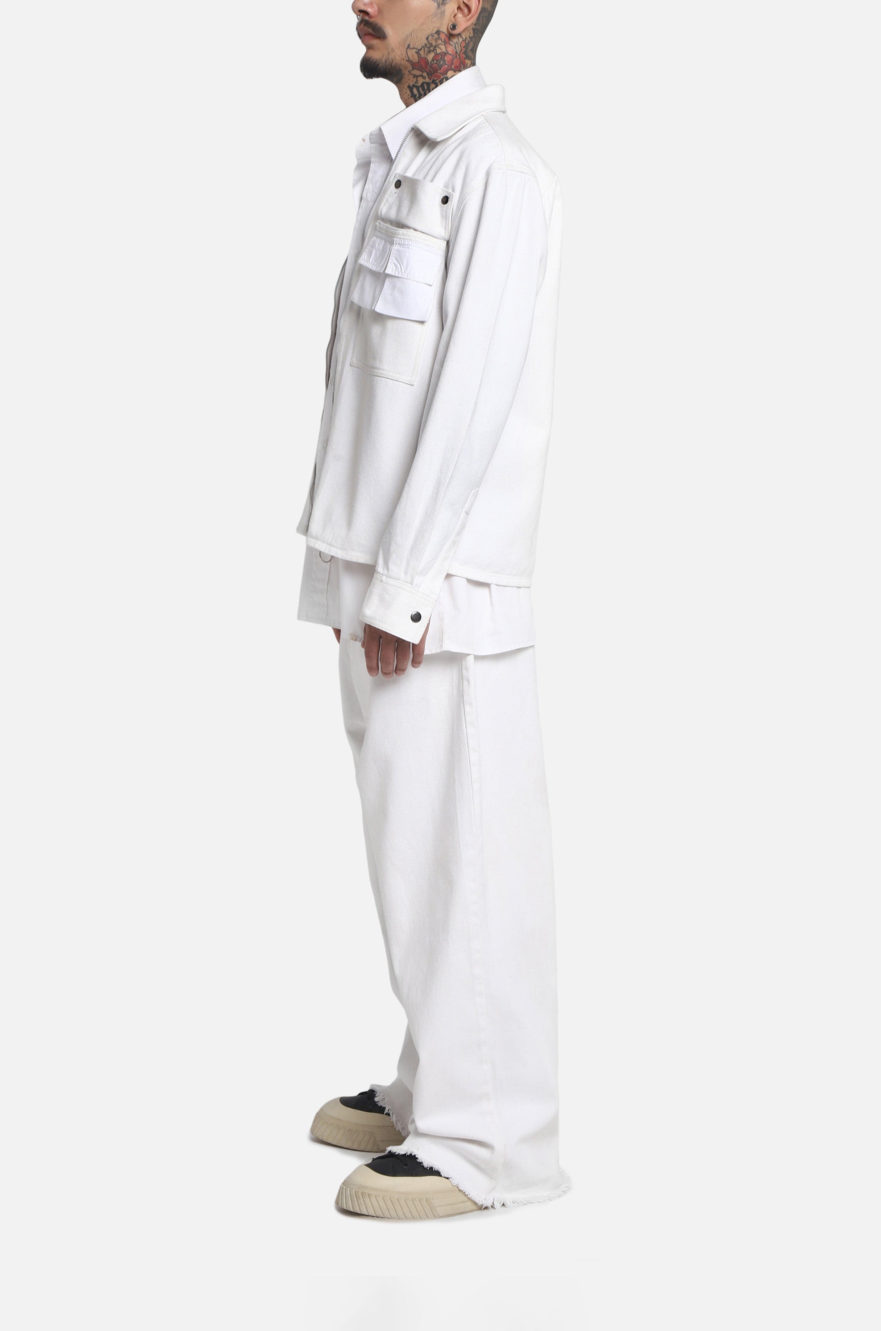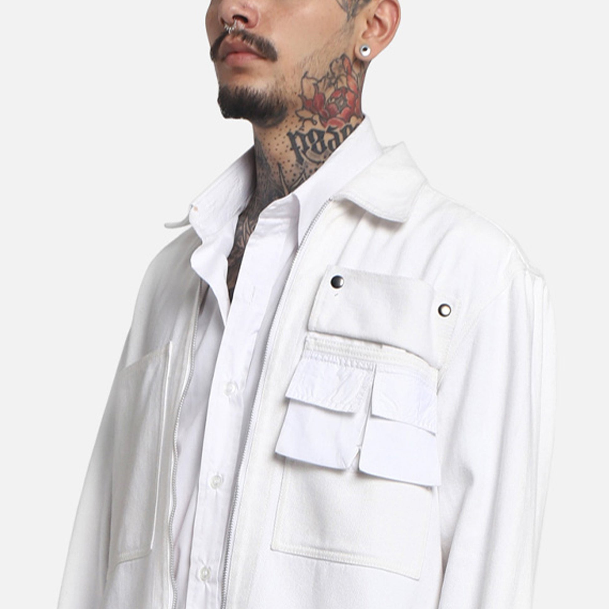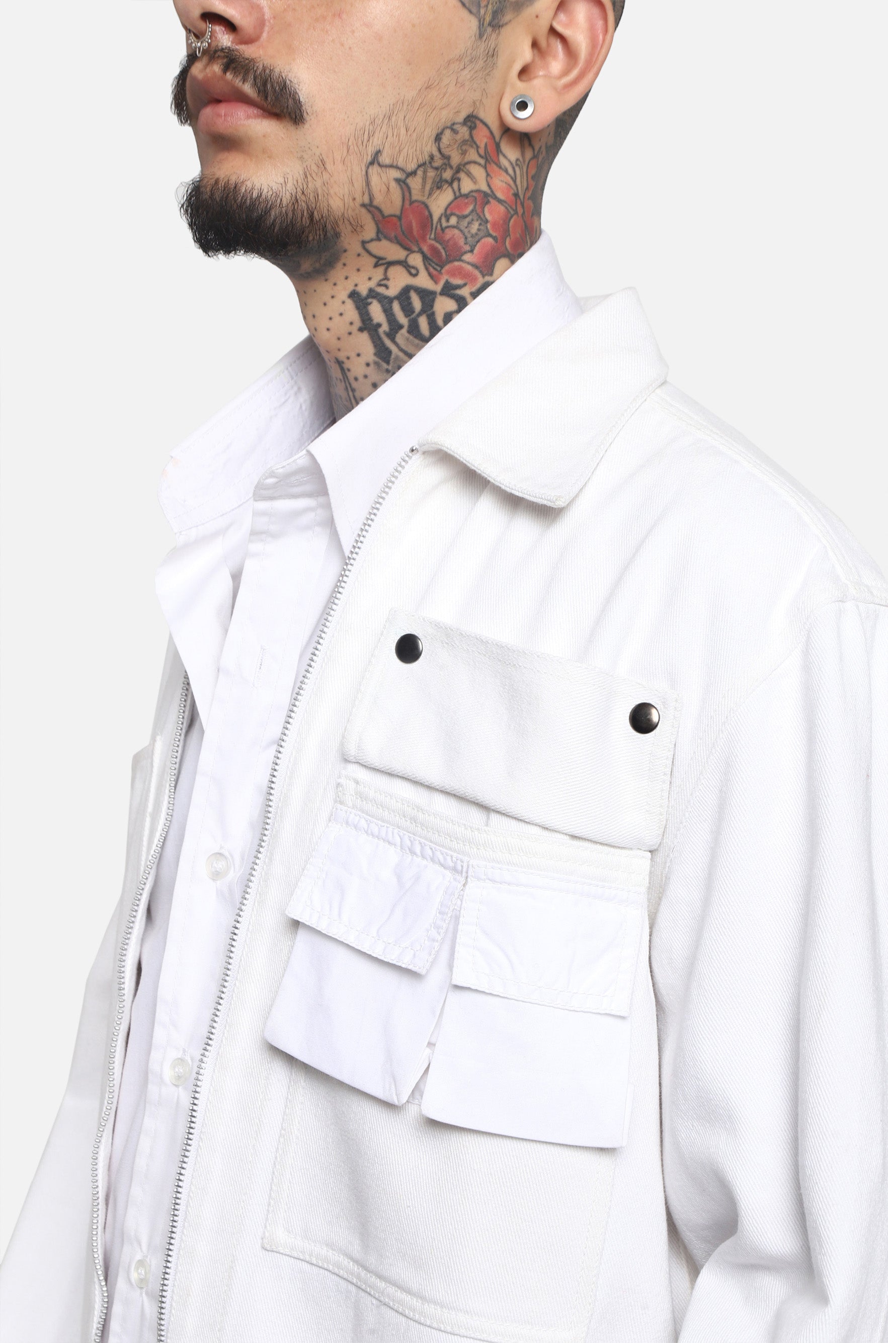 Comfortable and lightweight shacket. Crafted in 100% cotton denim, unisex silhouette, cut for a true-to-size fit with a multi-patched pocket detailing on front. Perfect on its own or as an outer layer.