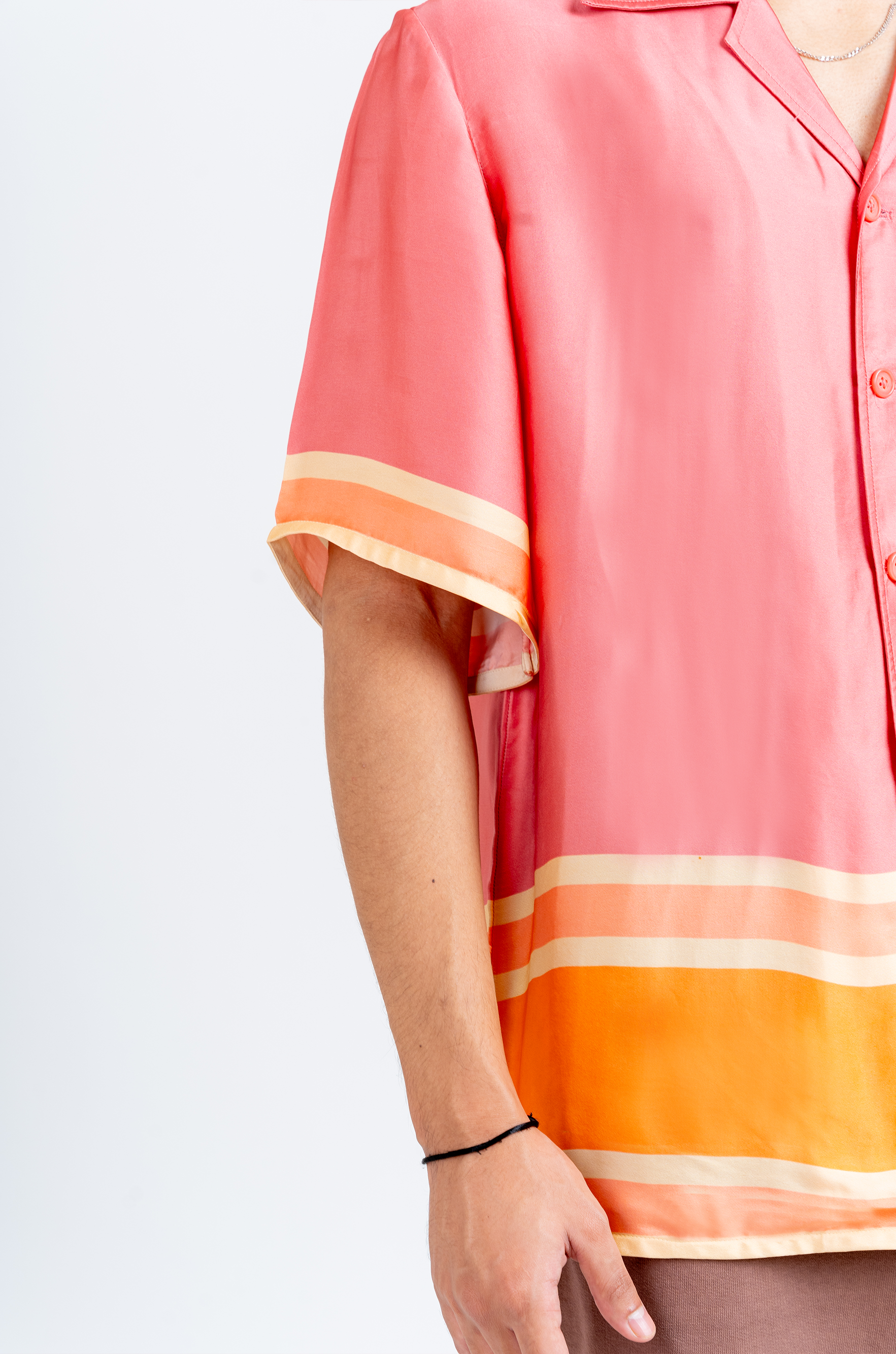 The HUEMN Racer Stripe Shirt - Crafted in silk satin.