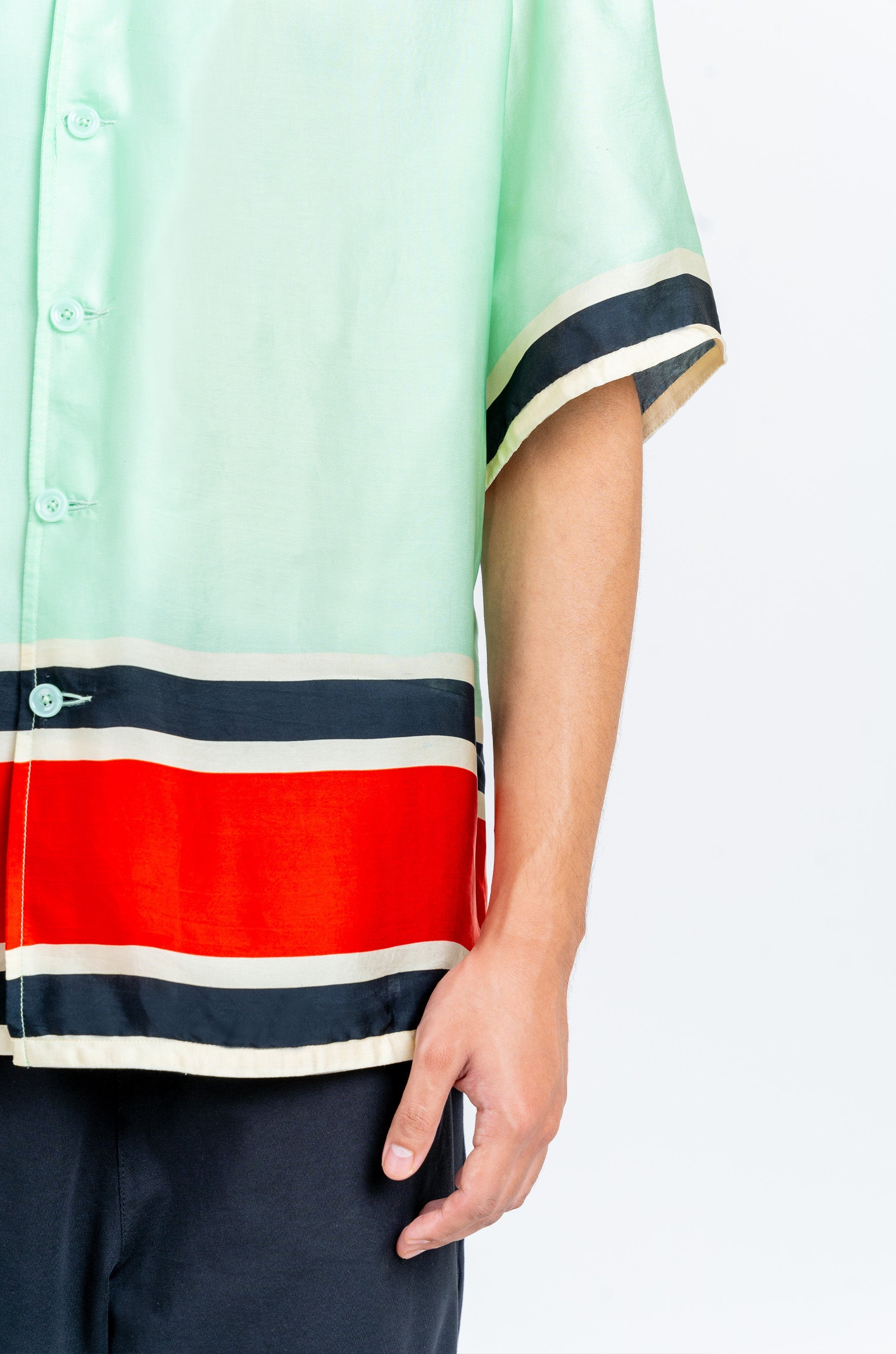 The HUEMN Racer Stripe Shirt - Crafted in silk satin.