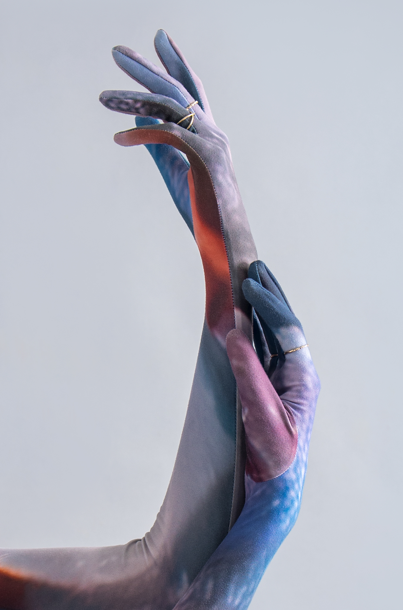 Turtleneck crop top in the classic HUEMN second skin silhouette, with a gloved sleeve.