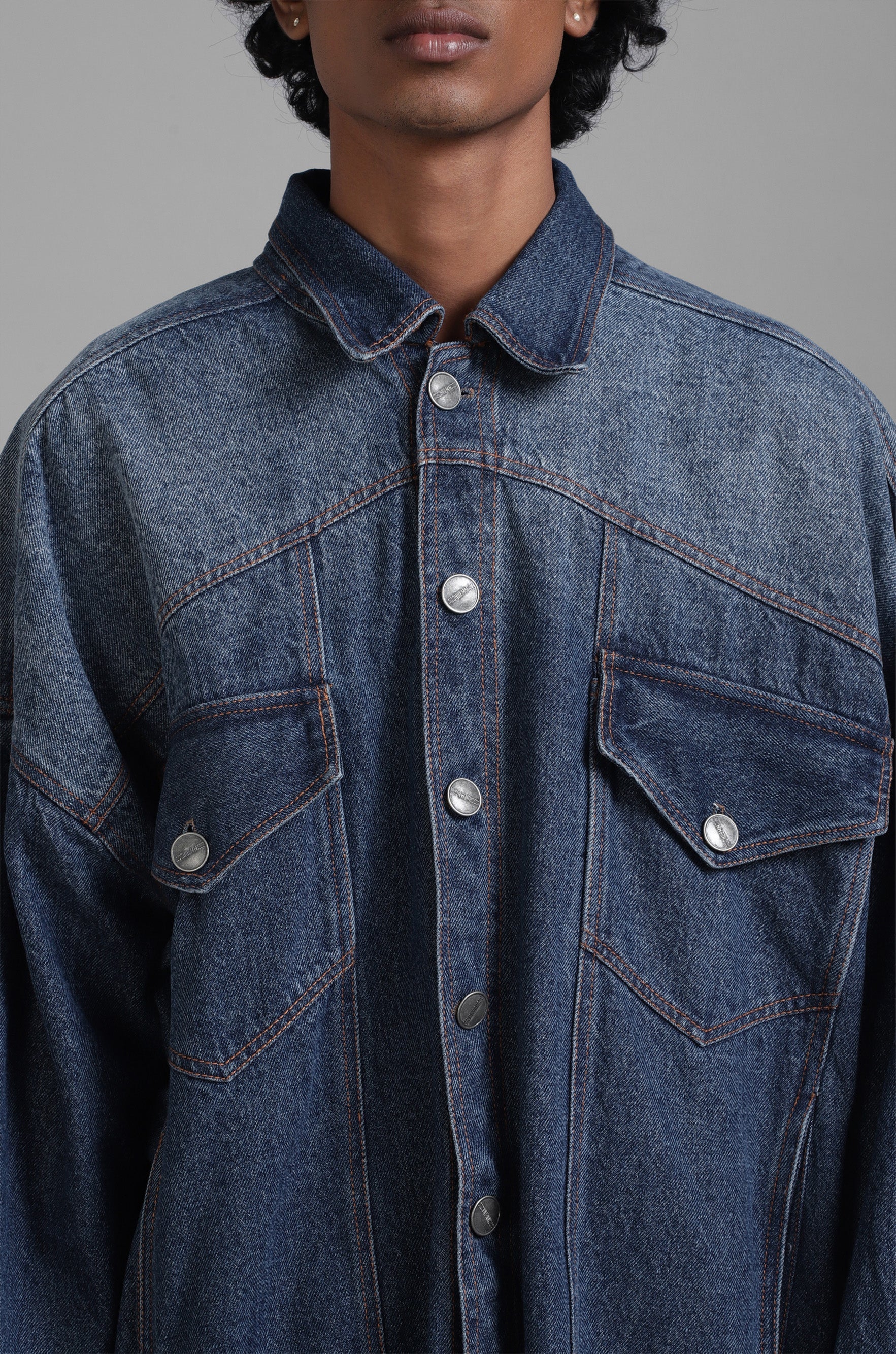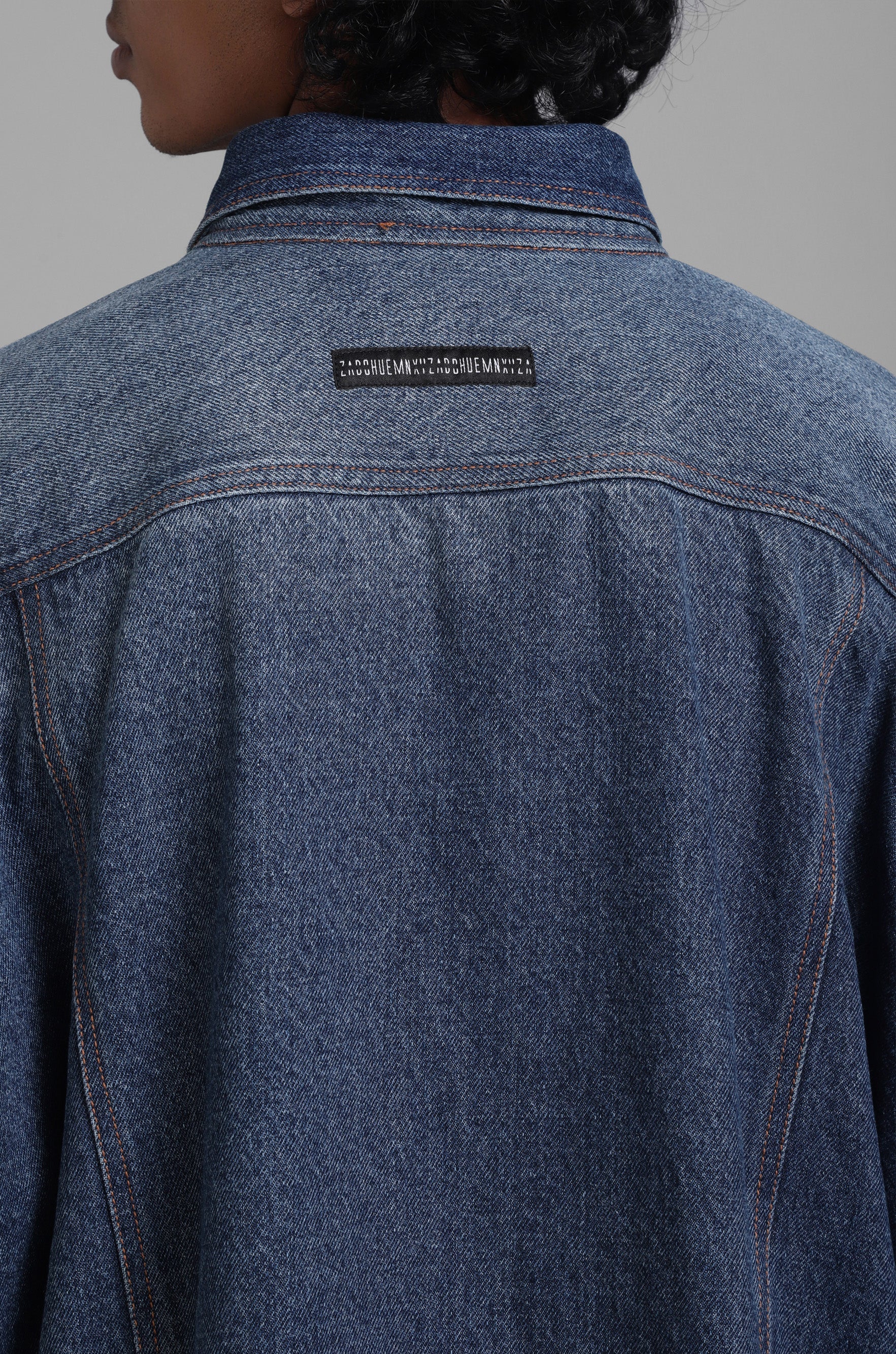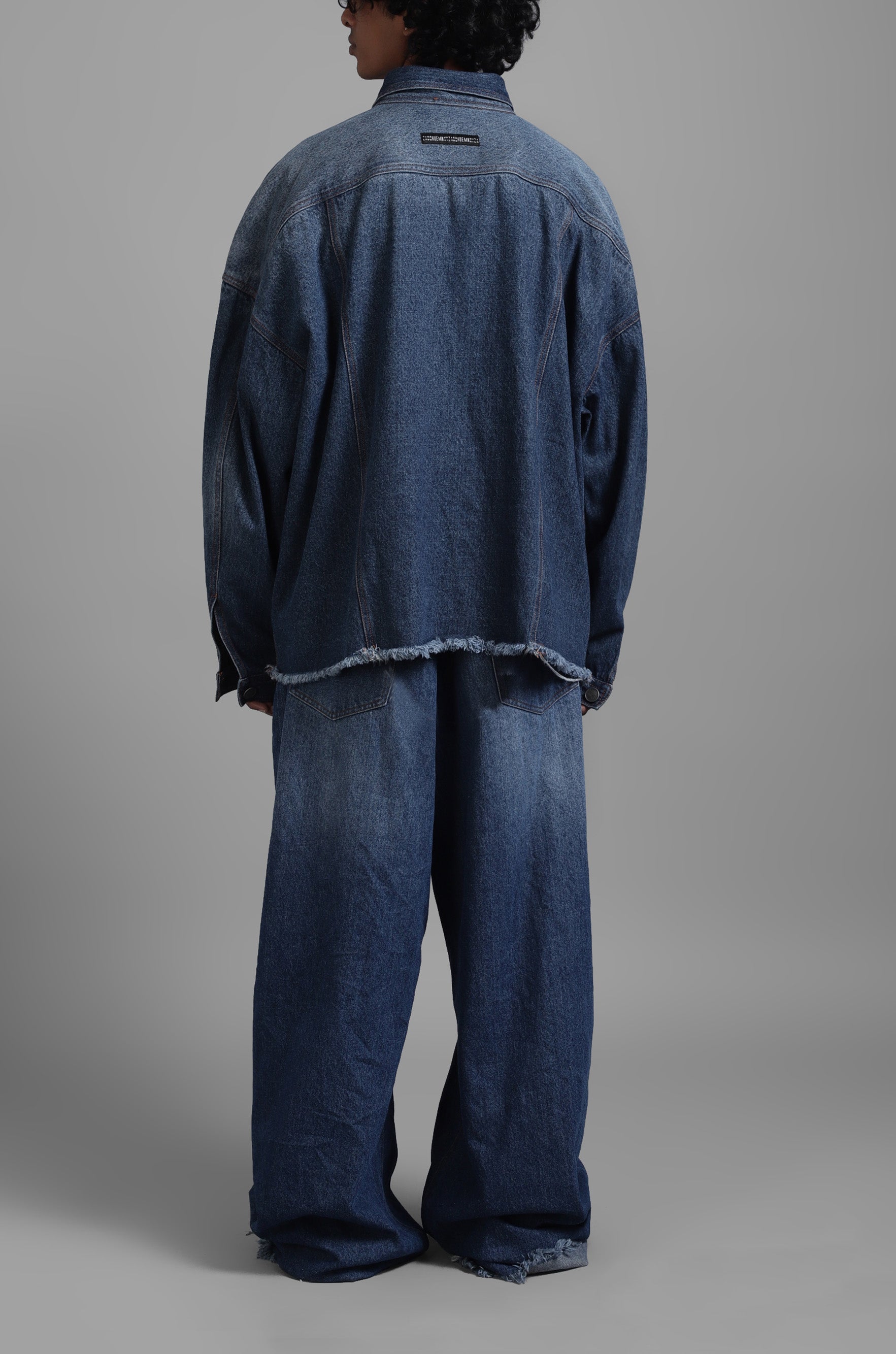 SuperHUEMN Dark Wash Faded Effect Classic Distressed Denim Jacket (Indigo)