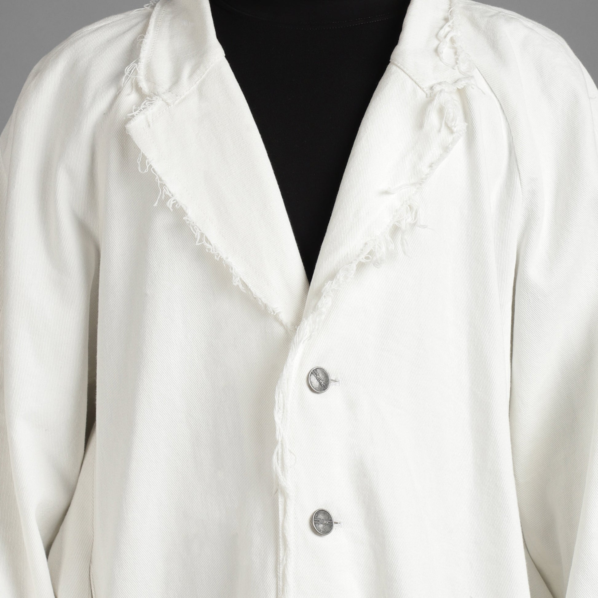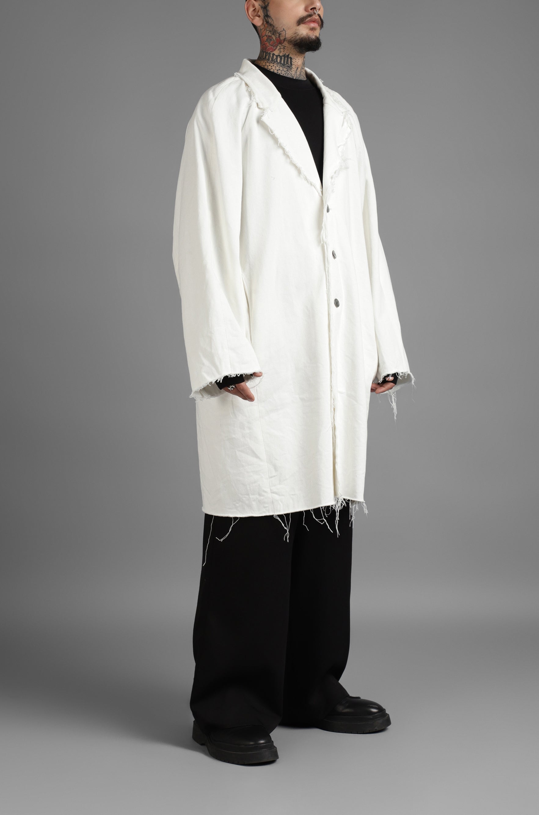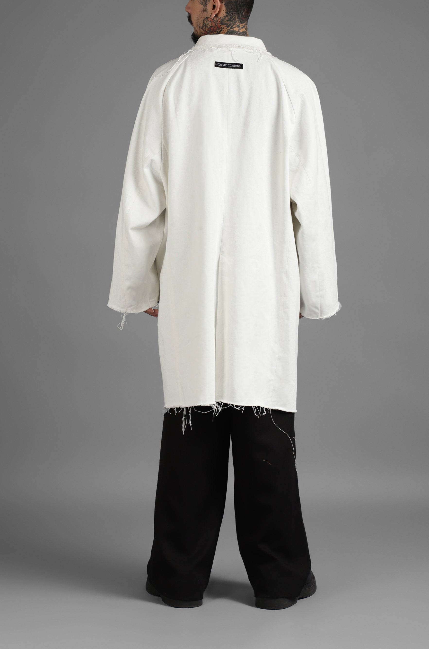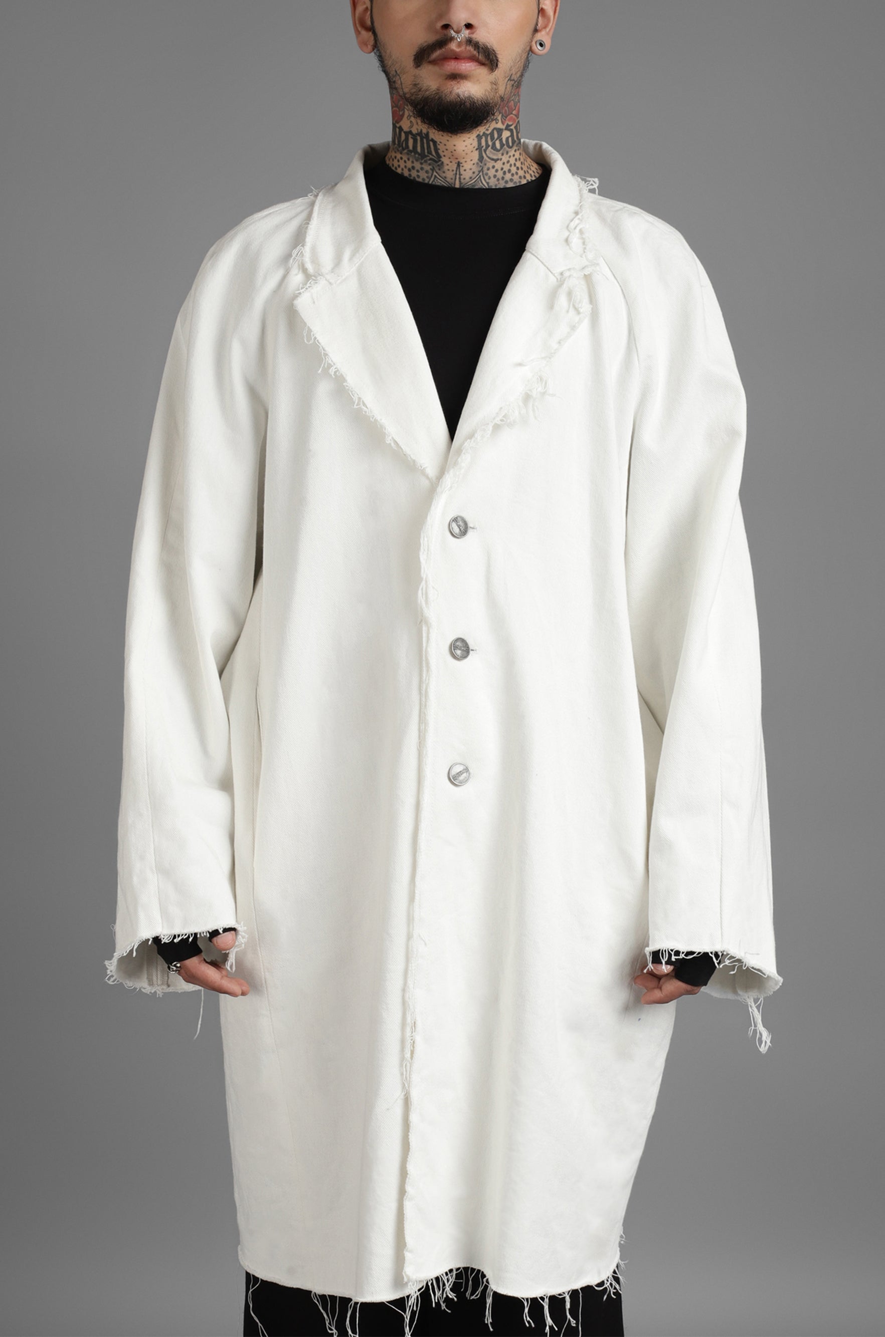 The product features two side pockets and is finished with raw edge detailing. This overcoat is un-lined and can take you through many seasons of wear, as a light layer.