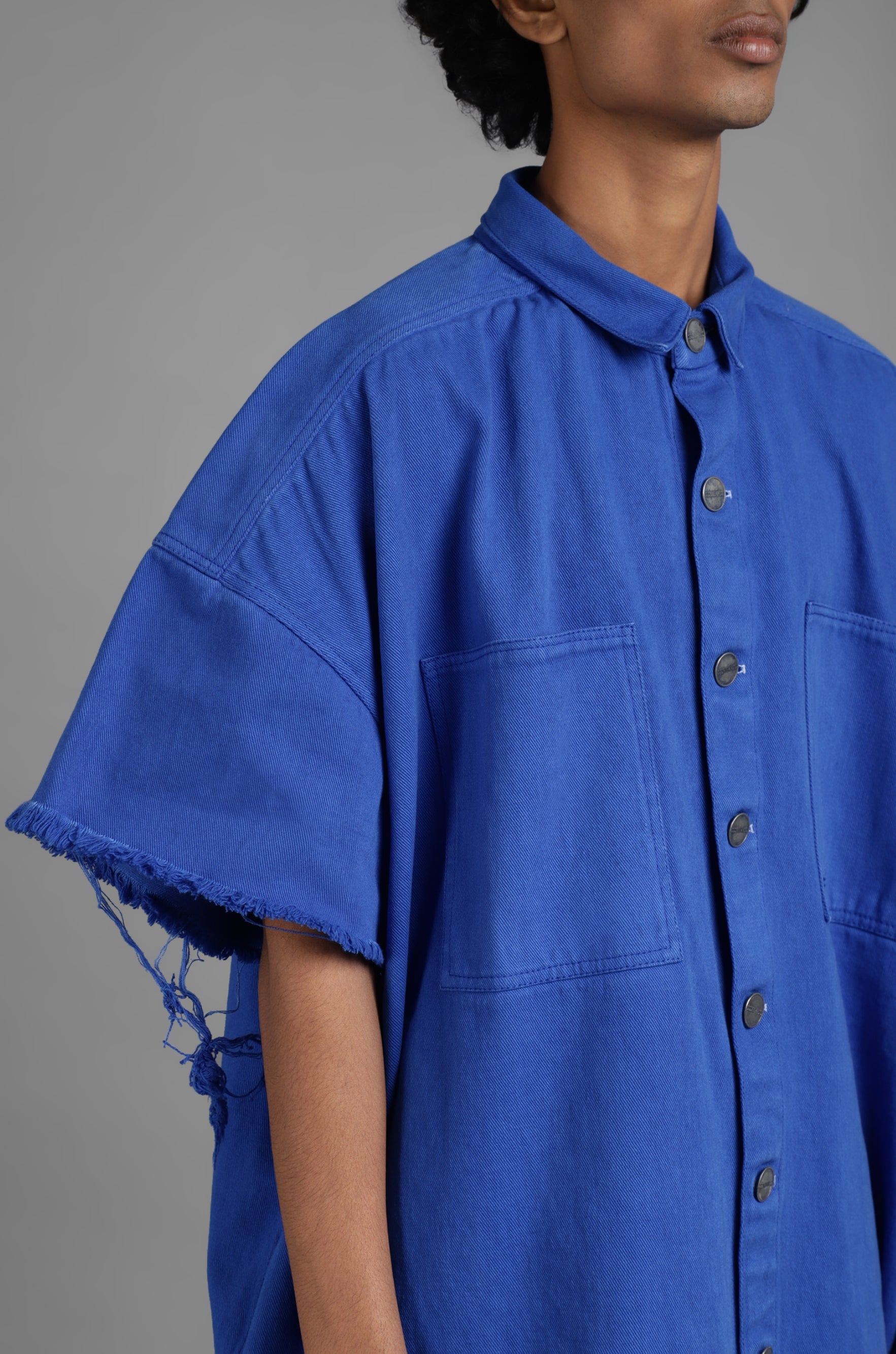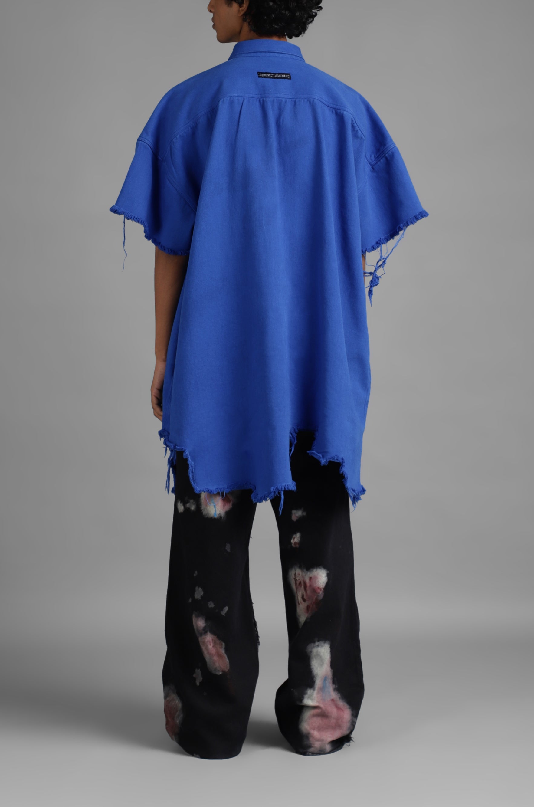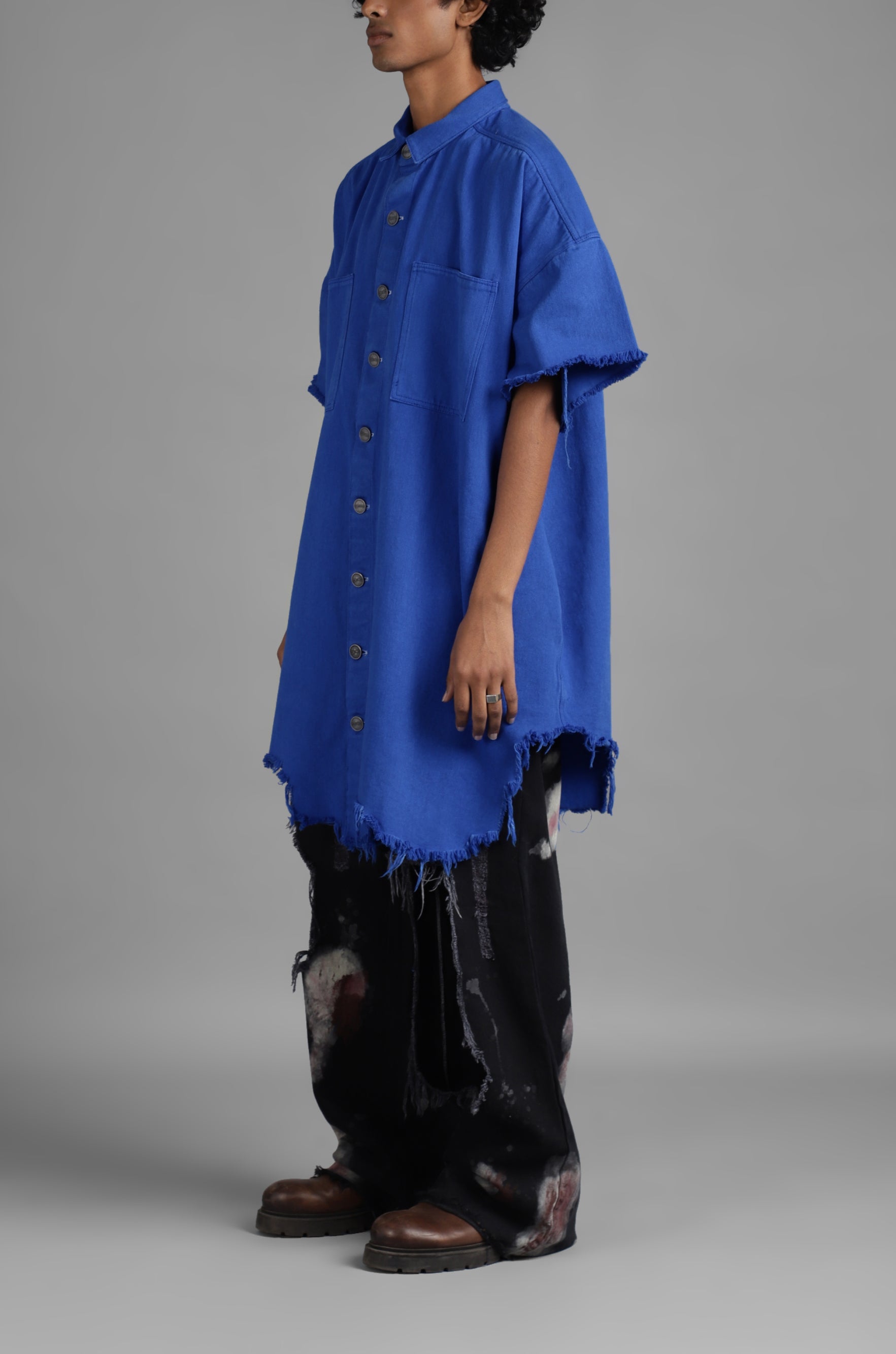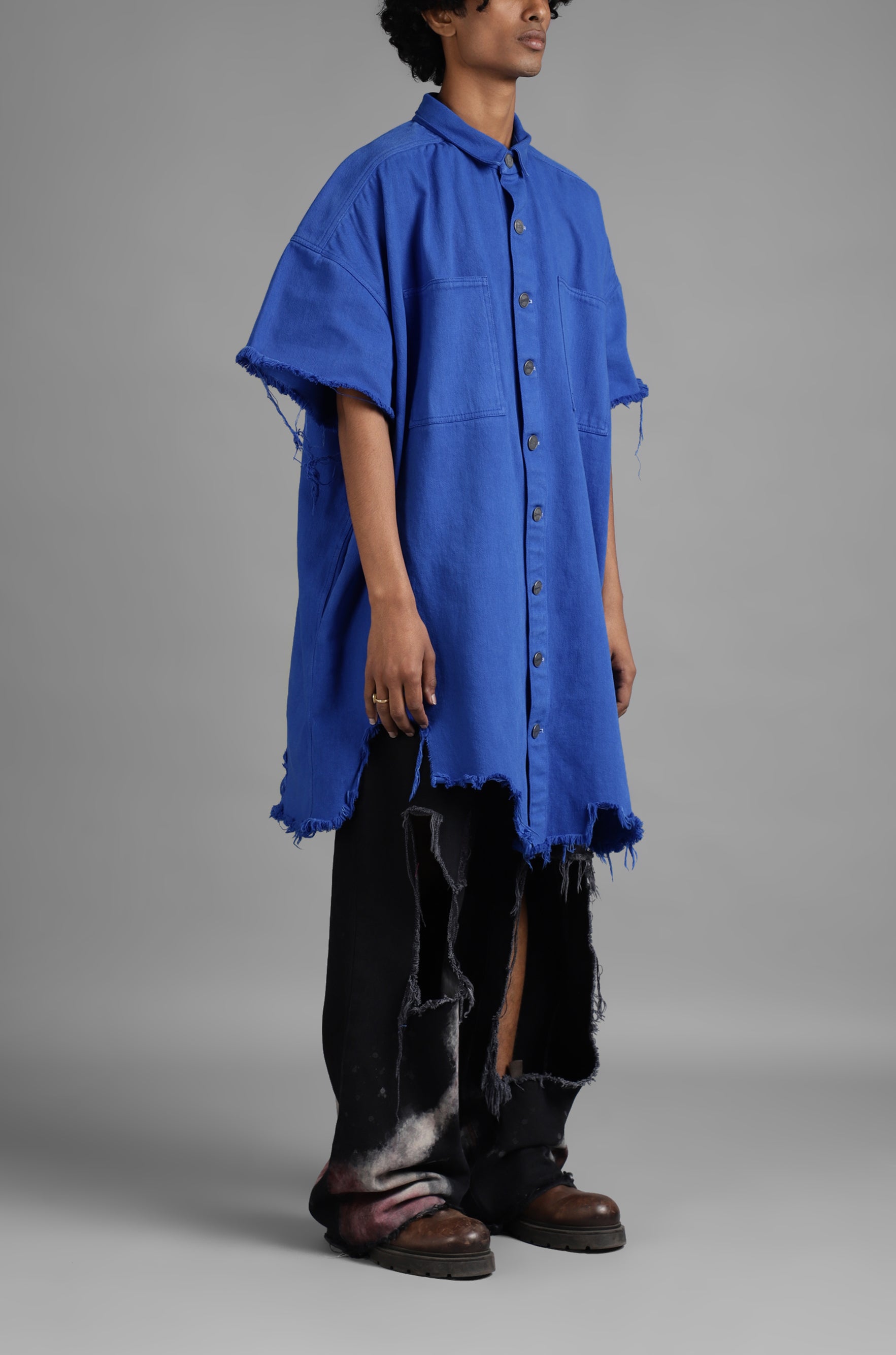 SuperHUEMN Denim Oversized Asymmetric Longline Shirt (Blue)