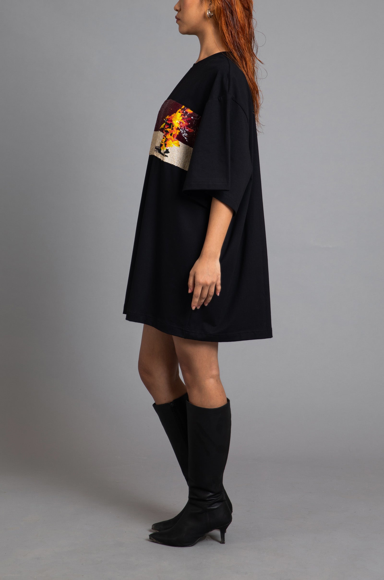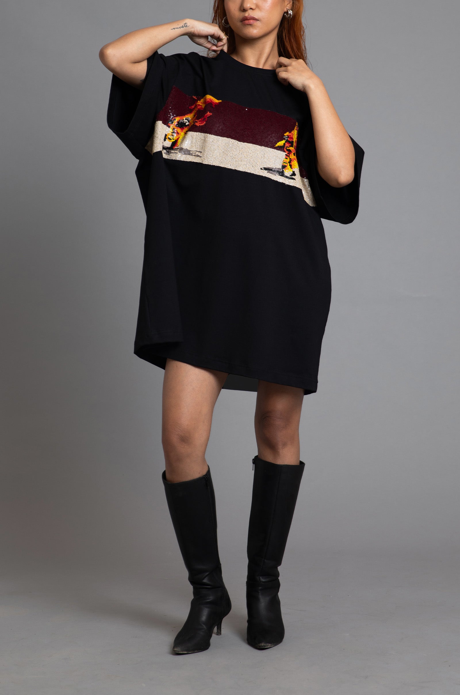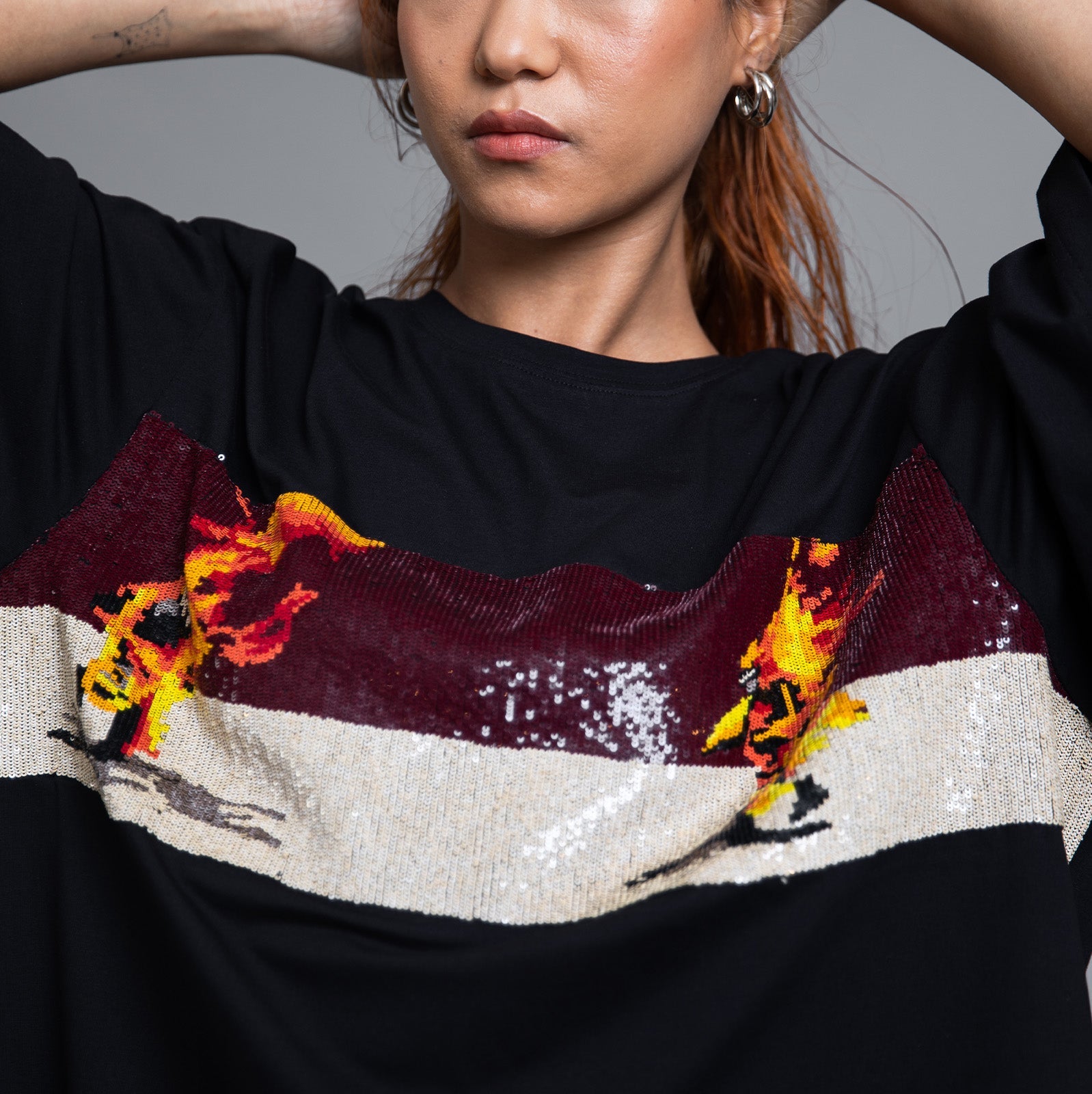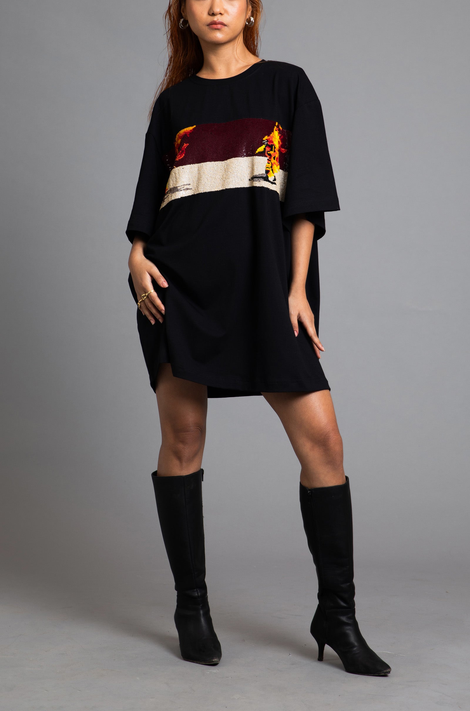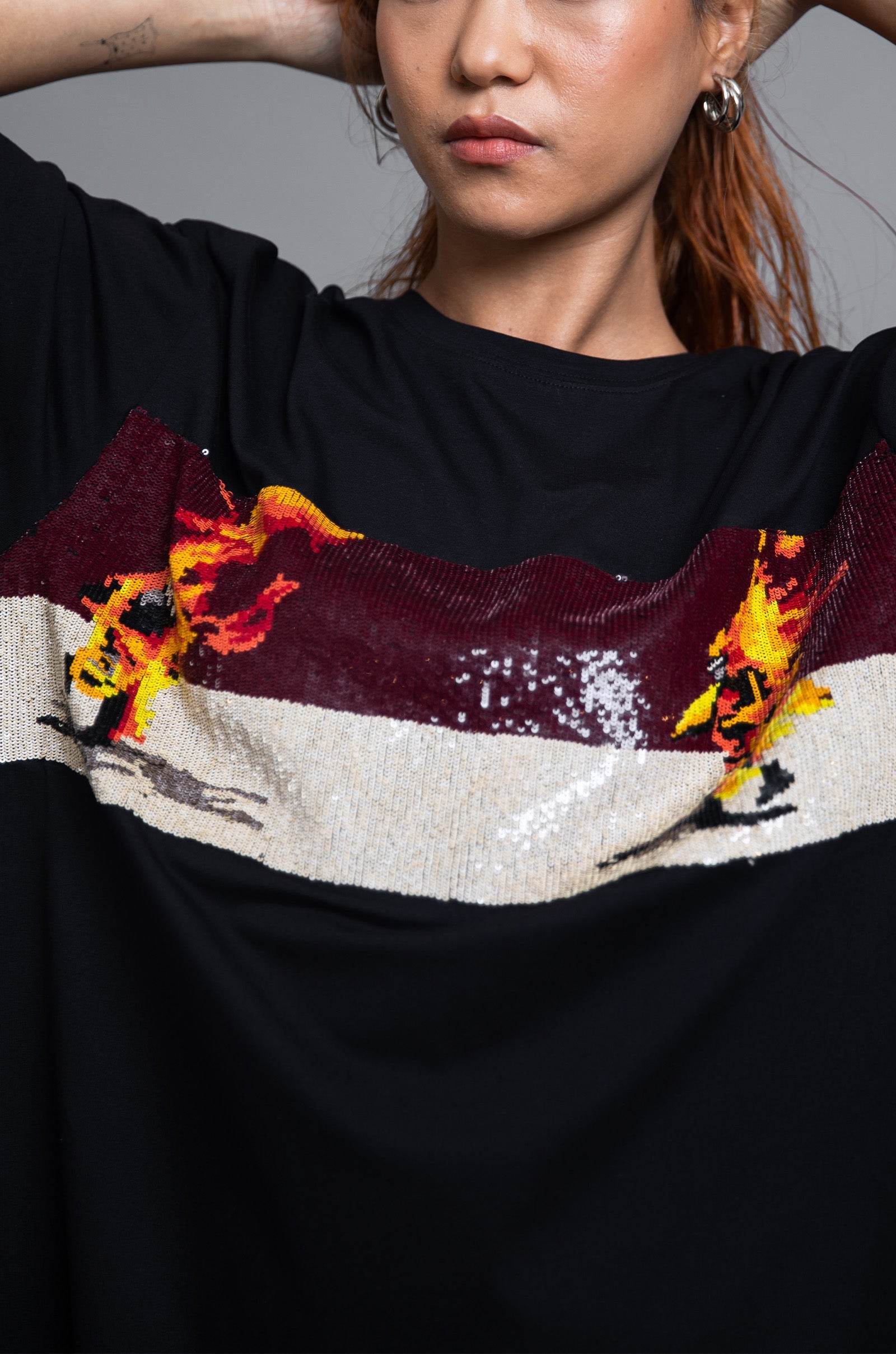 100% cotton T-shirt, Unisex- Oversized fit detailed with handcrafted, embroidered 'Burning Man' on the chest.