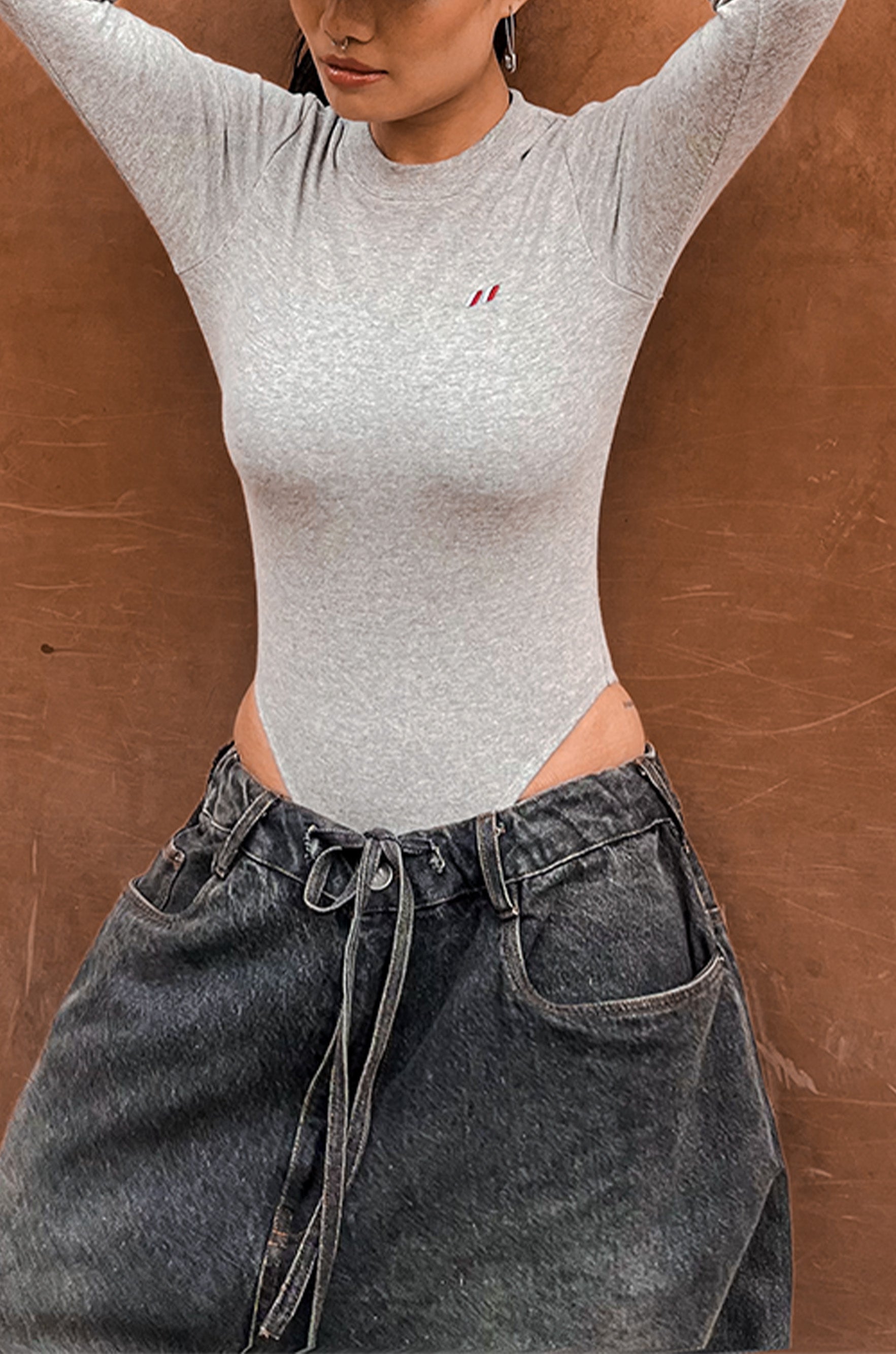 SuperHUEMN Striped Bodysuit (Melange Grey)