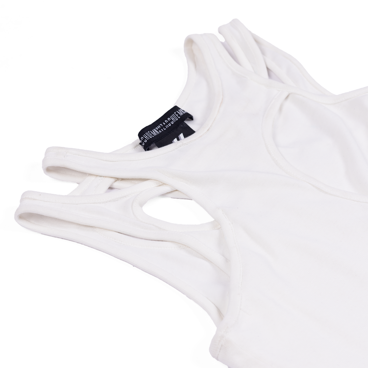 Tank top made from 100% cotton, featuring a layered design with cut-out details, sleeveless style, and a straight hem.