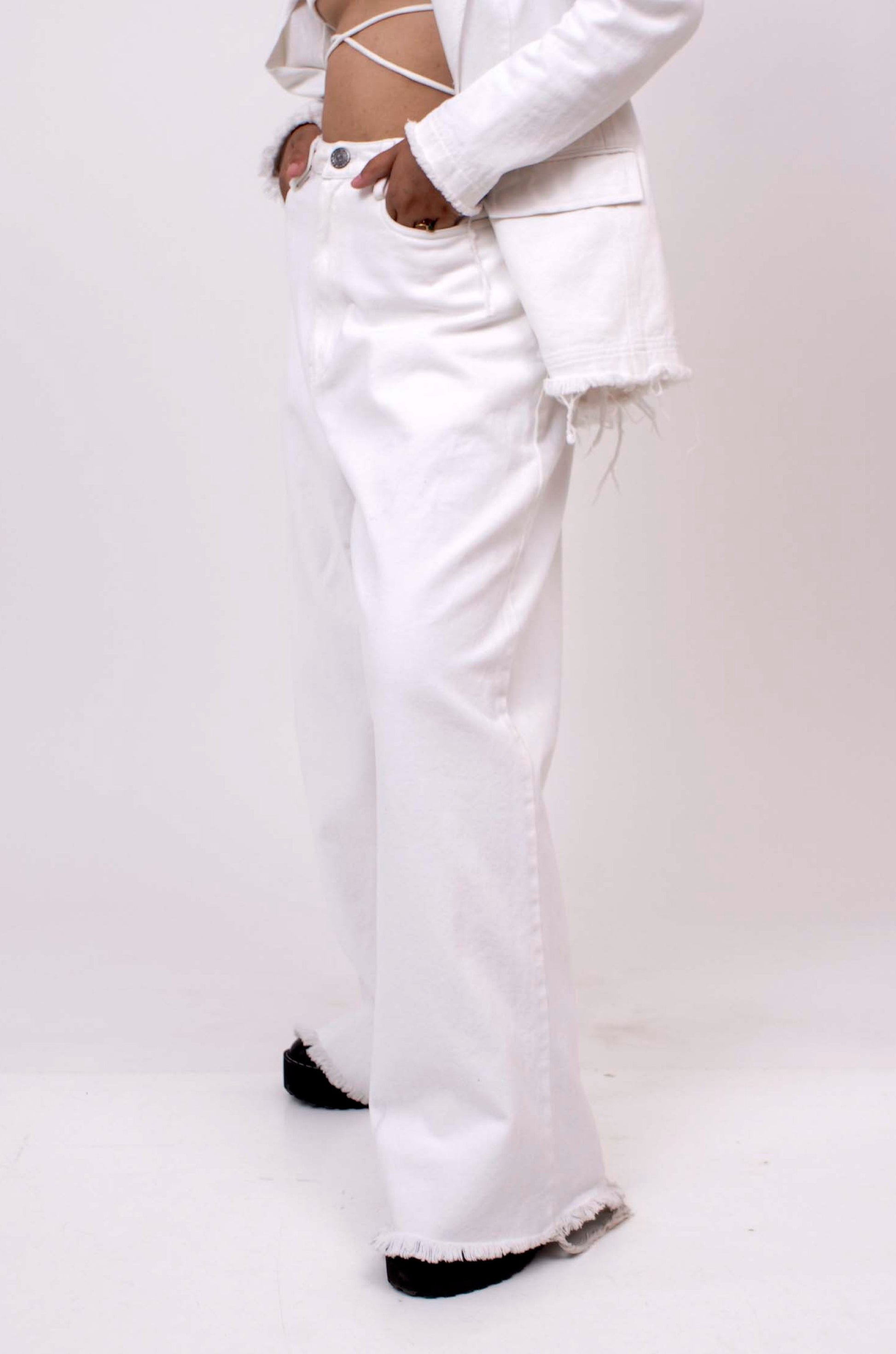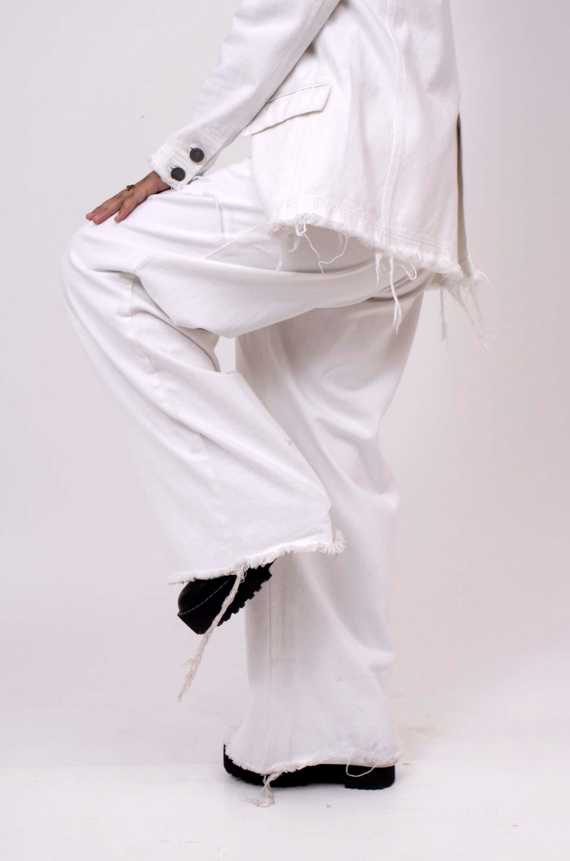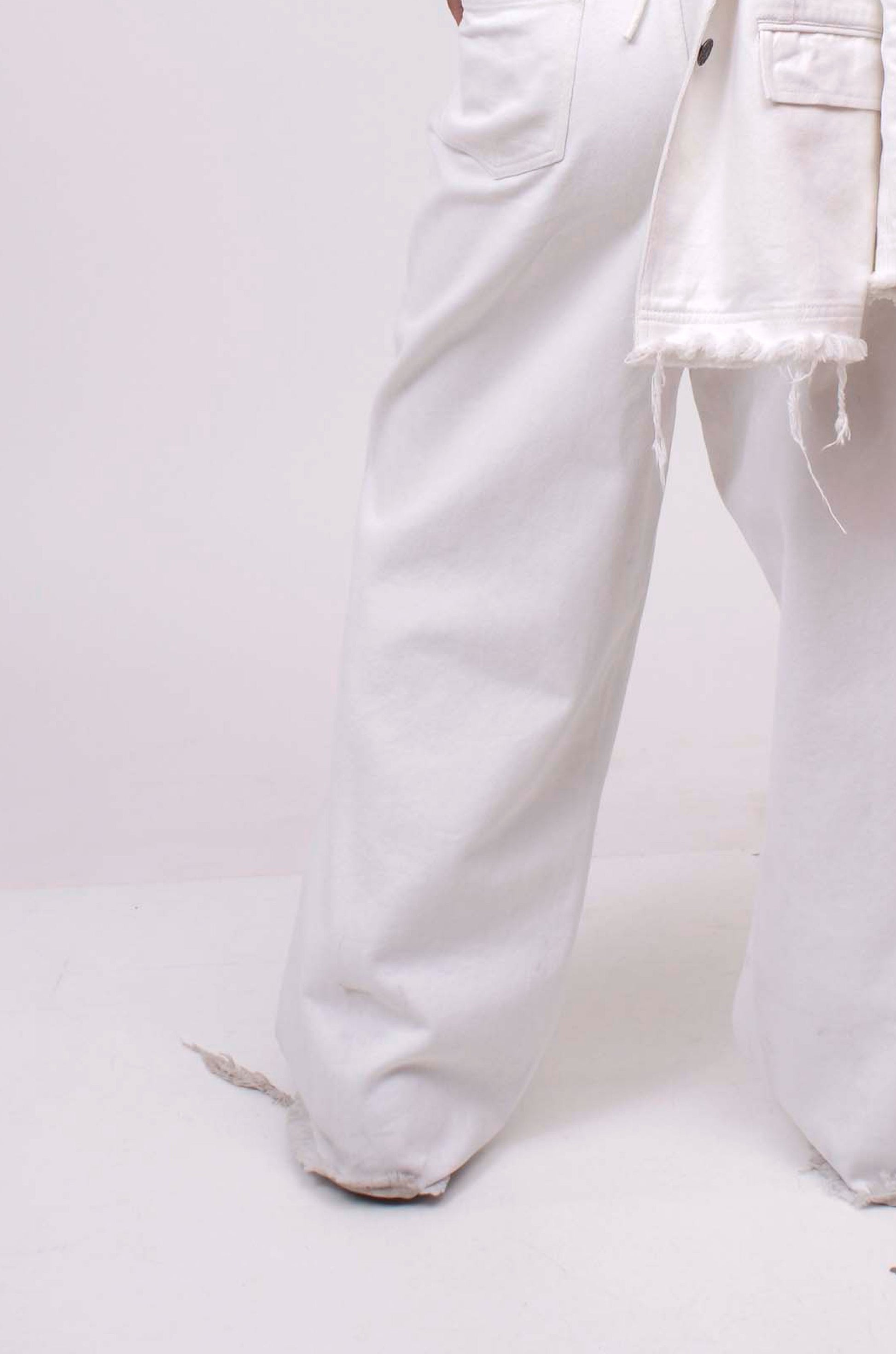 Soft washed, unisex jeans in HUEMN's wide-legged silhouette with dropped crotch for unrestricted movement.